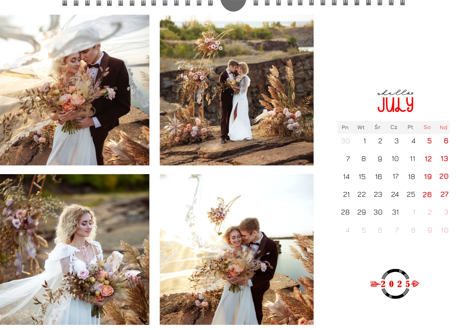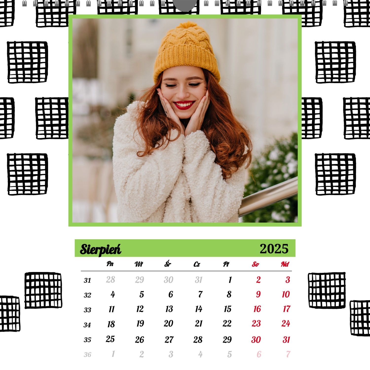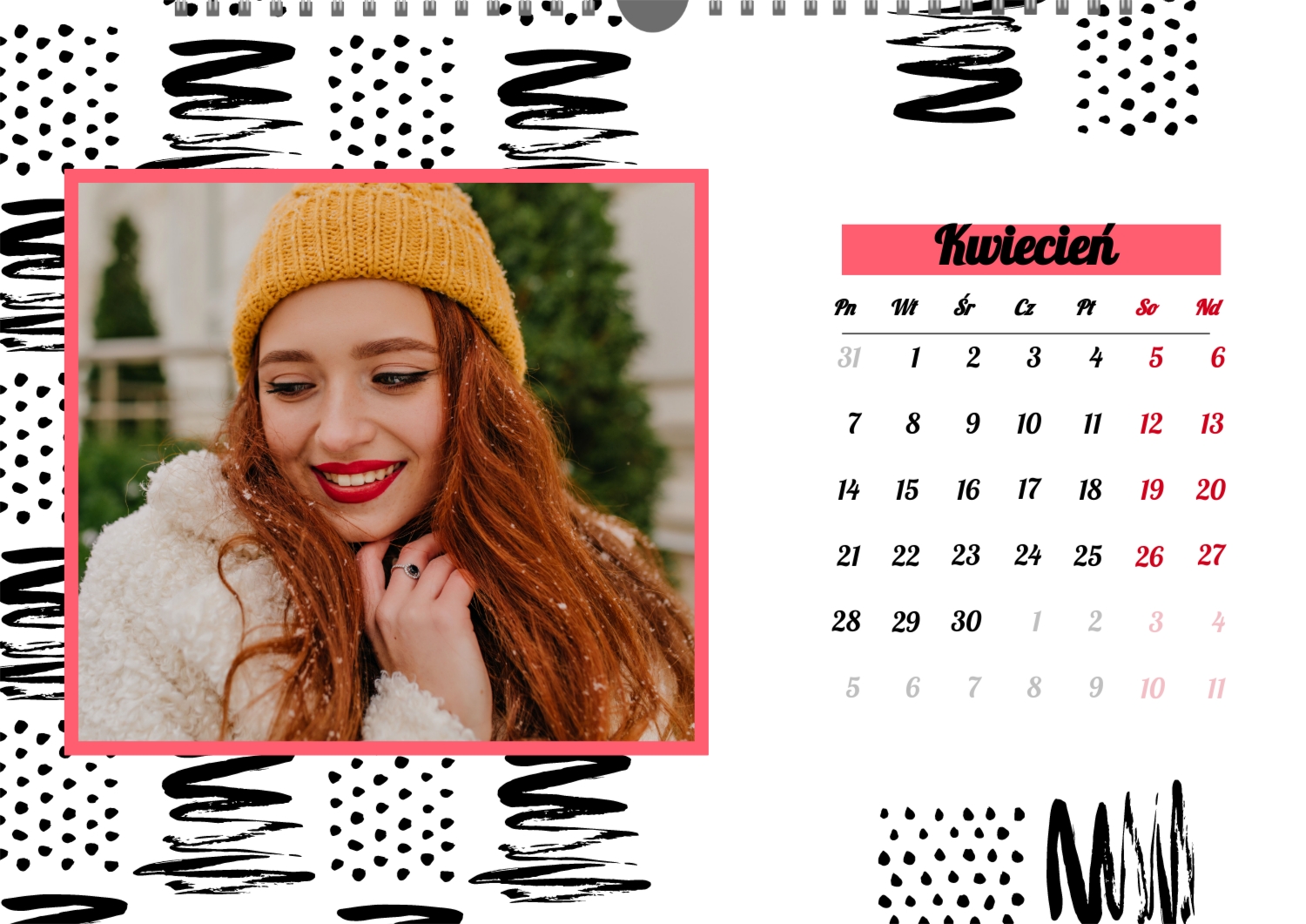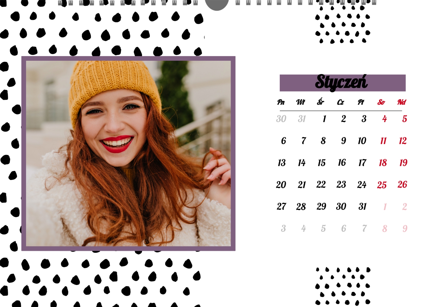 Zamawiając tę opcję, możesz upewnić się, że gotowy kalendarz 2024 jest w pełni zgodny z Twoim pomysłem jeszcze przed wydrukowaniem. A jeśli coś Ci się nie spodoba, wprowadź zmiany w layoute. Otrzymasz wysokiej jakości zdjęcia wydruków i będziesz mógł podjąć ostateczną decyzję o druku.