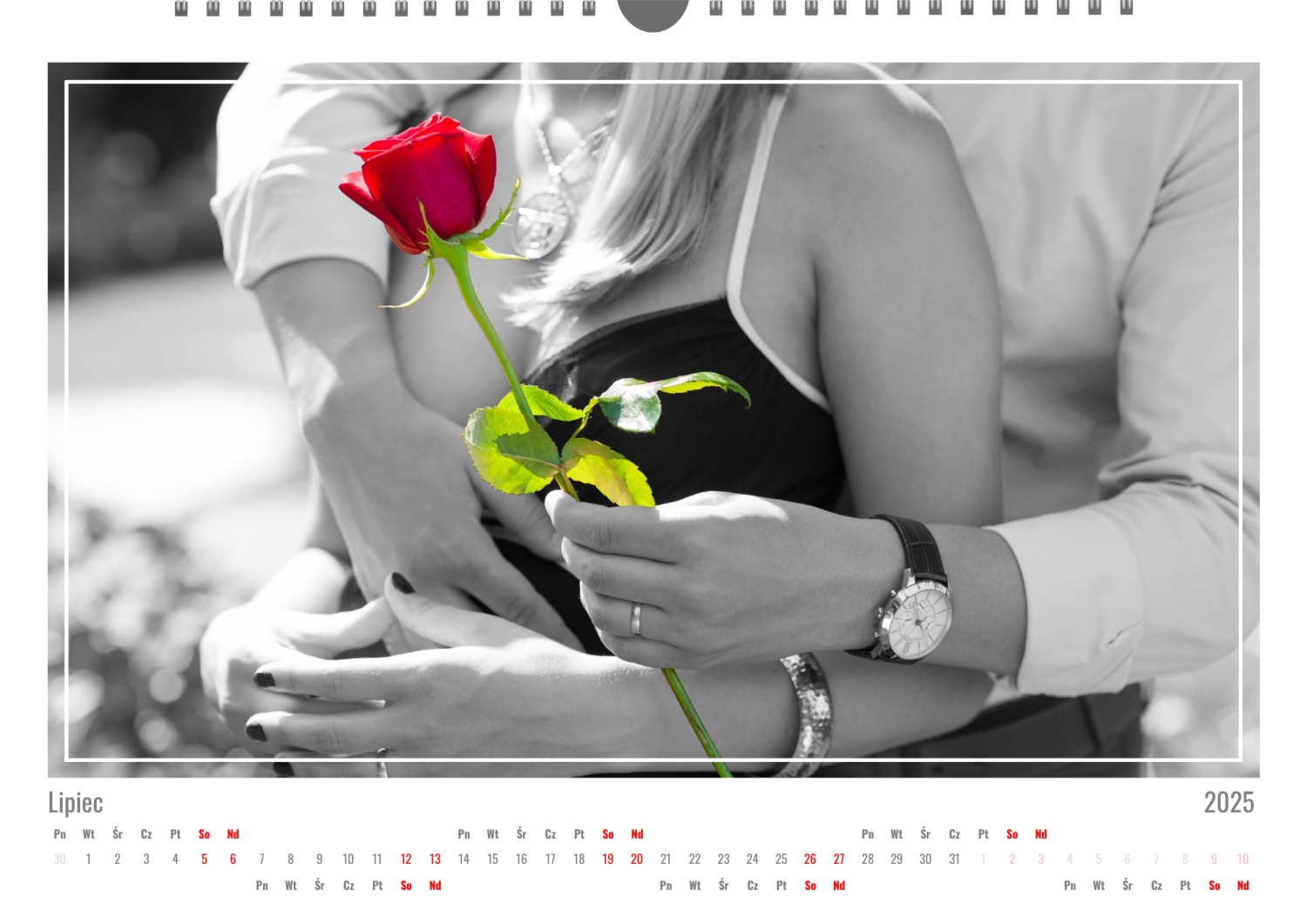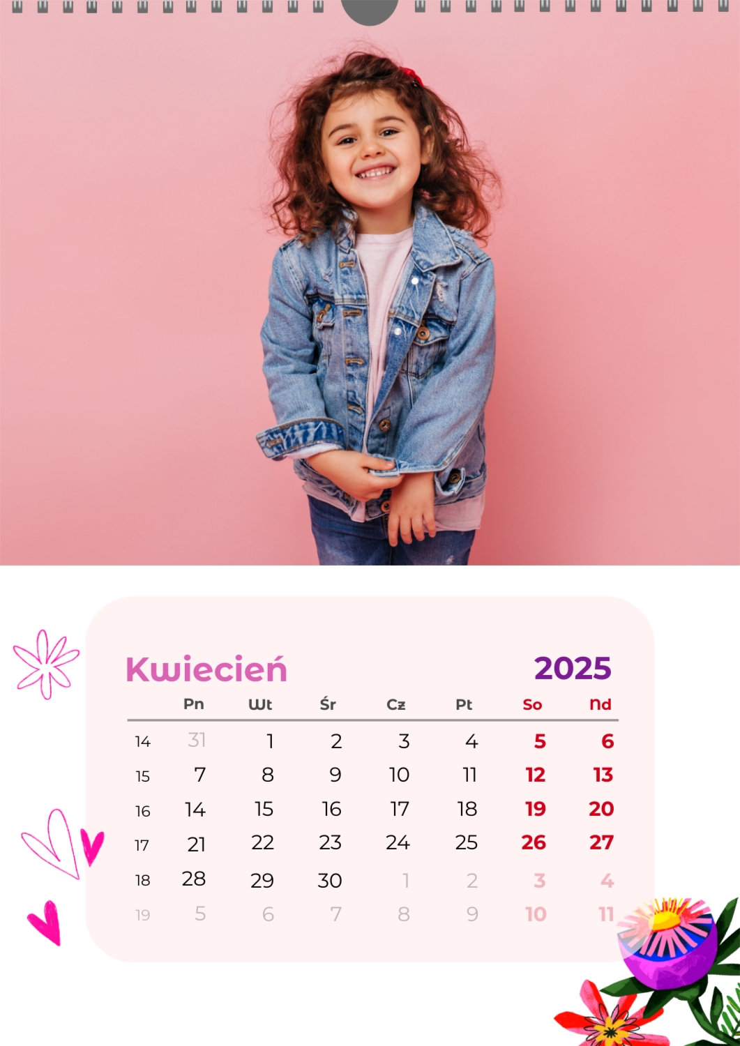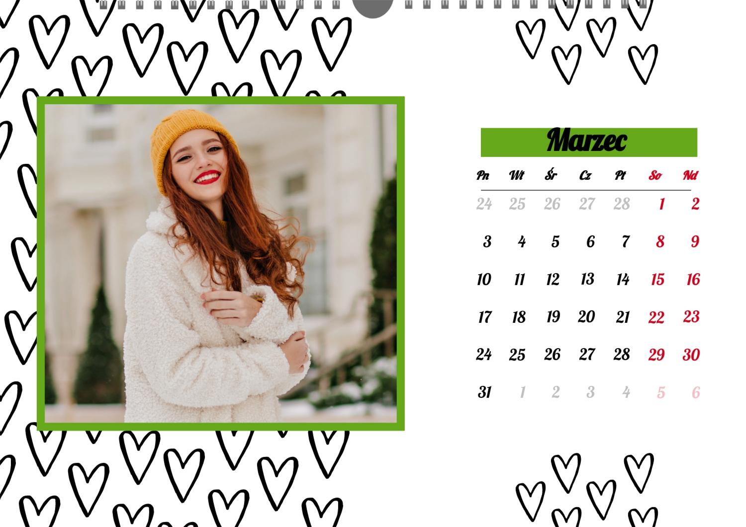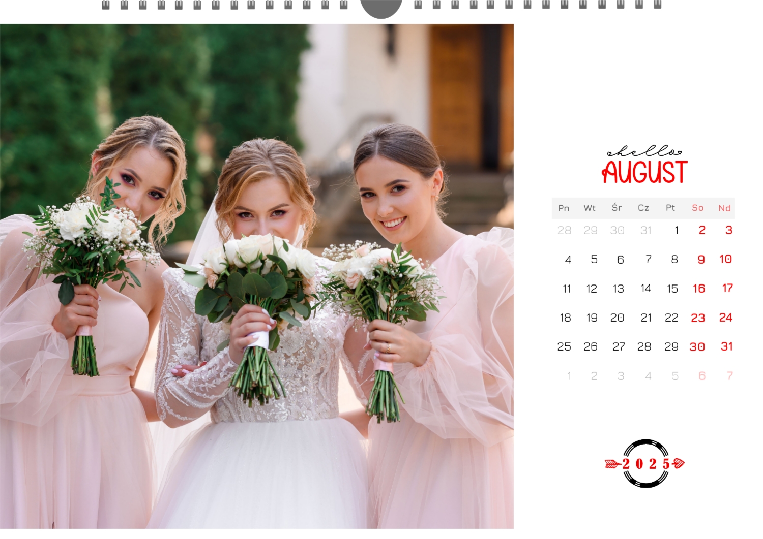 Zamawiając tę opcję, możesz upewnić się, że gotowy kalendarz 2024 jest w pełni zgodny z Twoim pomysłem jeszcze przed wydrukowaniem. A jeśli coś Ci się nie spodoba, wprowadź zmiany w layoute. Otrzymasz wysokiej jakości zdjęcia wydruków i będziesz mógł podjąć ostateczną decyzję o druku.