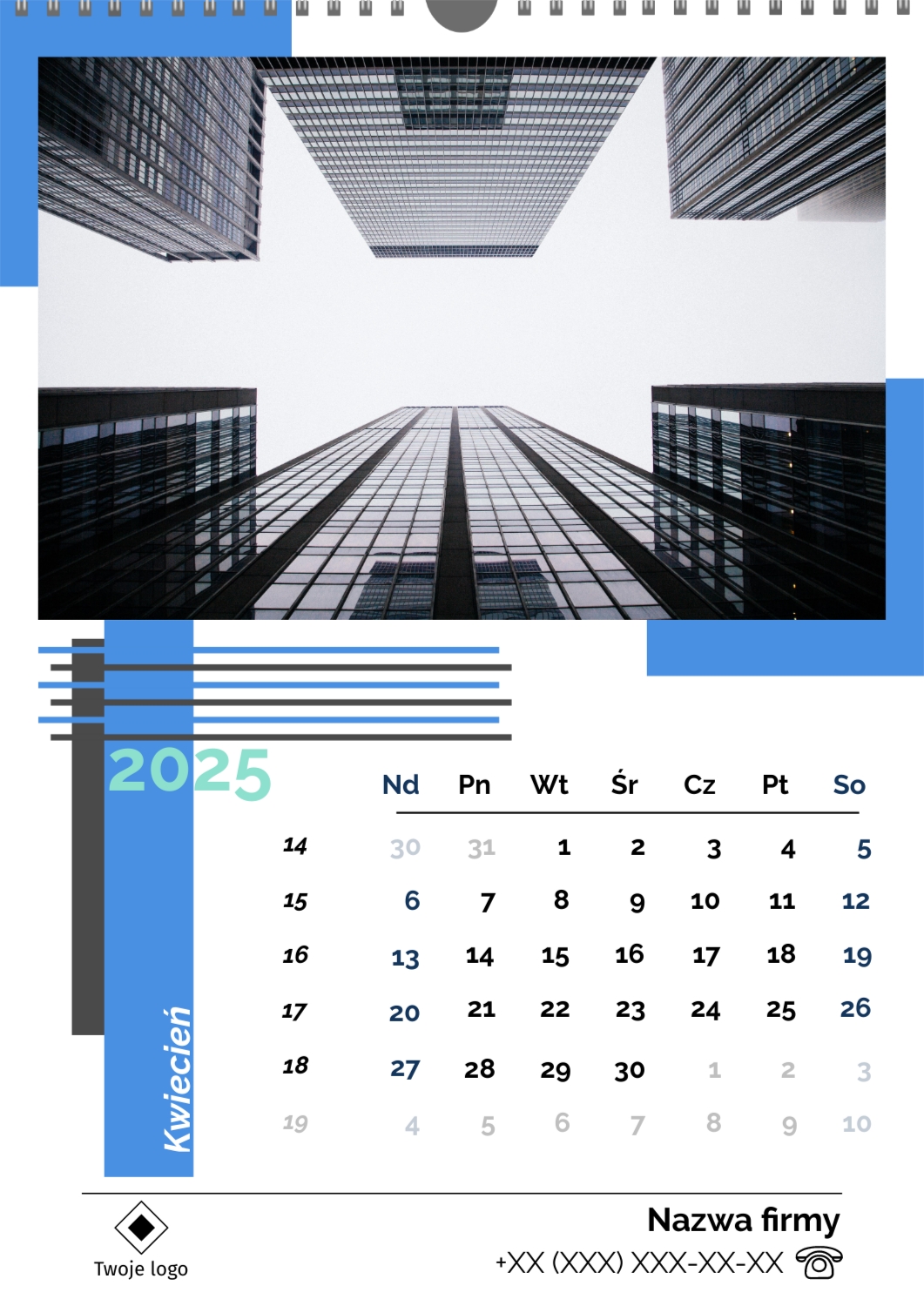 Niezależnie od tego, czy potrzebujesz kalendarza do biura, firmy czy dla siebie, nasze kalendarze ściennych drukowane są z dbałością o detale. Możemy stworzyć kalendarz z logo firmy, grafiką związaną z Twoim przedsiębiorstwem lub dowolnymi elementami, które podkreślą jego indywidualność.