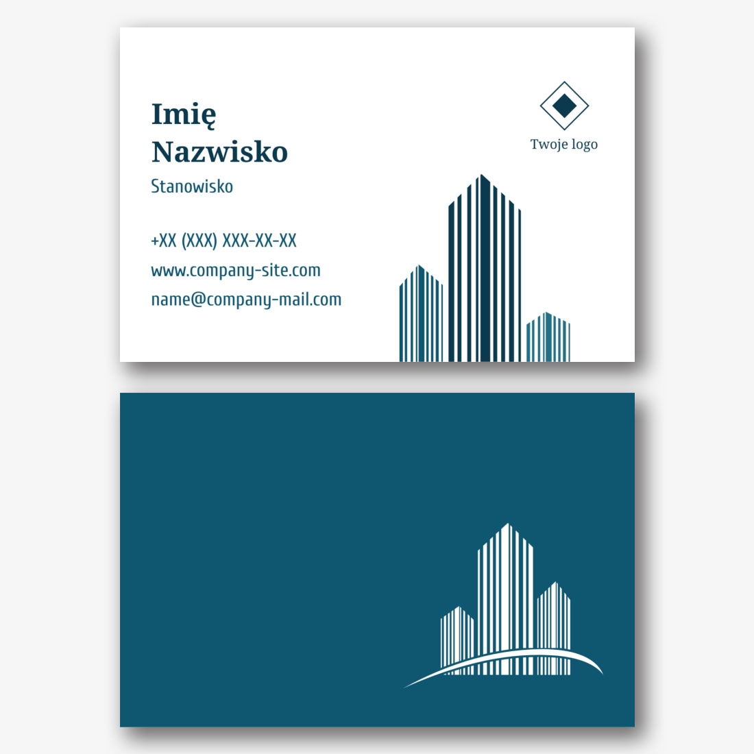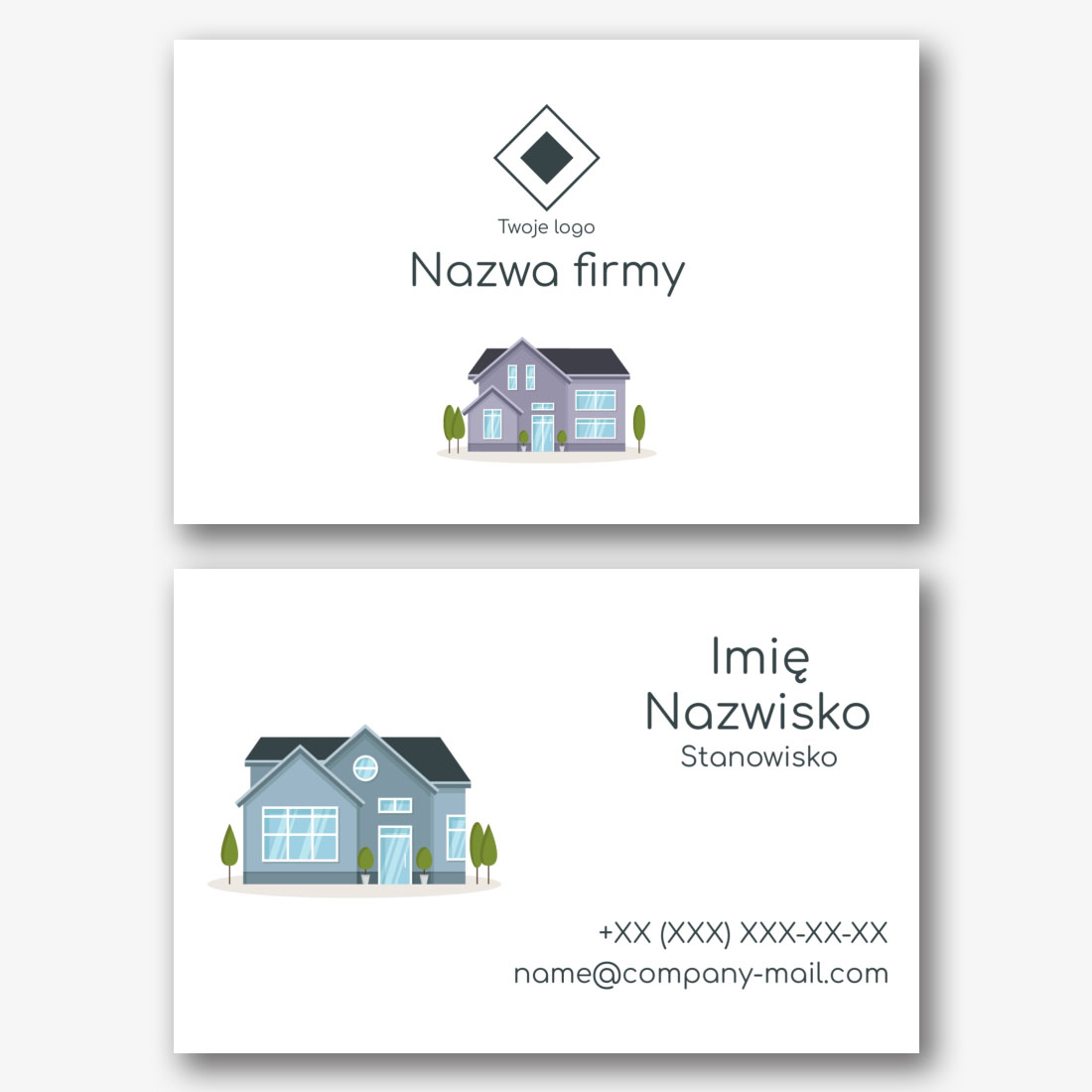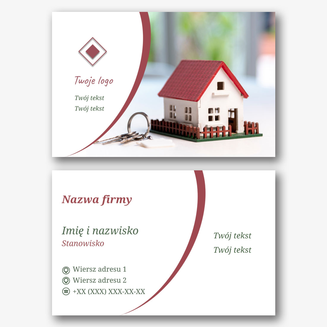 Darmowy szablon wizytówki agencji nieruchomości, pośrednika w obrocie nieruchomościami, firm pośrednictwa w obrocie nieruchomościami. Utwórz układ DIY w kreatorze wizytówek.