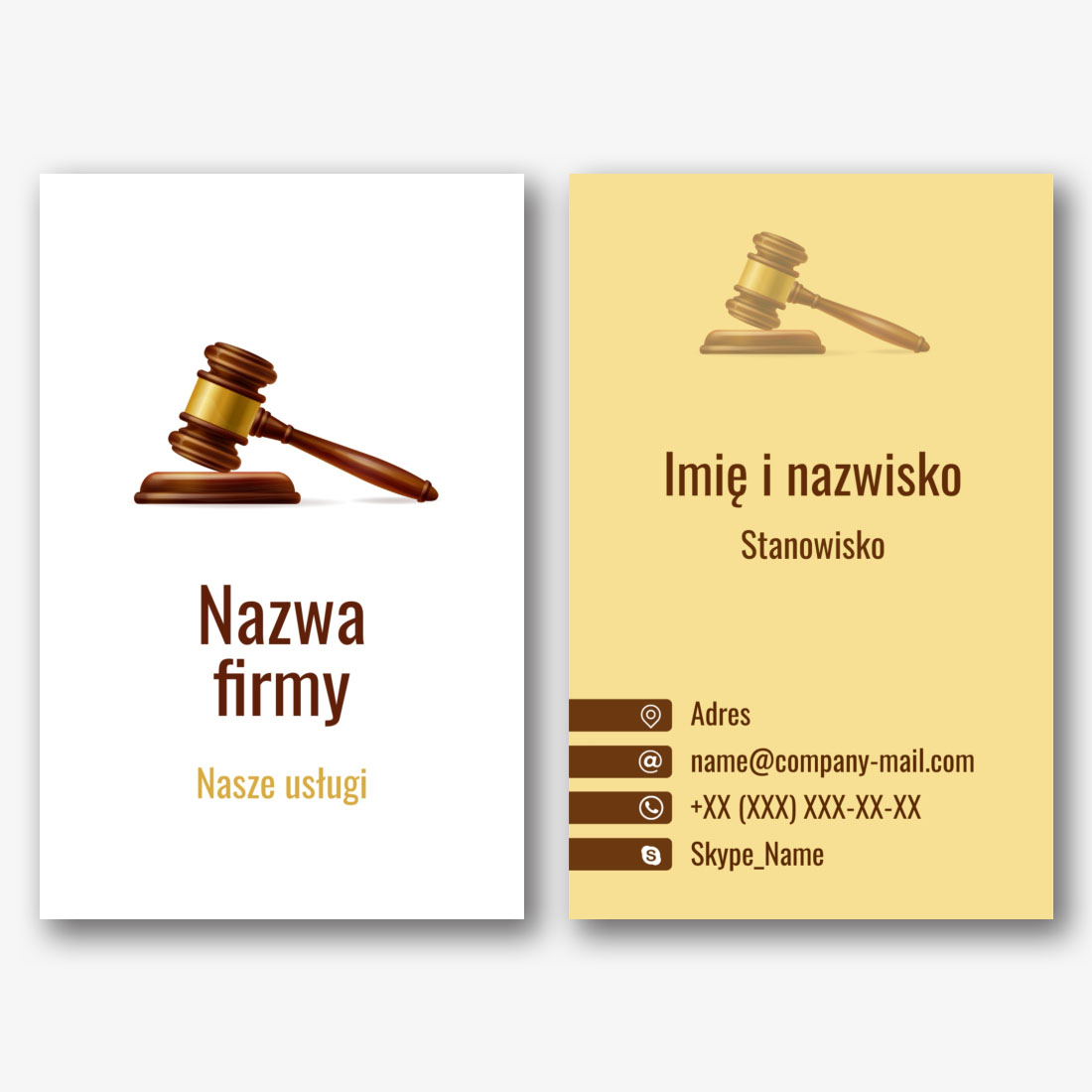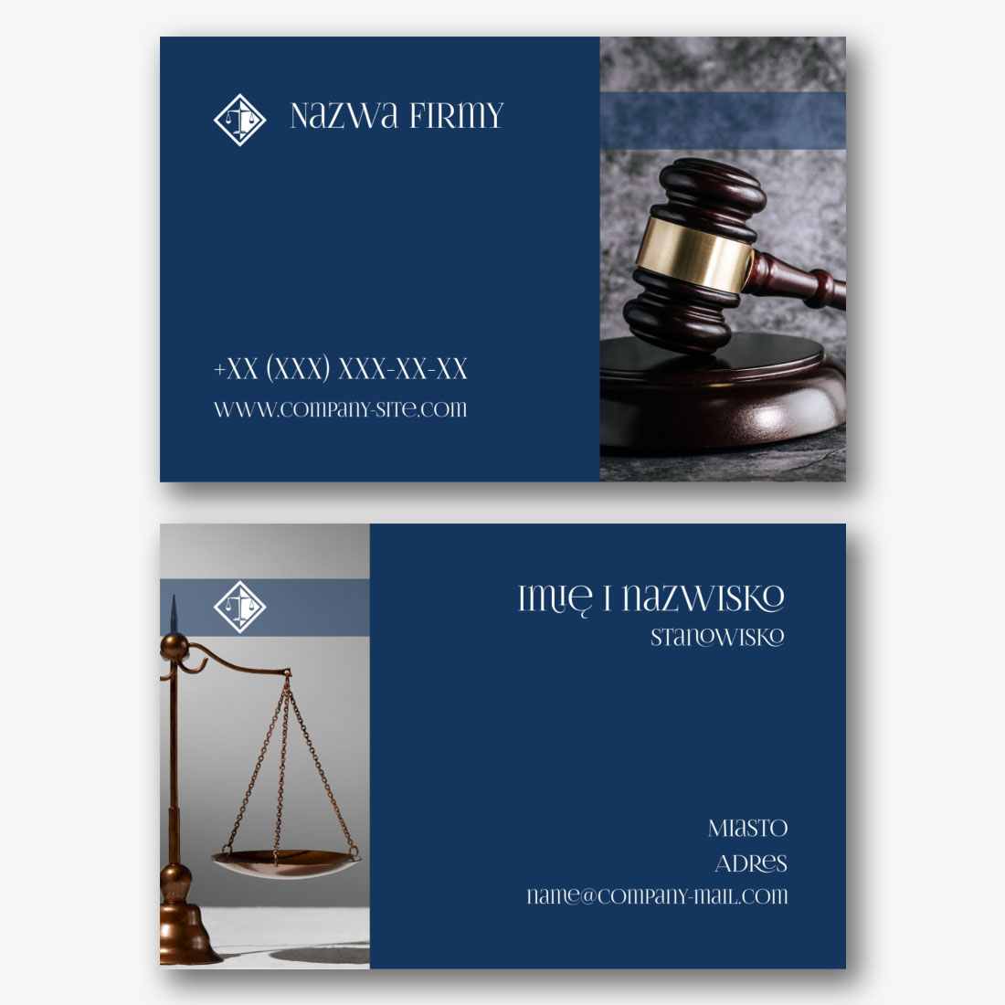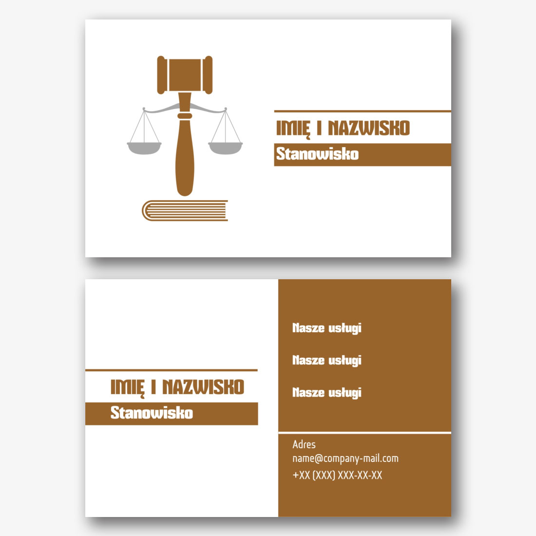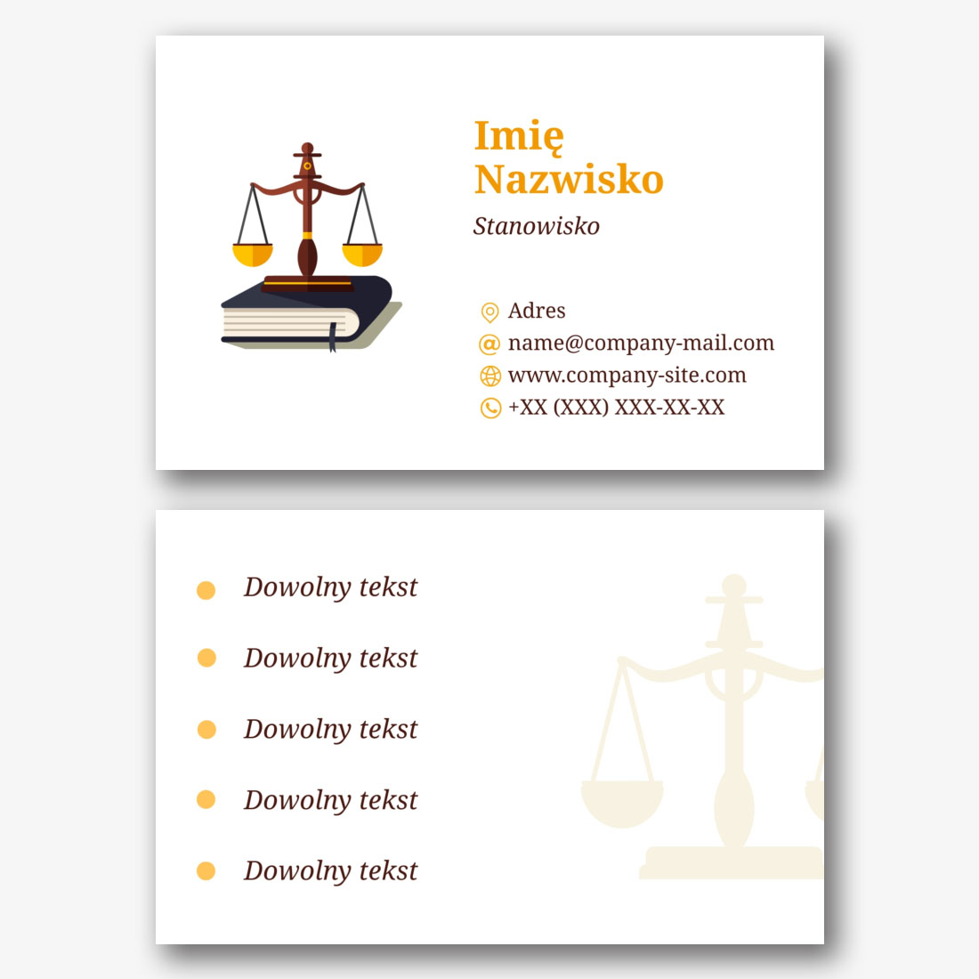 Darmowy szablon wizytówki kancelarii prawnej, adwokata, prawnika, prokuratora, sędziego. Utwórz układ DIY w kreatorze wizytówek.