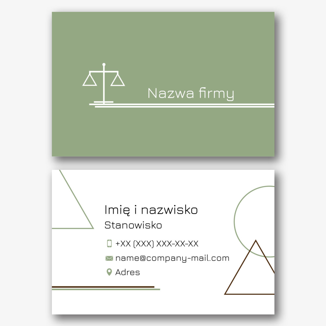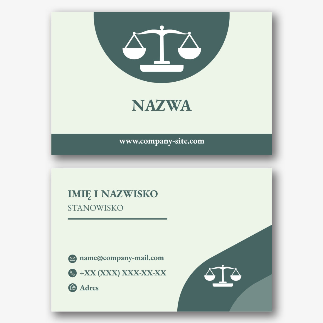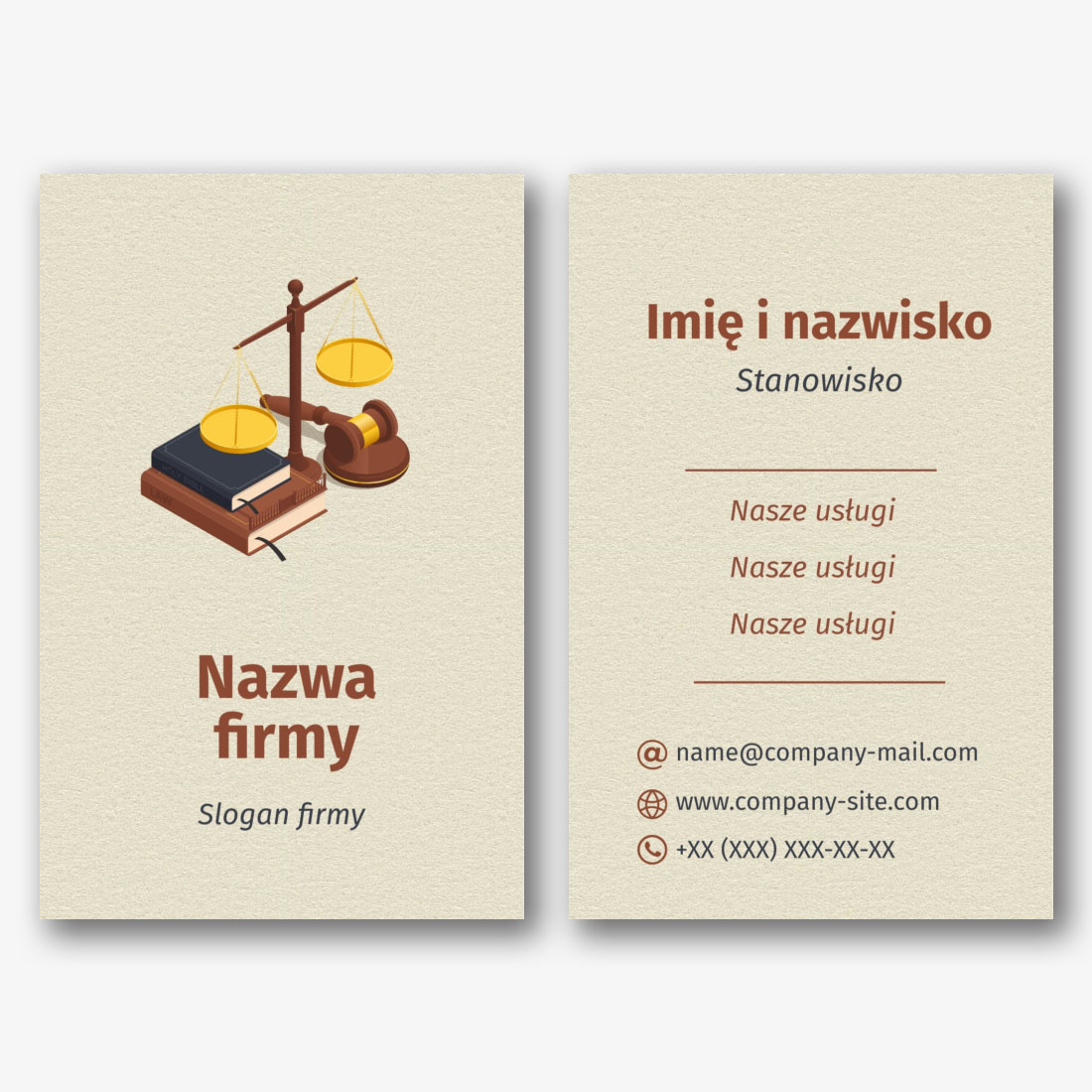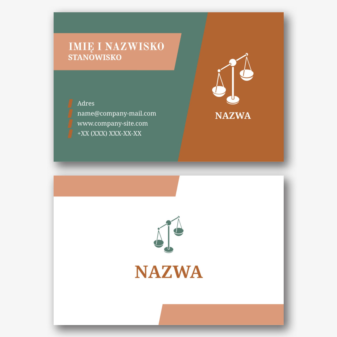 Darmowy szablon wizytówki kancelarii prawnej, adwokata, prawnika, prokuratora, sędziego. Utwórz układ DIY w kreatorze wizytówek.