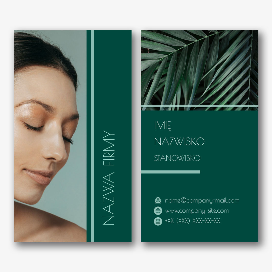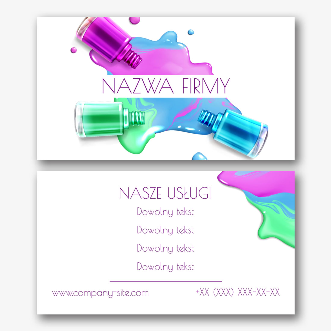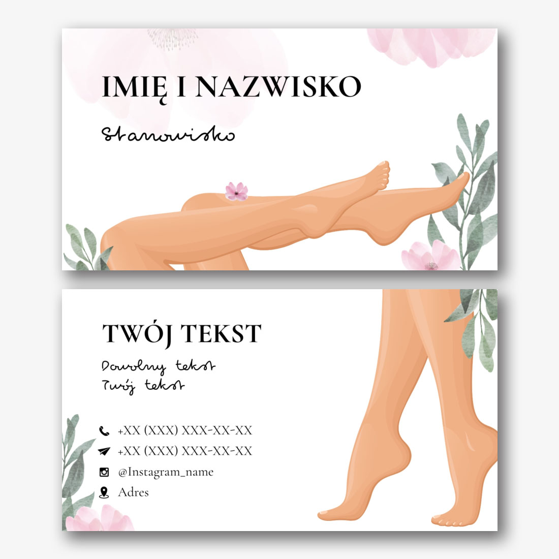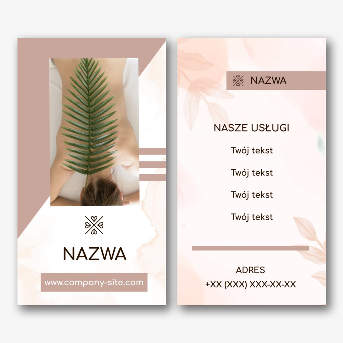 Darmowy szablon wizytówki salonu masażu, masażysty, salonu kosmetycznego, kursów masażu. Utwórz układ DIY w kreatorze wizytówek.