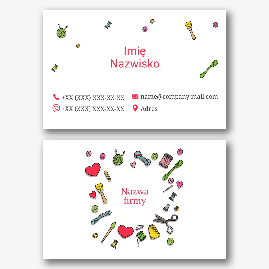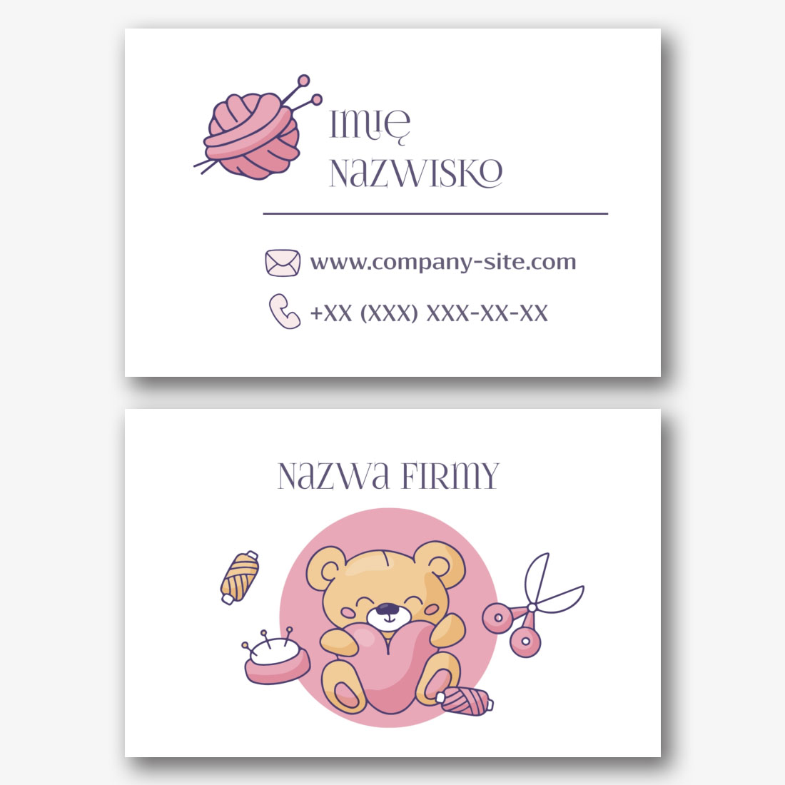 Darmowy szablon wizytówki sklepu dziewiarskiego, warsztaty dziewiarskie, kursy dziewiarskie, hand made. Utwórz układ DIY w kreatorze wizytówek.