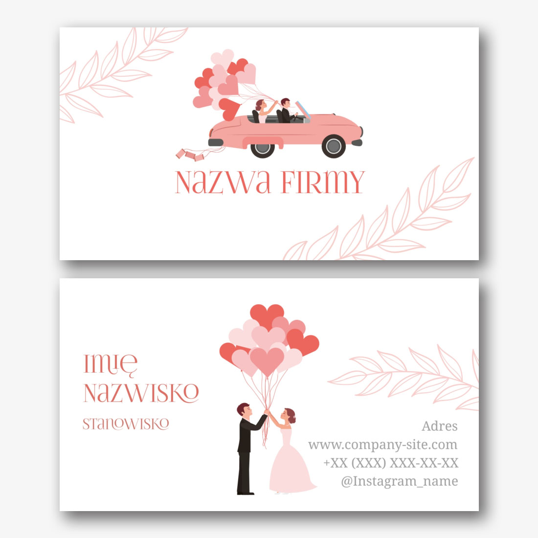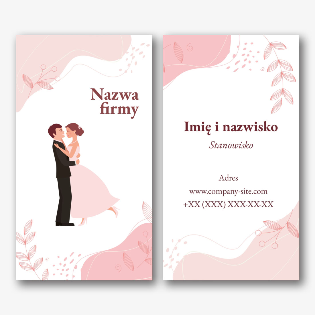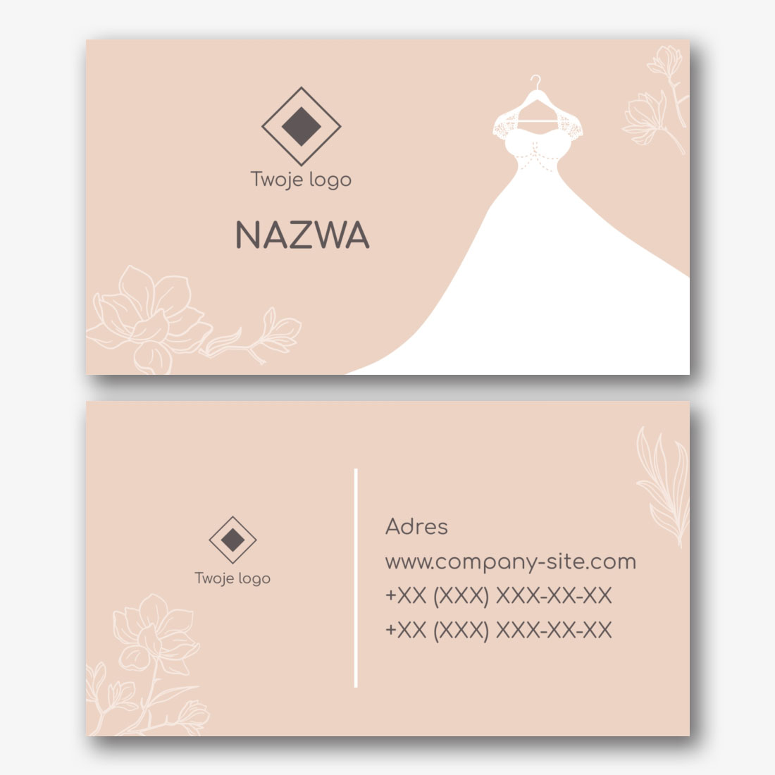 Darmowy szablon wizytówek do salonu ślubnego, salonu sukien ślubnych, wypożyczalni sukien ślubnych. Utwórz układ DIY w kreatorze wizytówek.