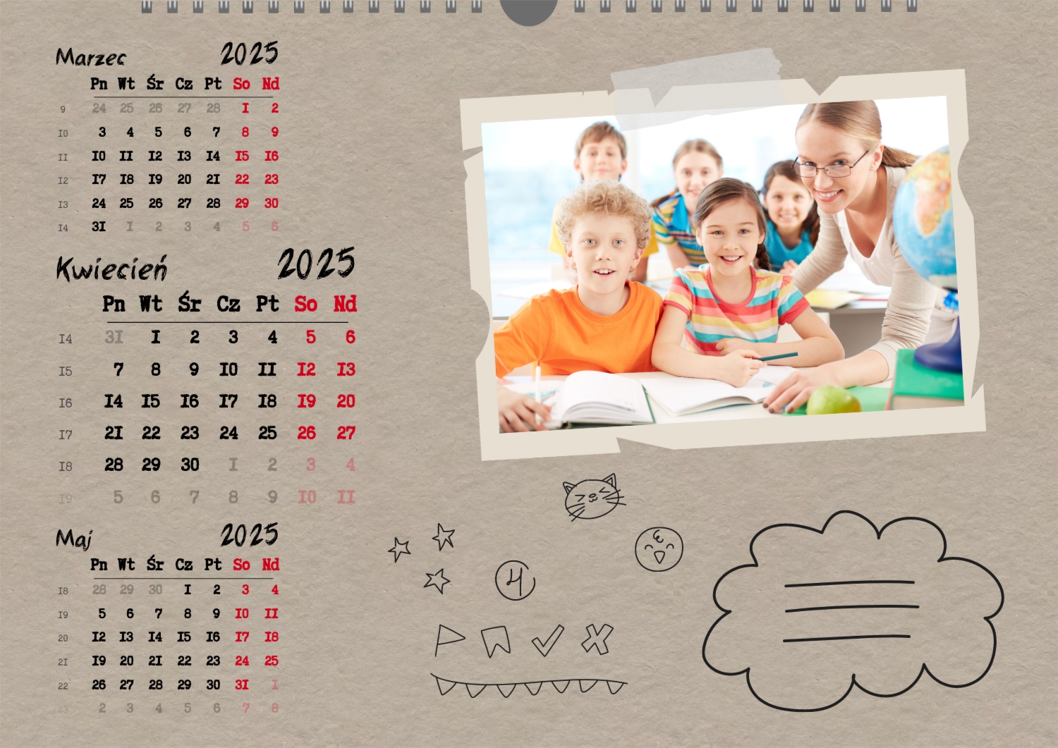 Szablon kalendarza ściennego dla dzieci | ID187374