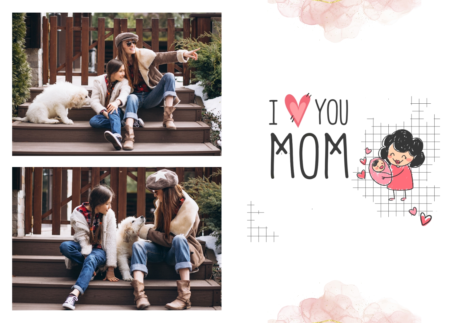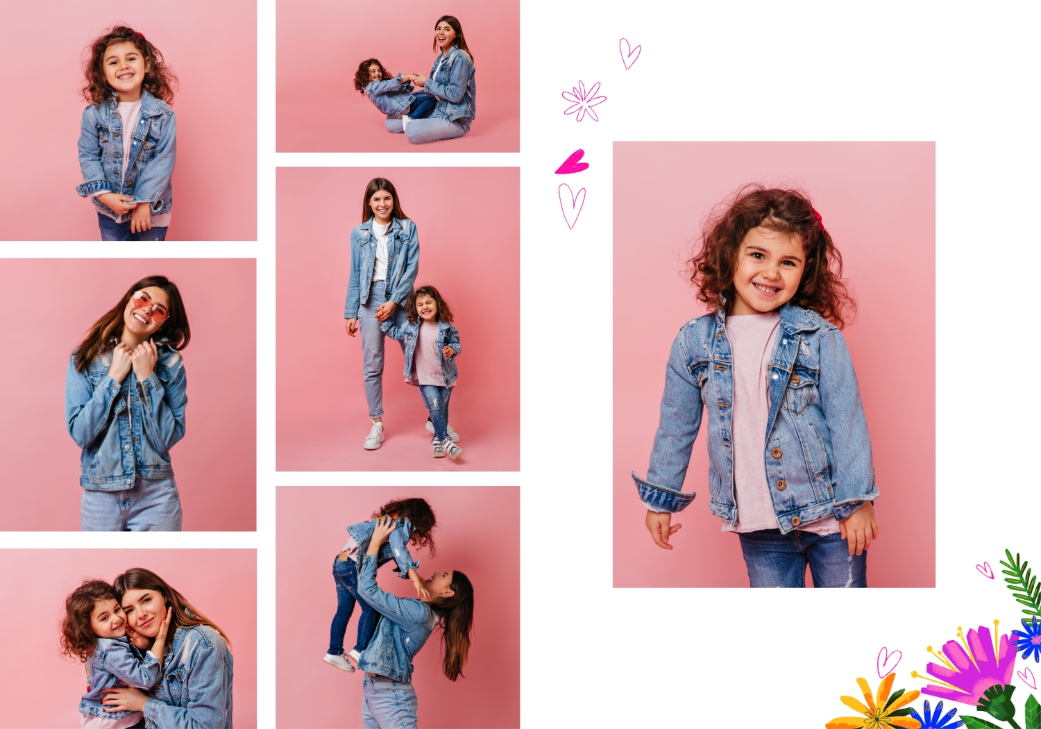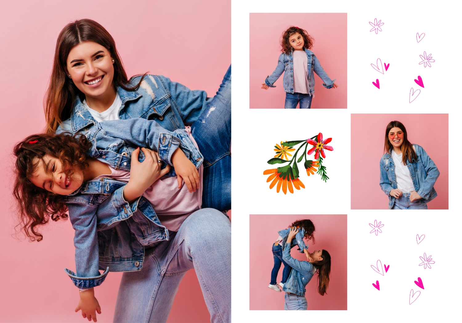 Darmowy szablon rodzinnej fotoksiążki w stylu retro. Utwórz makietę DIY w internetowym kreatorze fotoksiążek.