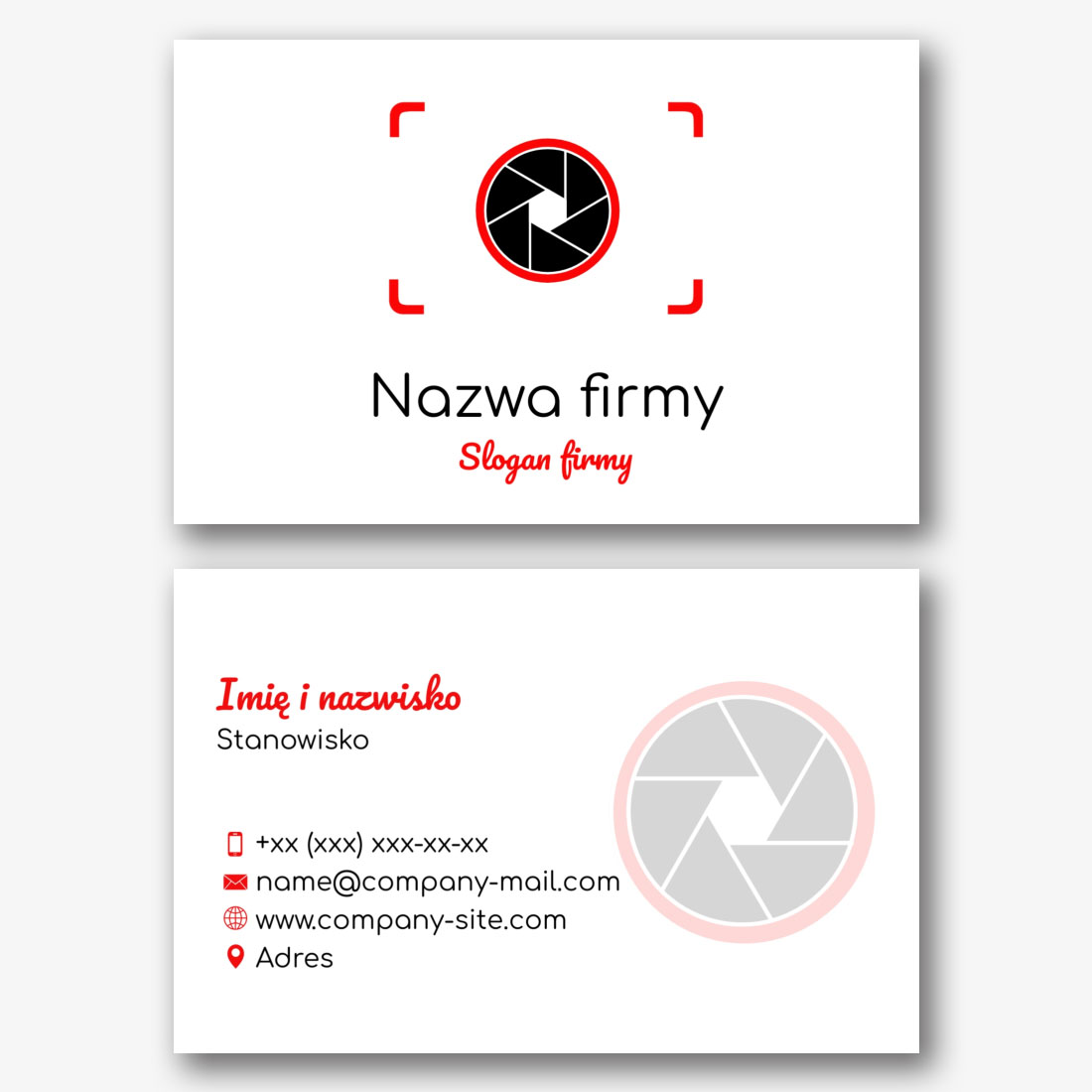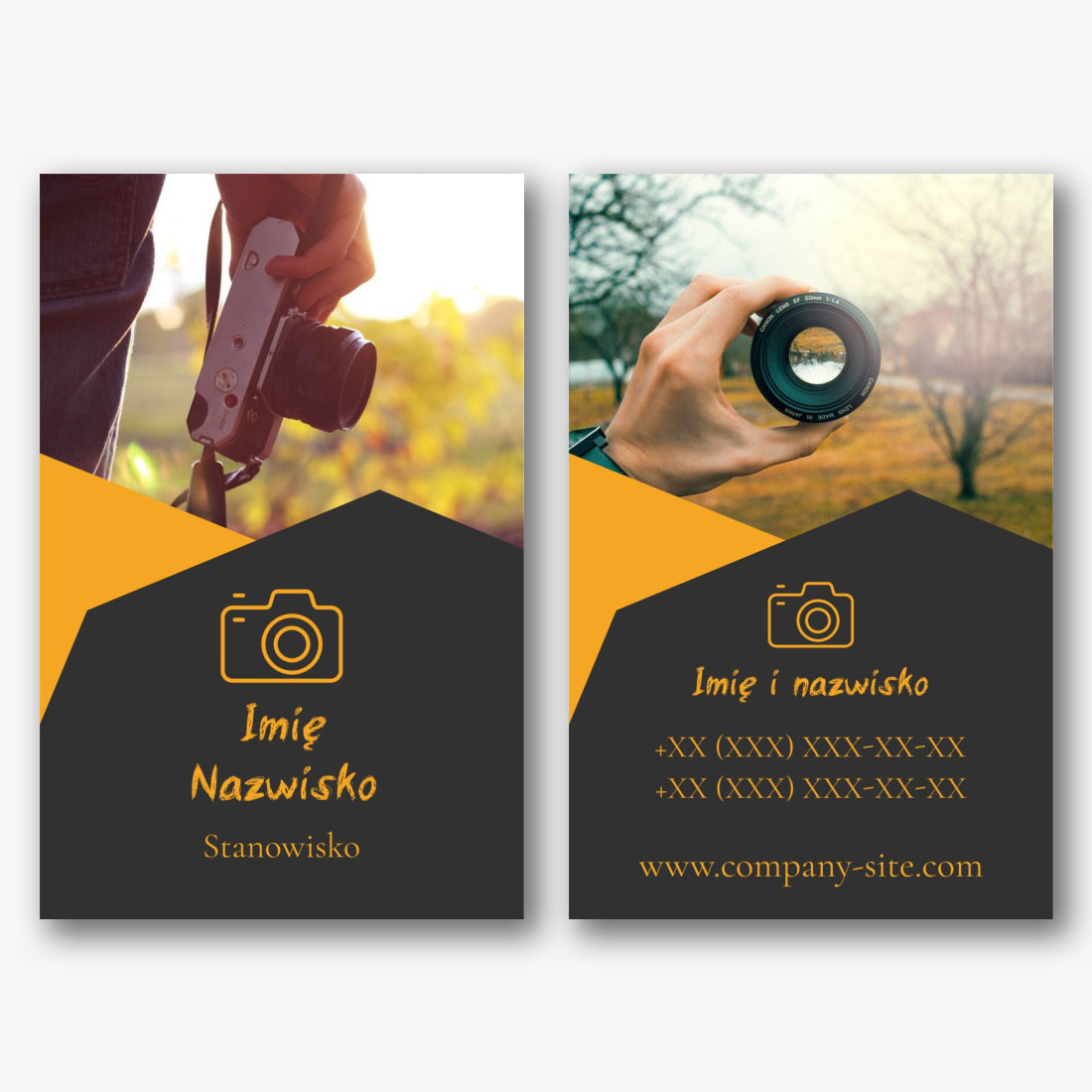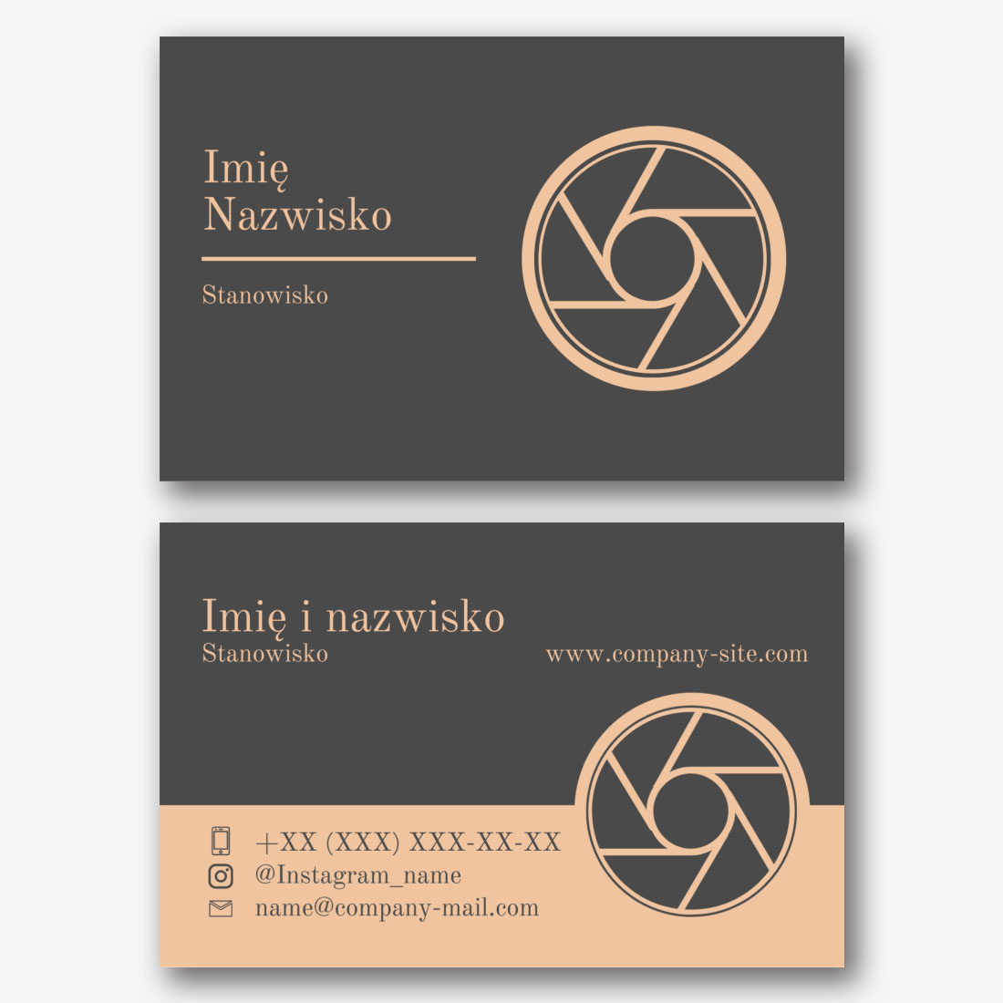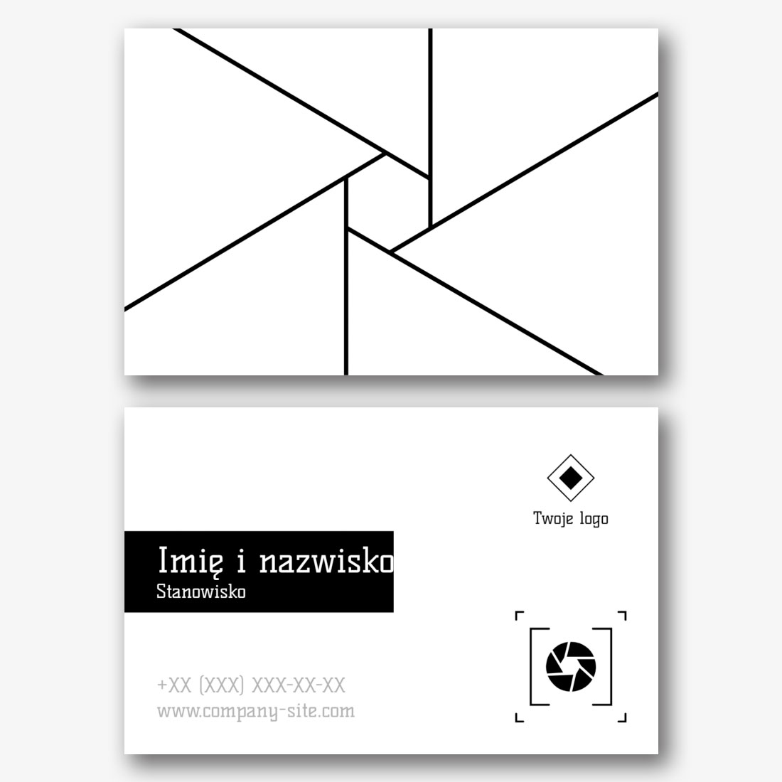 Darmowy szablon wizytówki studia fotograficznego, fotografa, pracowni fotograficznej. Utwórz układ DIY w kreatorze wizytówek.