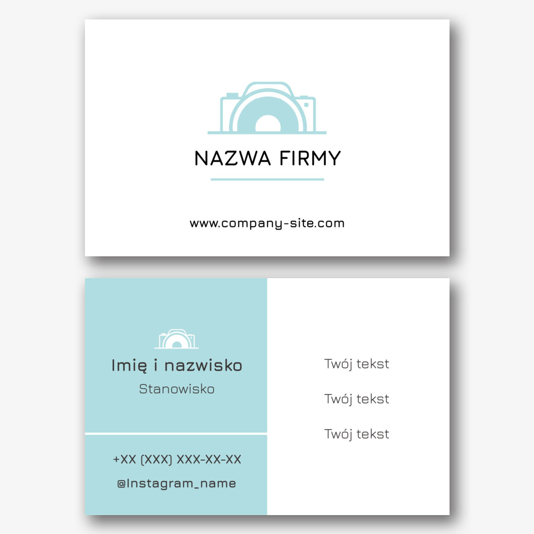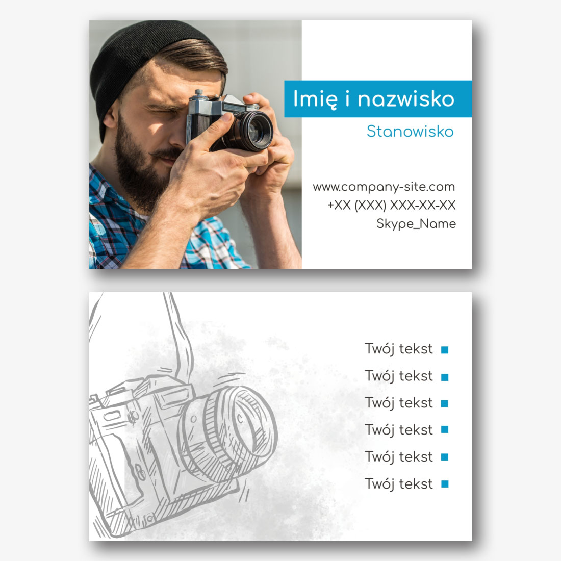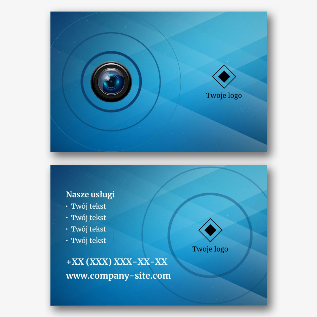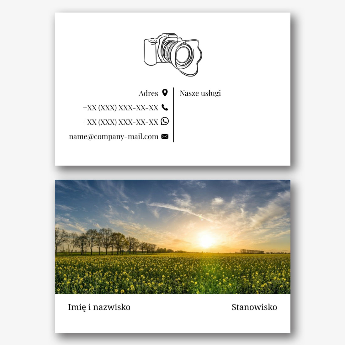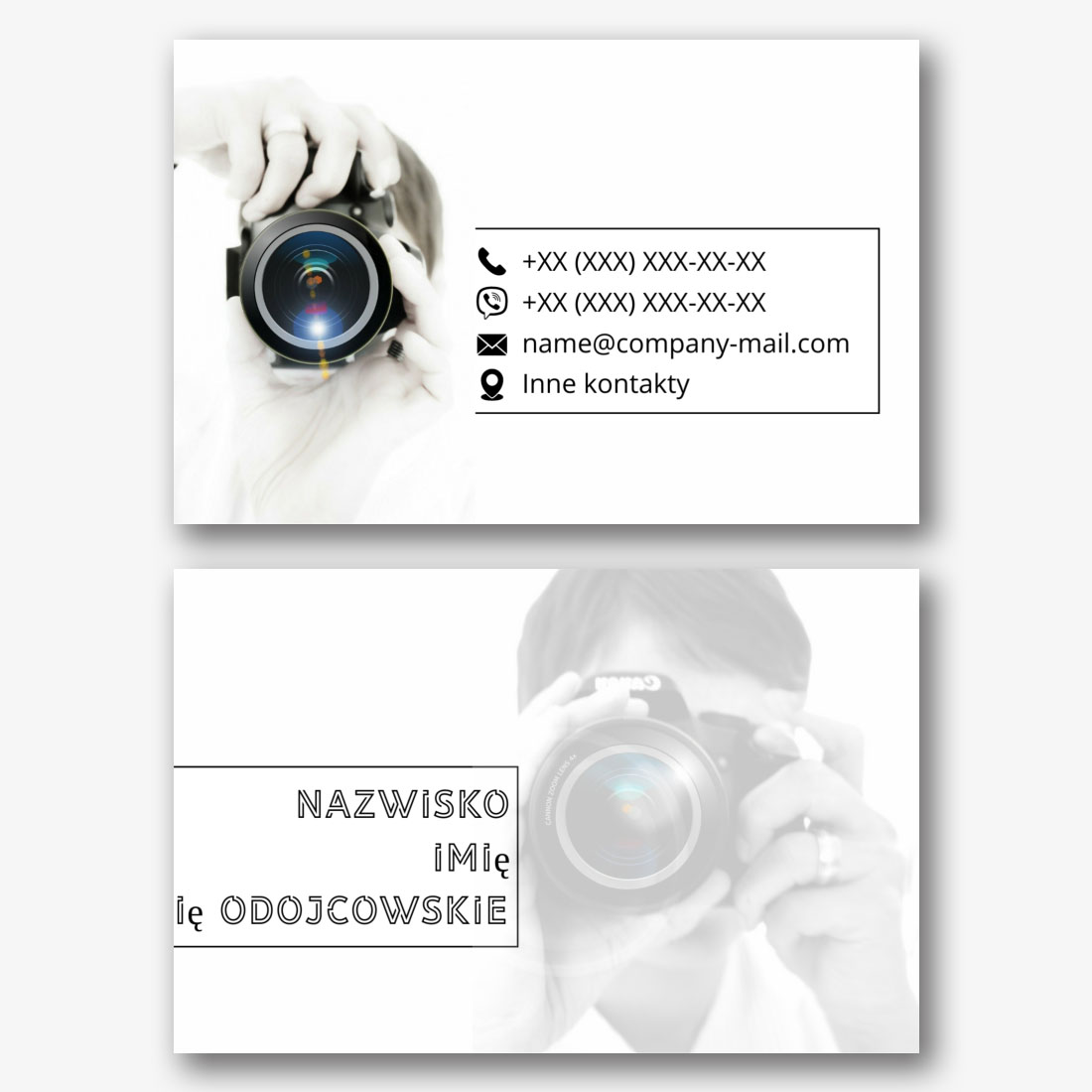 Darmowy szablon wizytówki studia fotograficznego, fotografa, pracowni fotograficznej. Utwórz układ DIY w kreatorze wizytówek.
