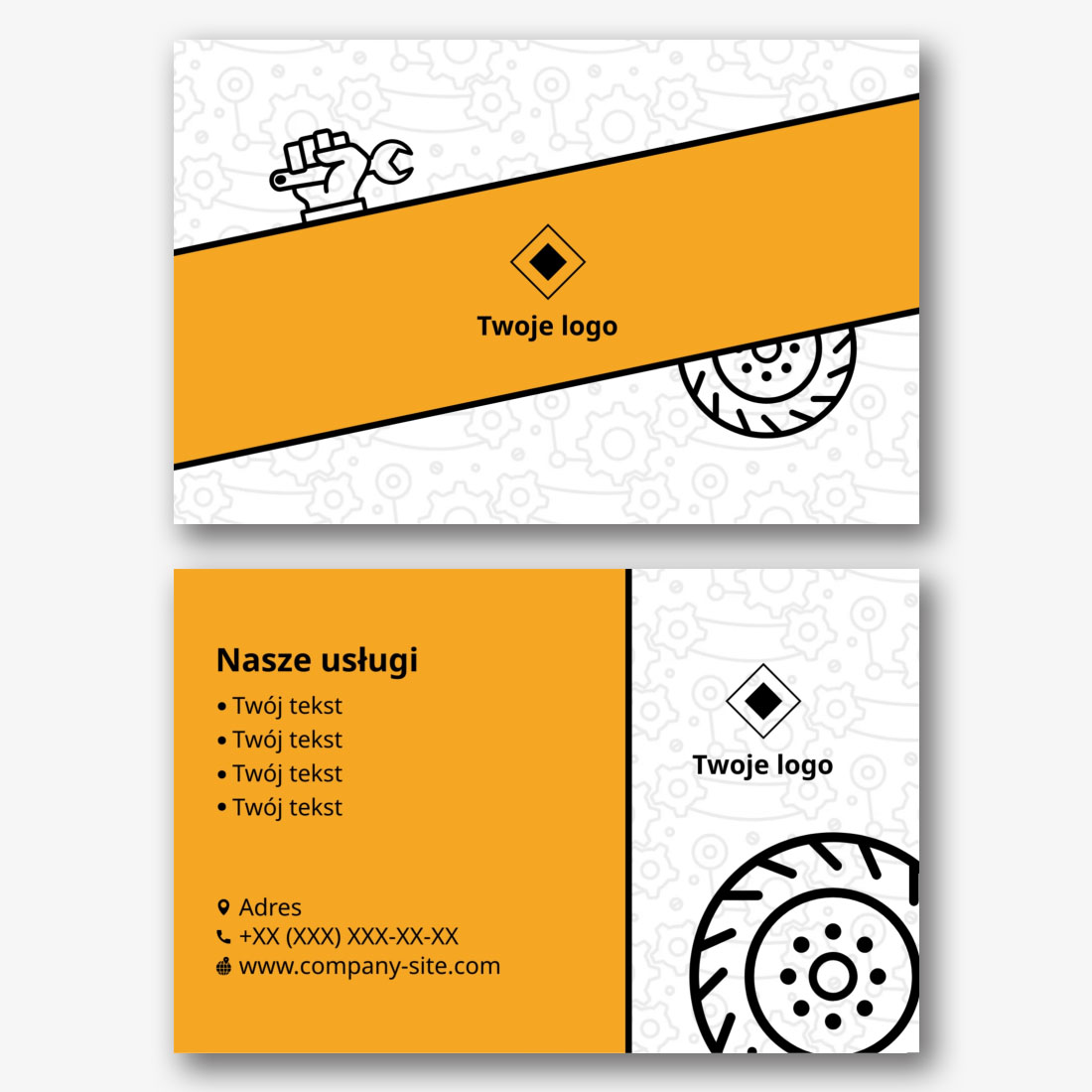 Darmowy szablon wizytówki Serwis opon, mechaników samochodowych, sto, Serwis samochodowy. Utwórz układ DIY w kreatorze wizytówek.