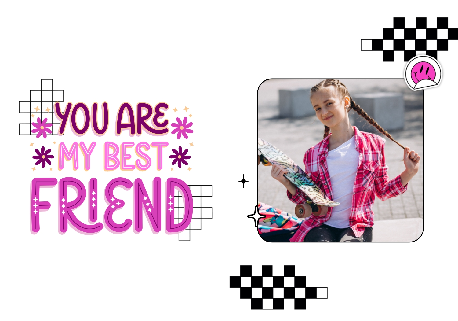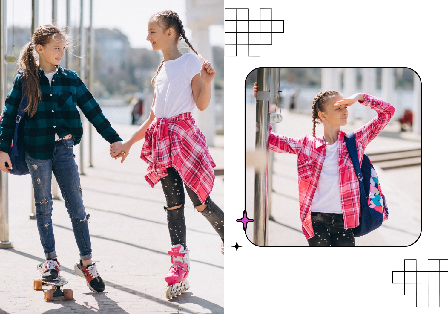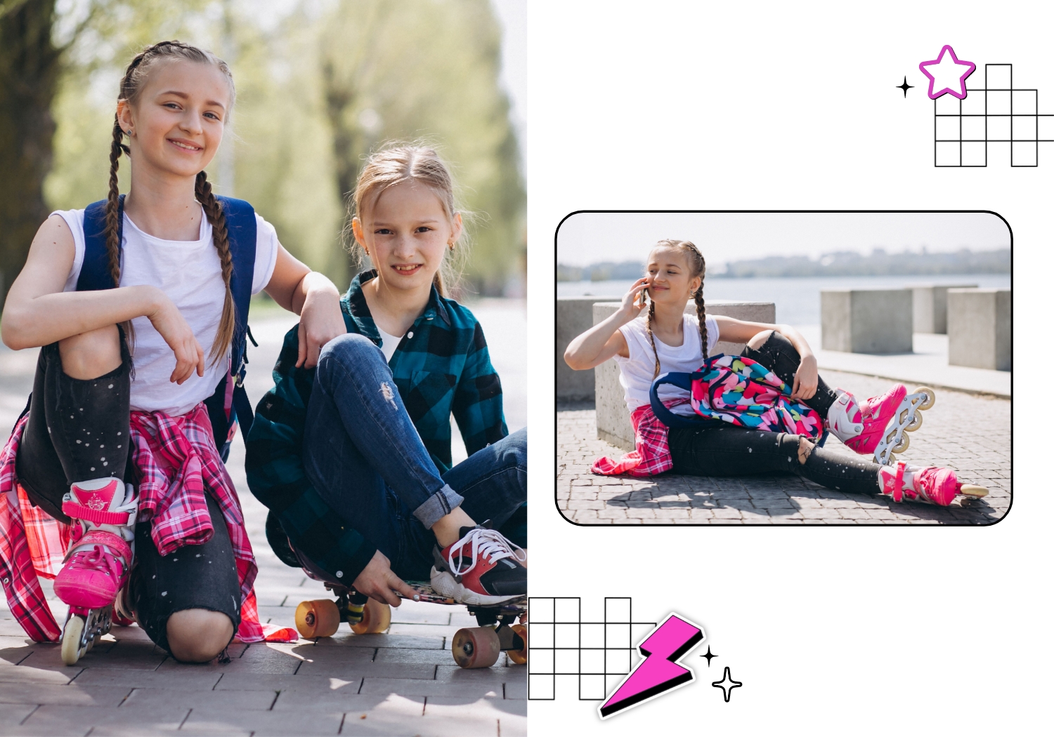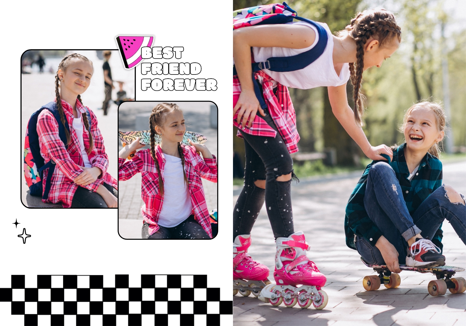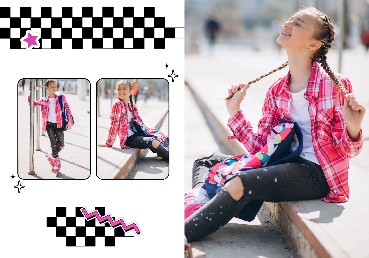 Darmowy szablon szkolnej fotoksiążki w pionie. Utwórz makietę DIY w internetowym kreatorze fotoksiążek.