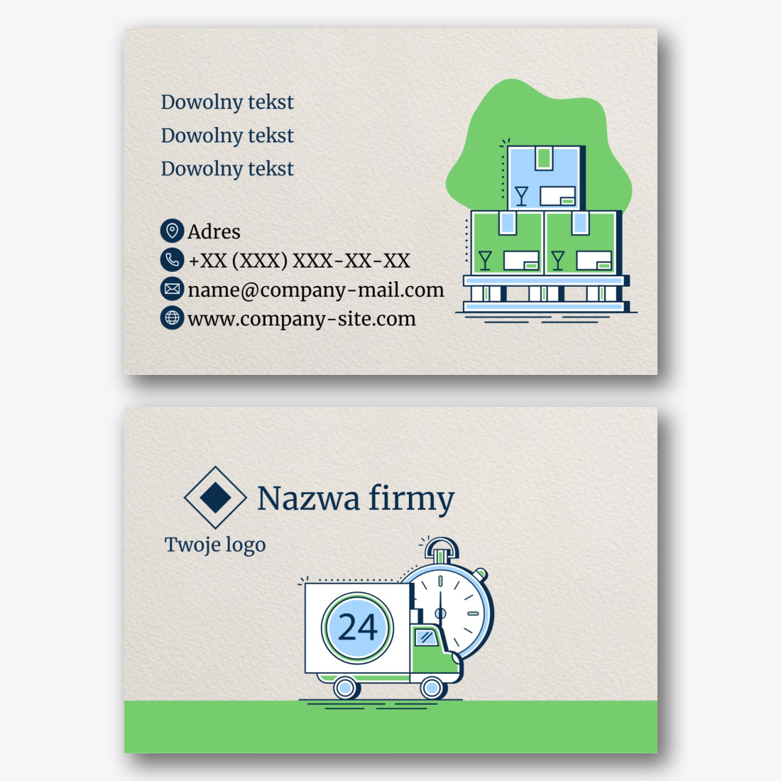 Darmowy szablon wizytówki usługi dostawy, wysyłki międzynarodowej, logistyki, firm logistycznych. Utwórz układ DIY w kreatorze wizytówek.