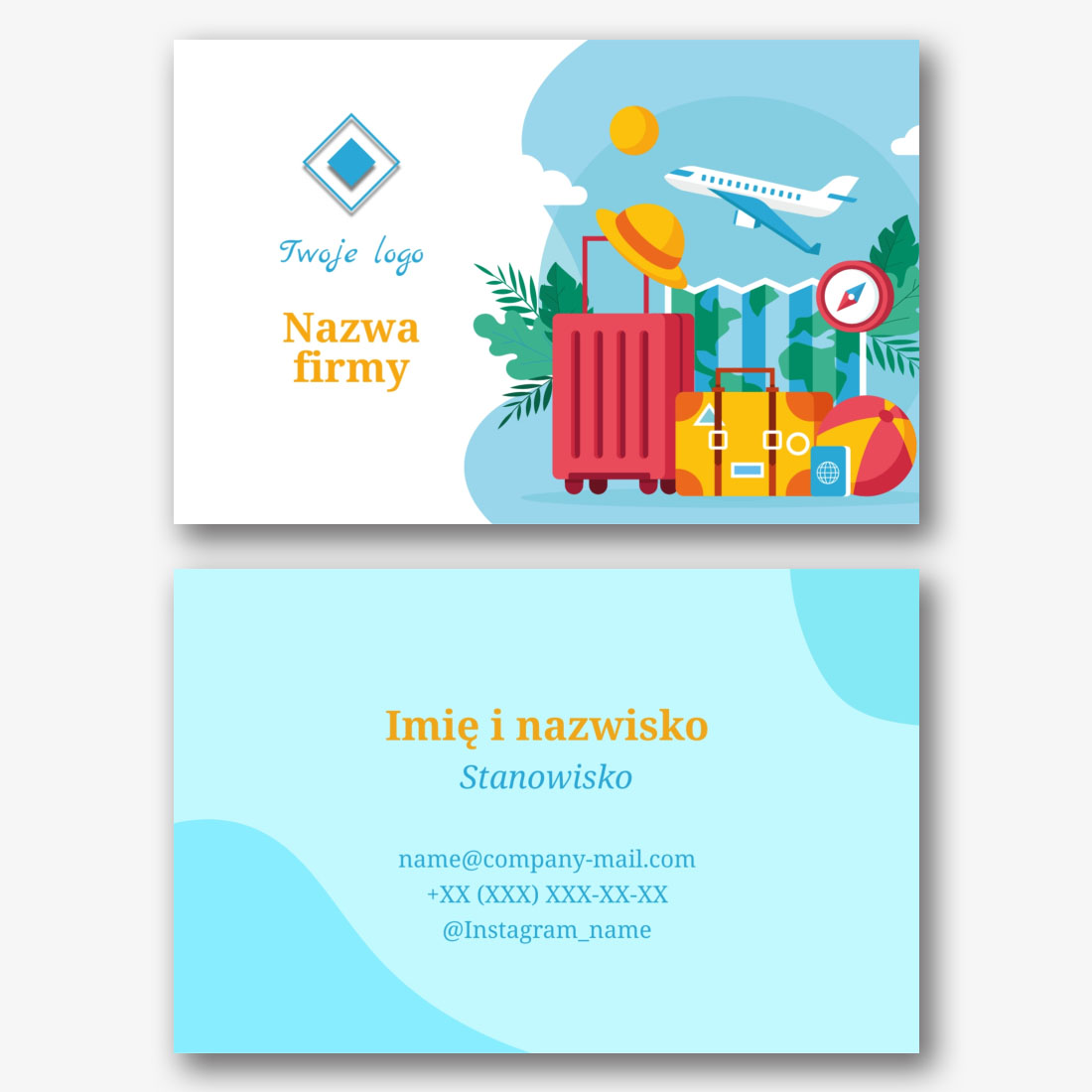 Darmowy szablon wizytówki touroperatora, biura podróży, biura podróży, menedżera turystyki. Utwórz układ DIY w kreatorze wizytówek.