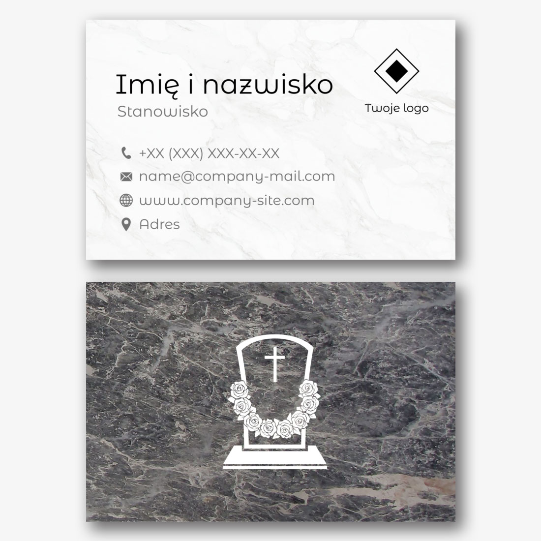 Darmowy szablon wizytówki dla producenta nagrobków, domów pogrzebowych. Utwórz układ DIY w kreatorze wizytówek.