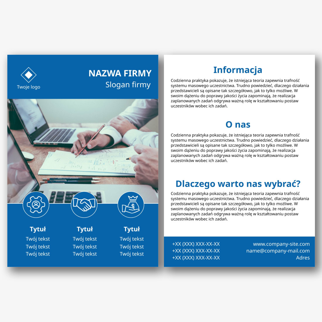 Darmowy szablon ulotki reklamowej dla analityka biznesowego, przedsiębiorcy, dyrektora. Utwórz układ ulotki DIY w internetowym kreatorze ulotek.