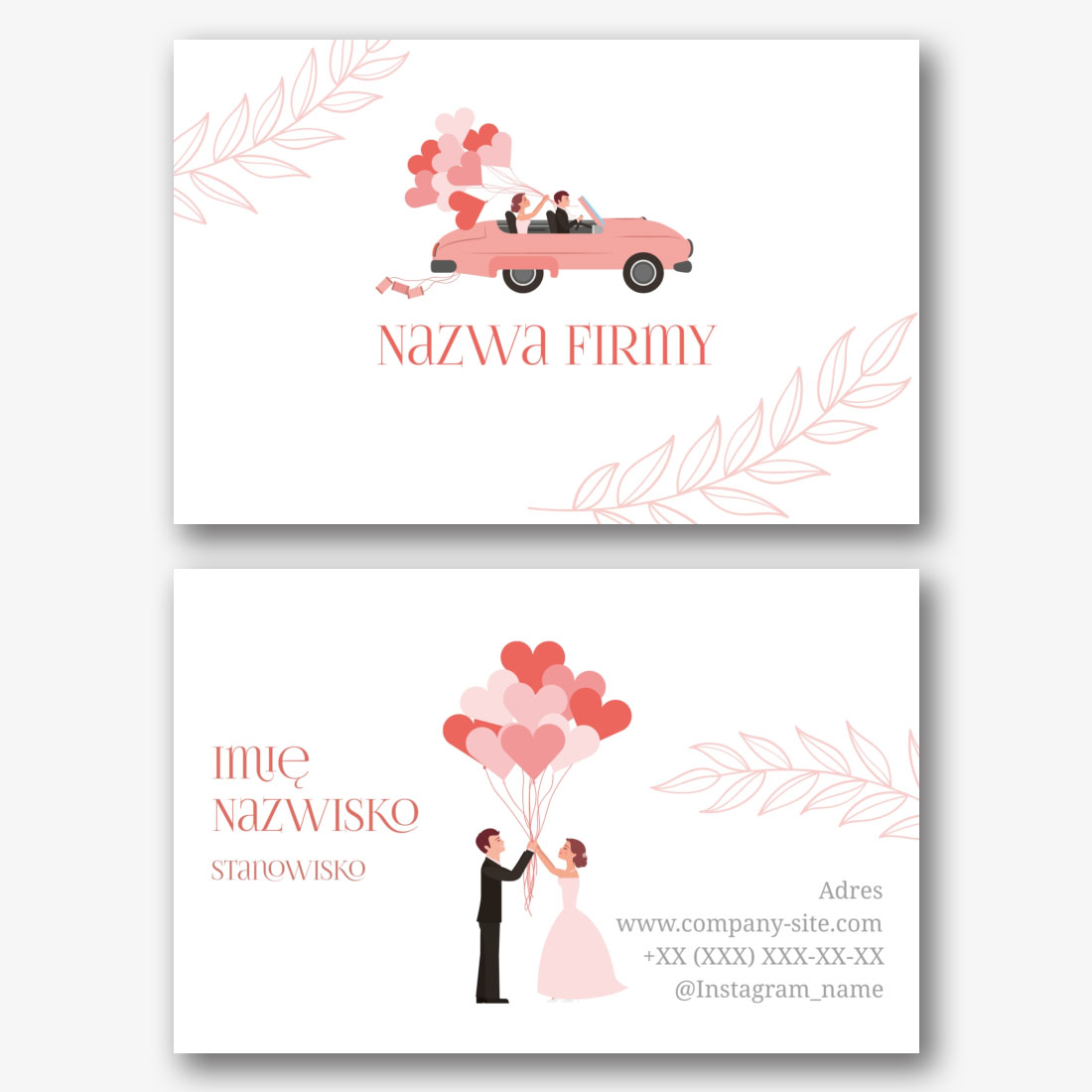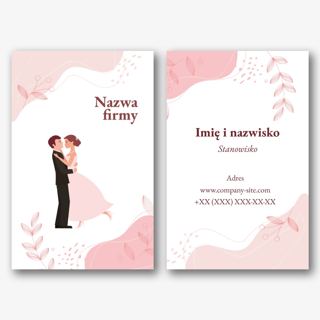 Darmowy szablon wizytówki do salonu ślubnego, sklepu z sukniami ślubnymi, wypożyczalni sukien ślubnych. Utwórz układ DIY w kreatorze wizytówek.