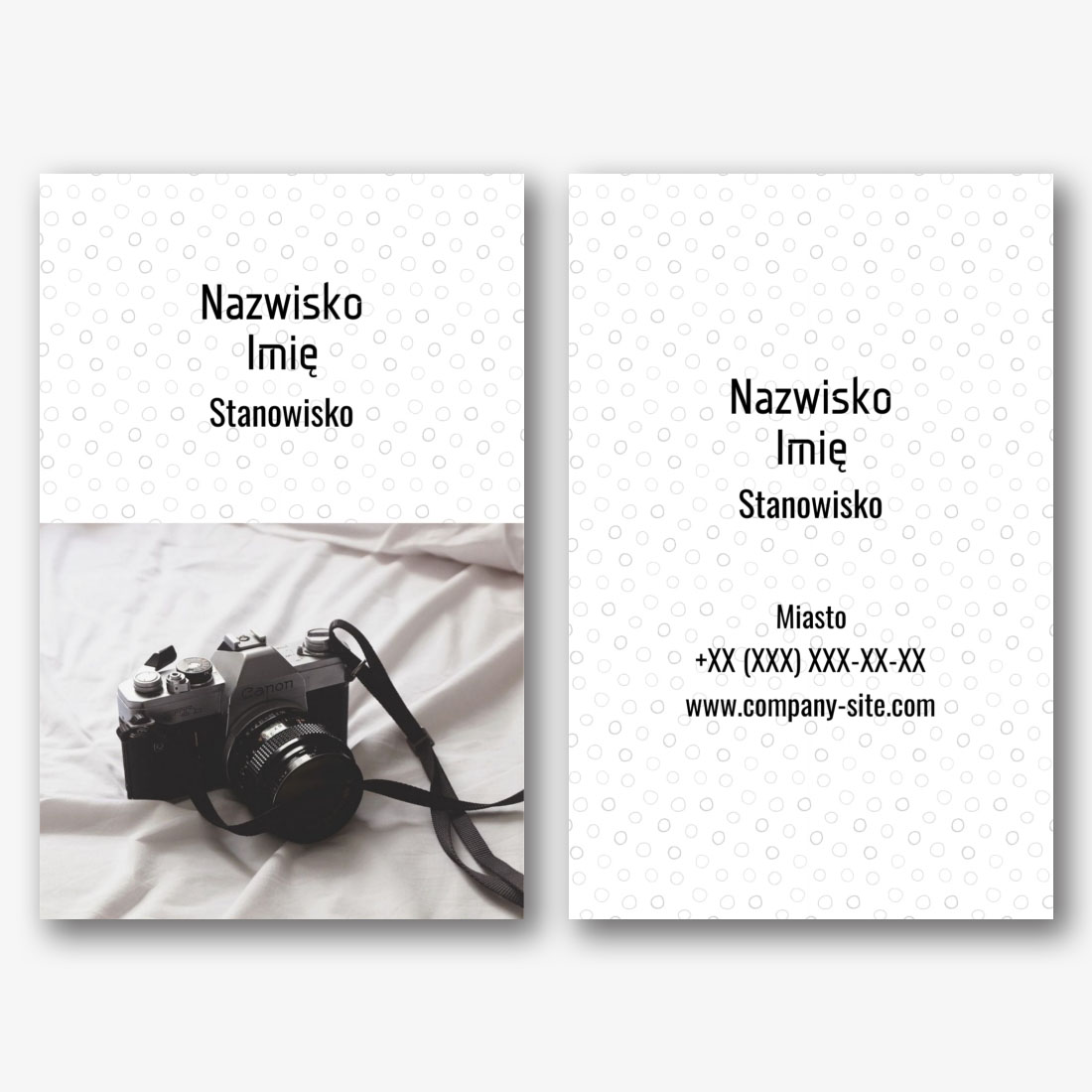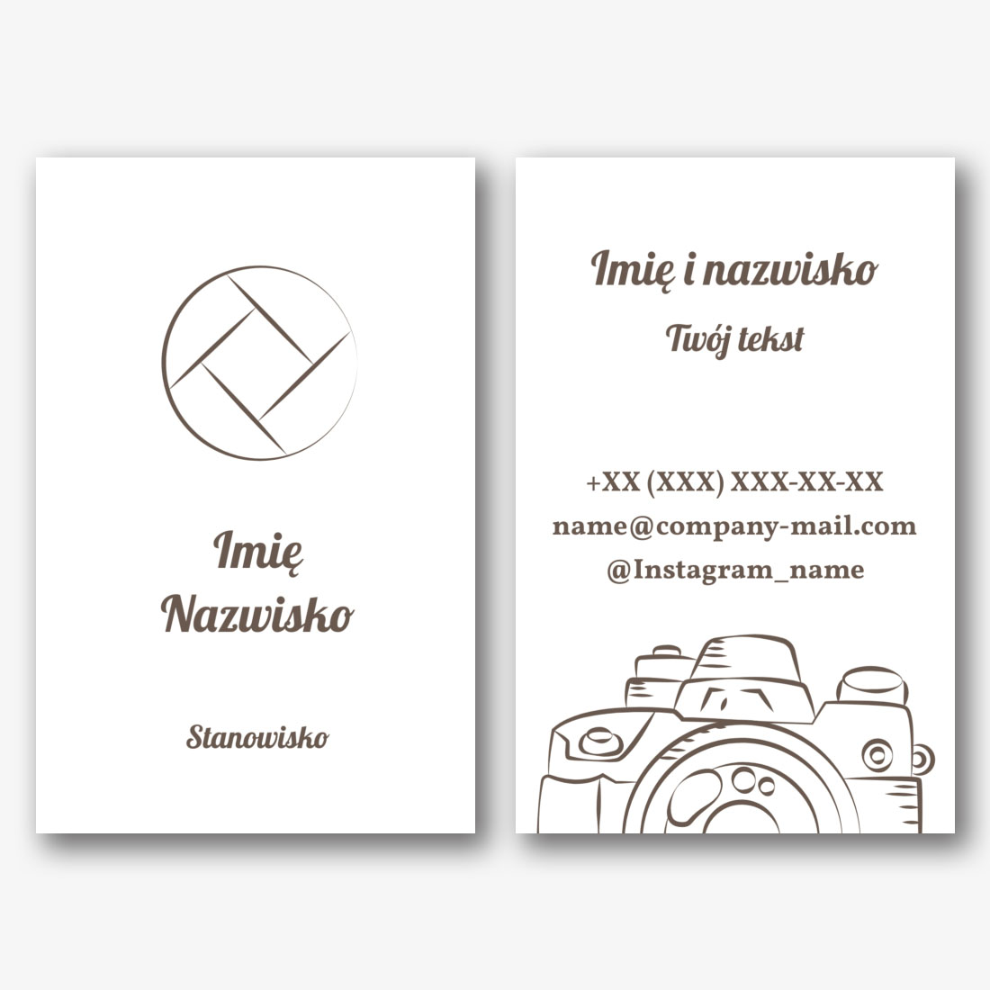 Darmowy szablon wizytówki dla sklepu fotograficznego, studia fotograficznego, fotografów. Utwórz układ DIY w kreatorze wizytówek.