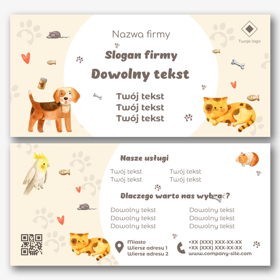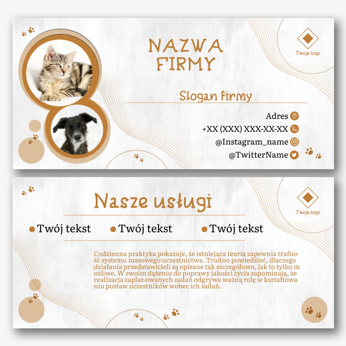 Darmowy szablon ulotki do reklamy kliniki weterynaryjnej, weterynarza. Utwórz makietę ulotki DIY w internetowym kreatorze ulotek.