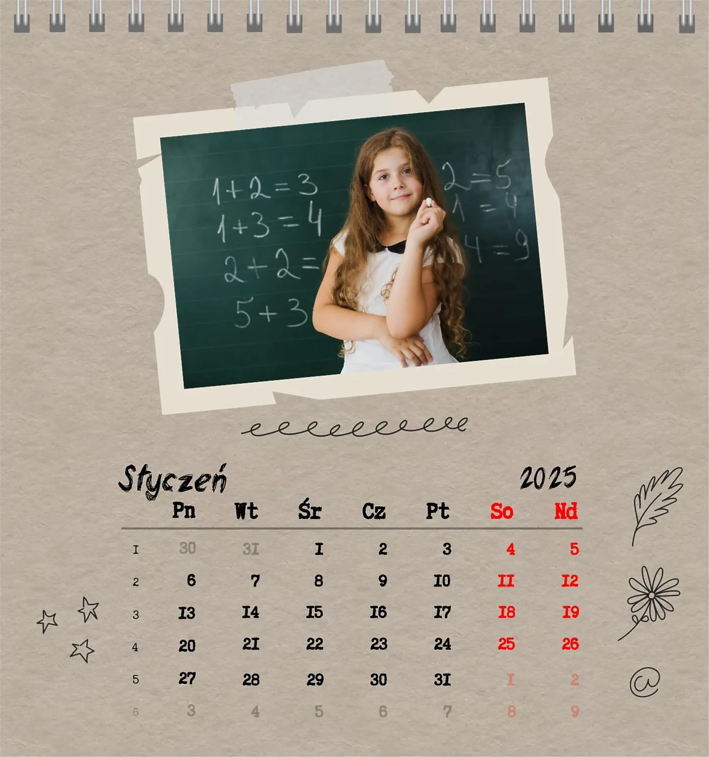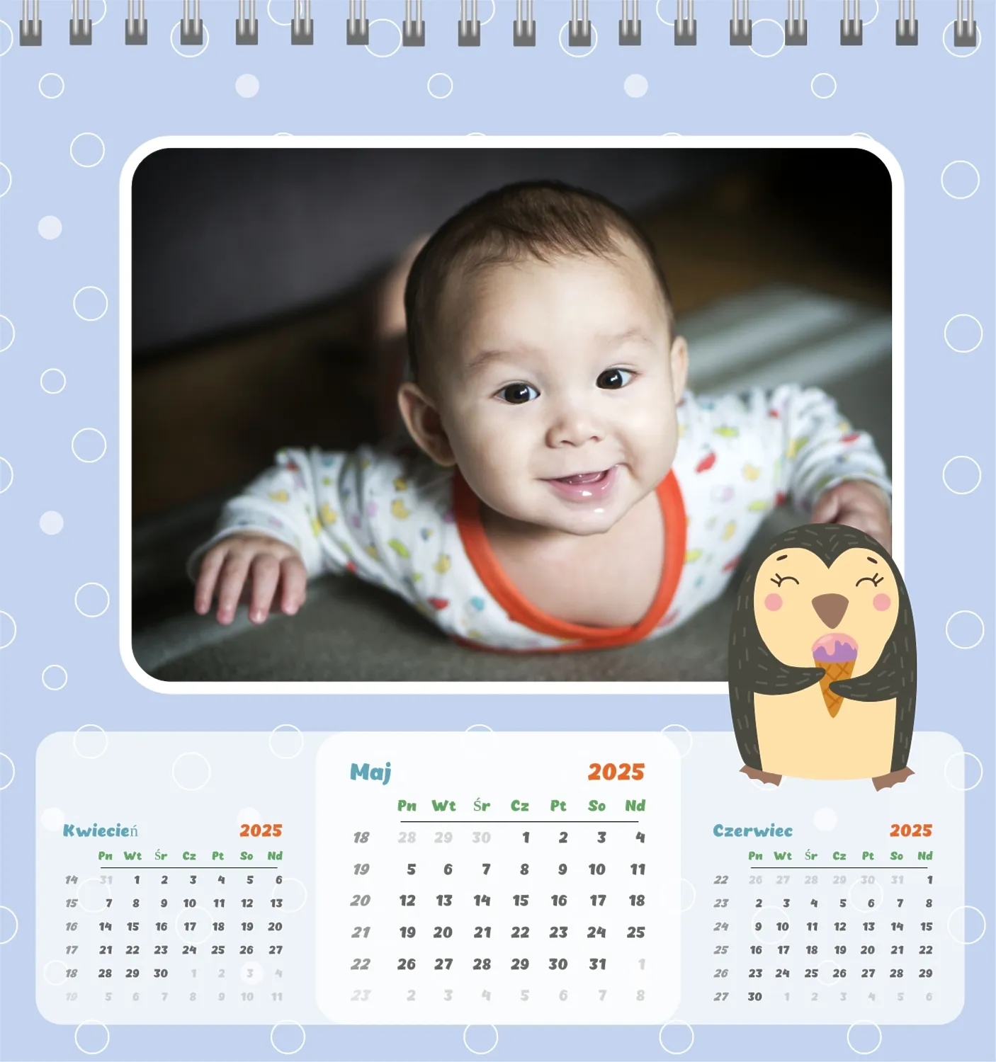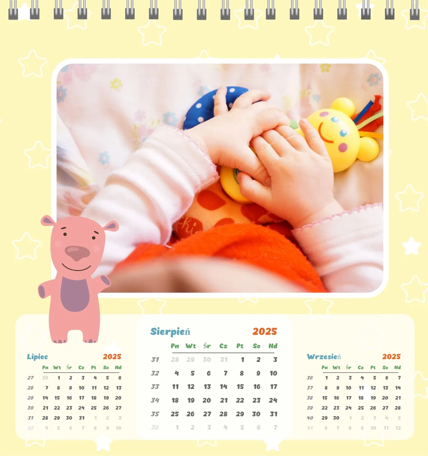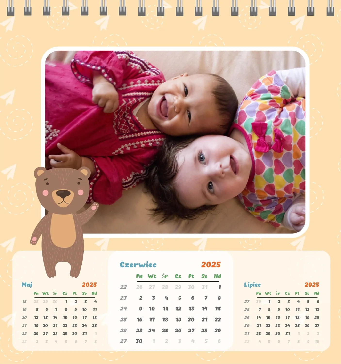 Darmowy szablon kalendarza dla dzieci w domu online na niezapomniane chwile z możliwością edycji w kreatorze kalendarza online.