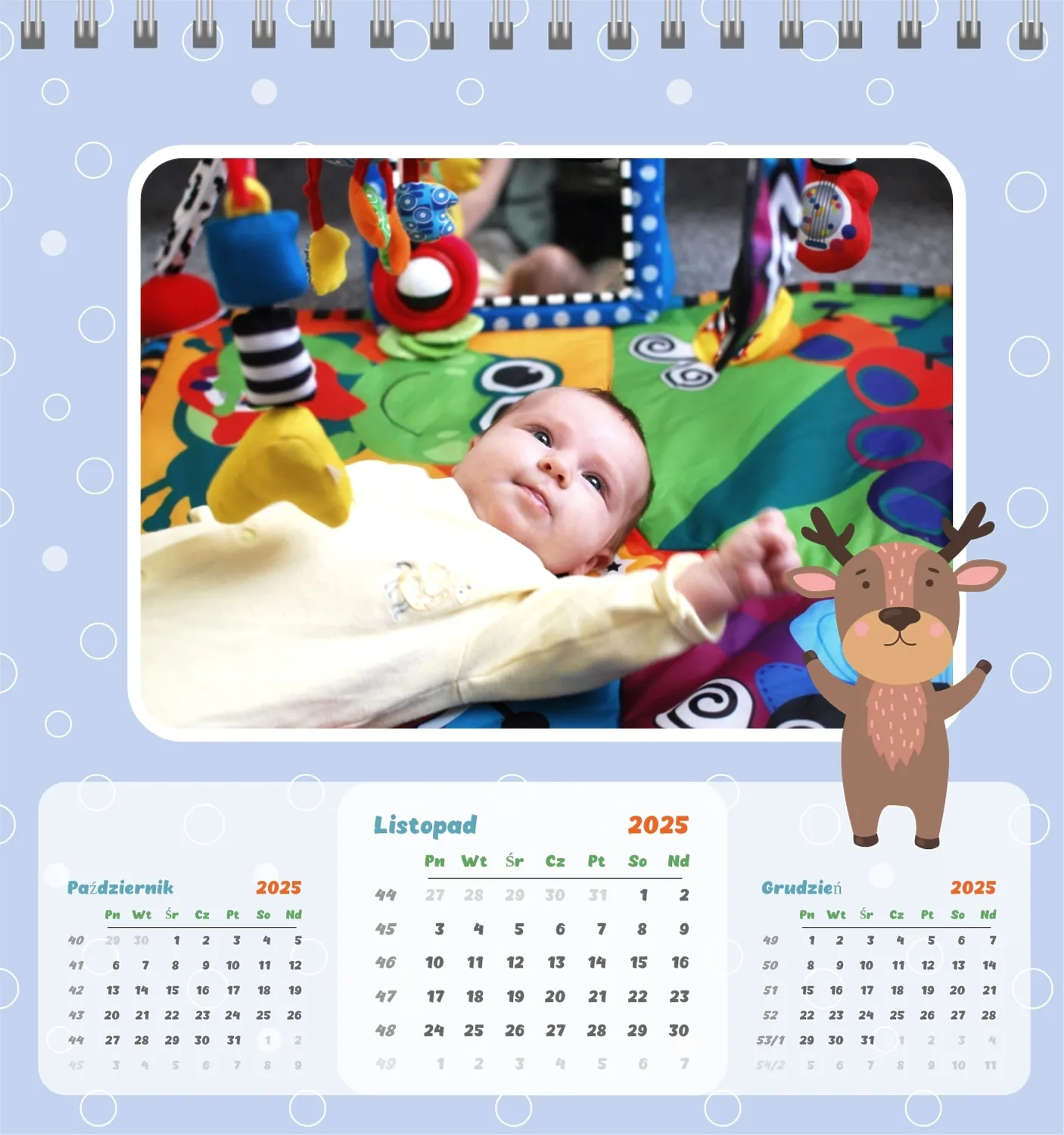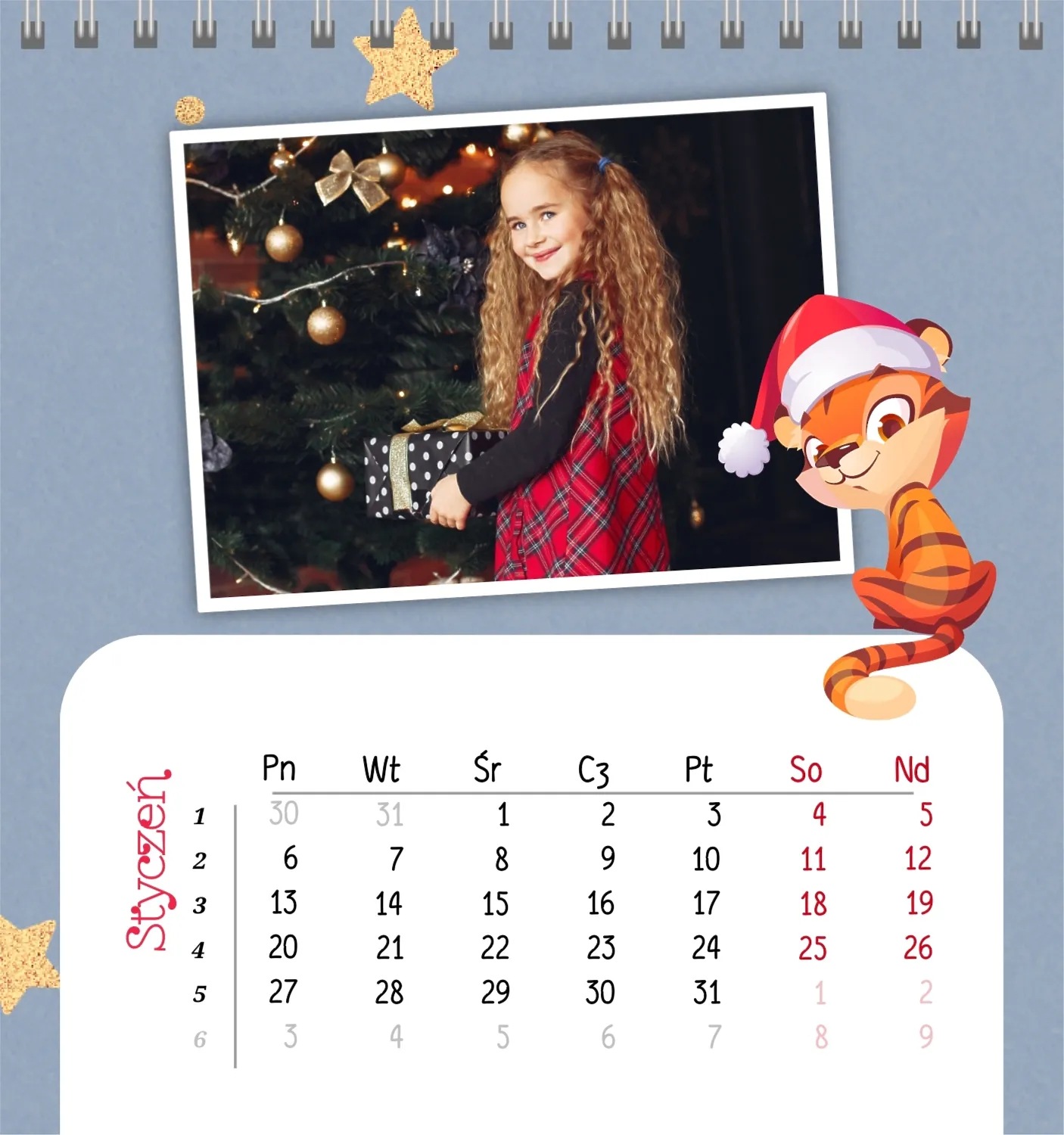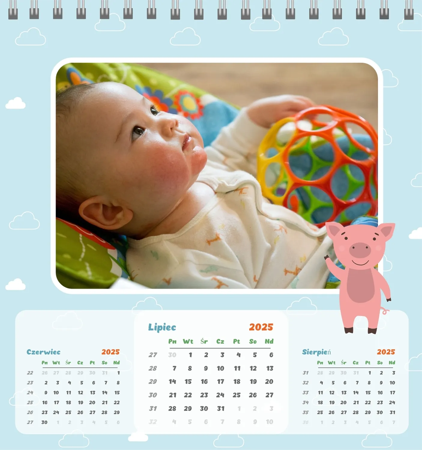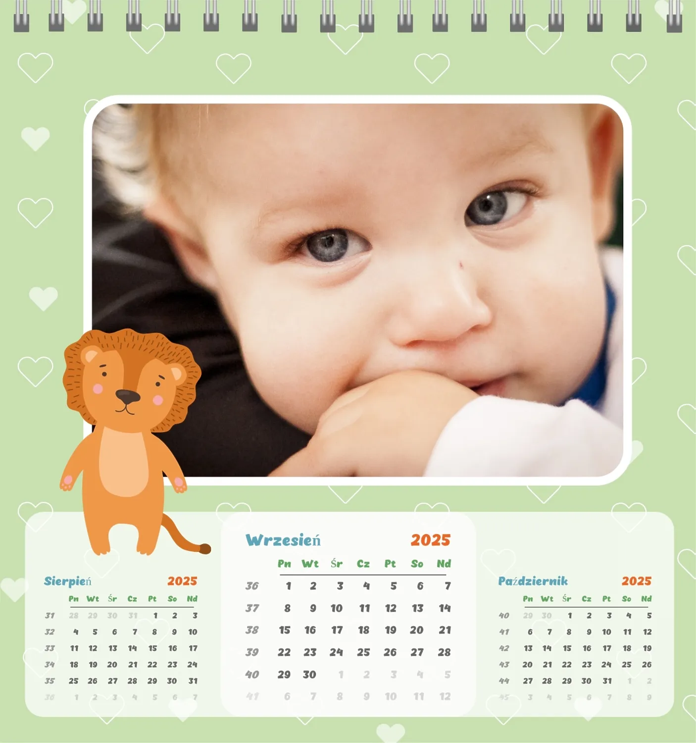Darmowy szablon kalendarza dla dzieci w domu online na niezapomniane chwile z możliwością edycji w kreatorze kalendarza online.