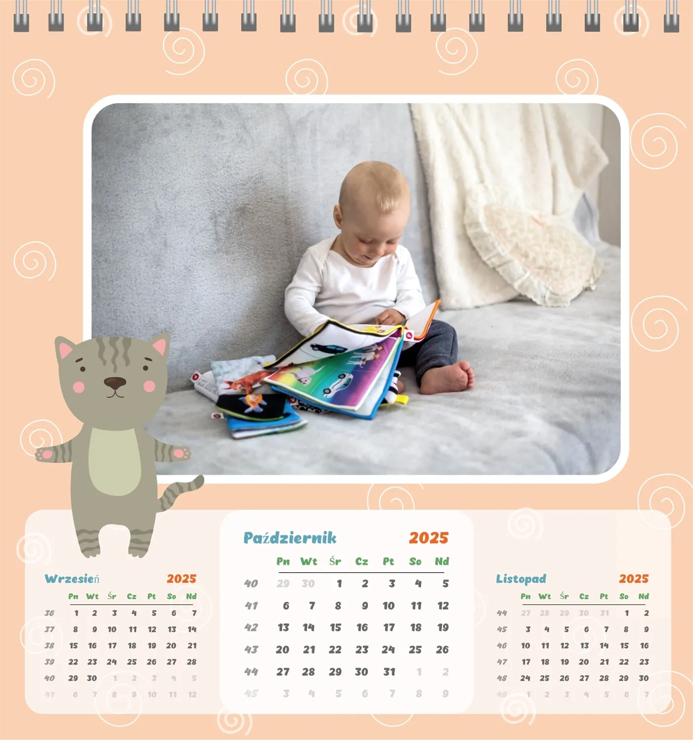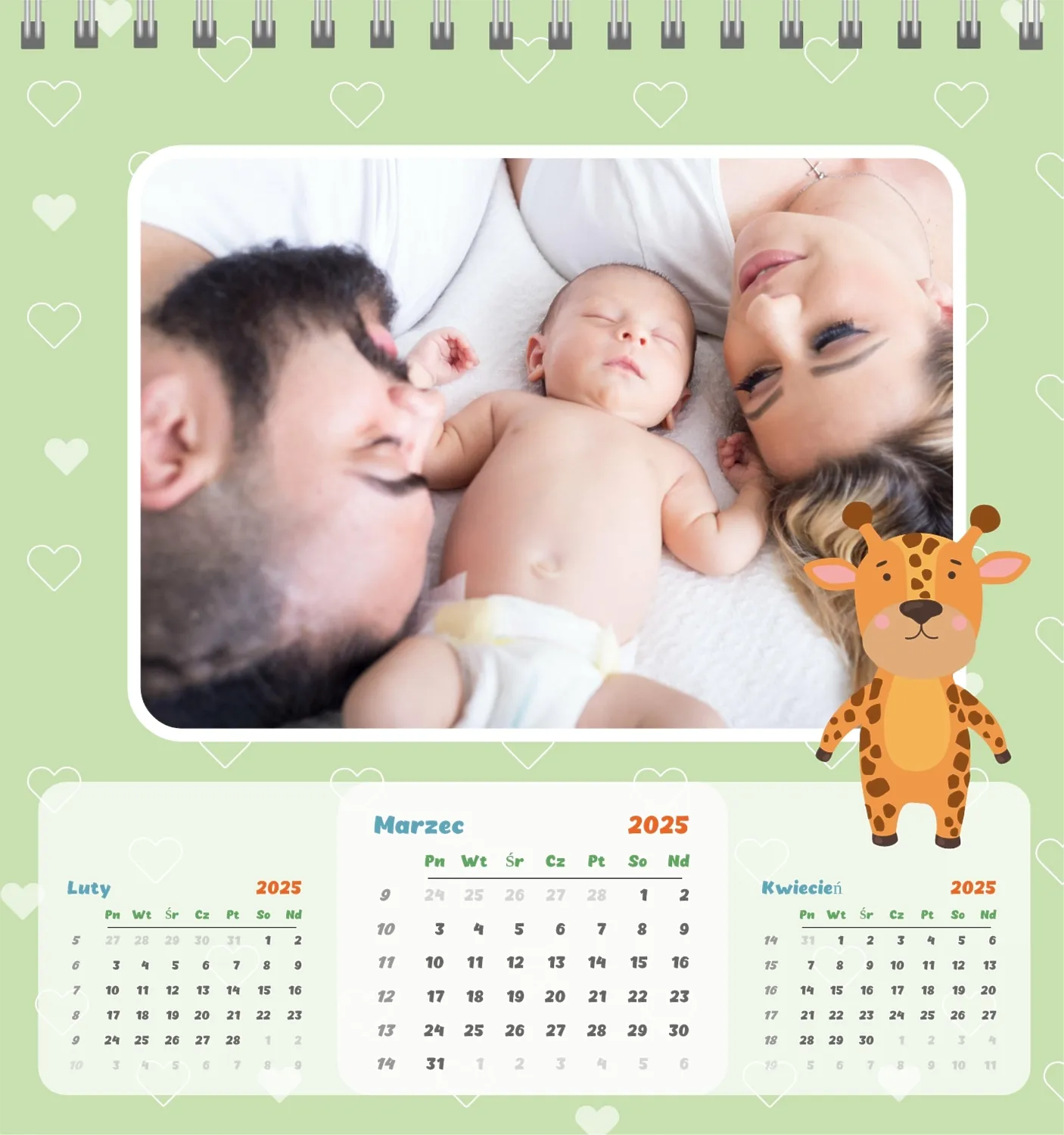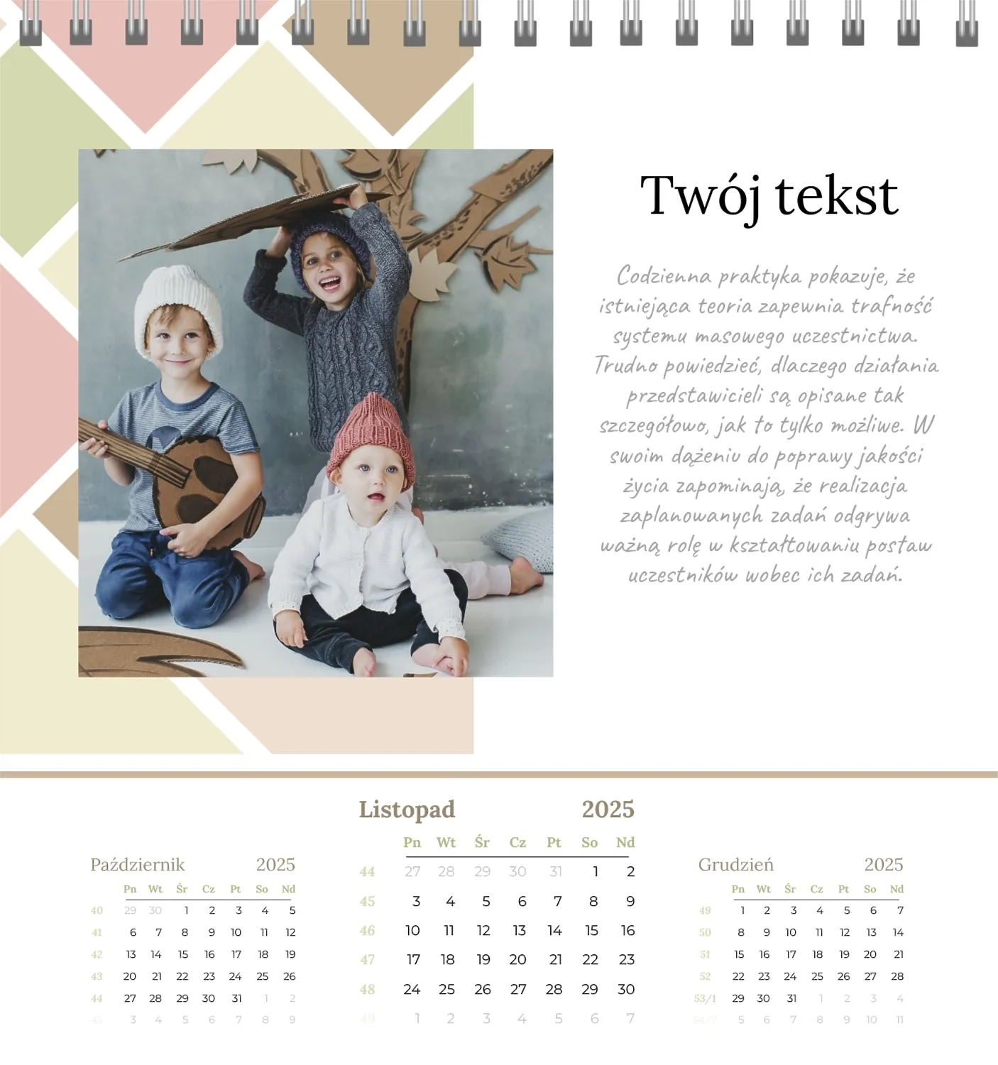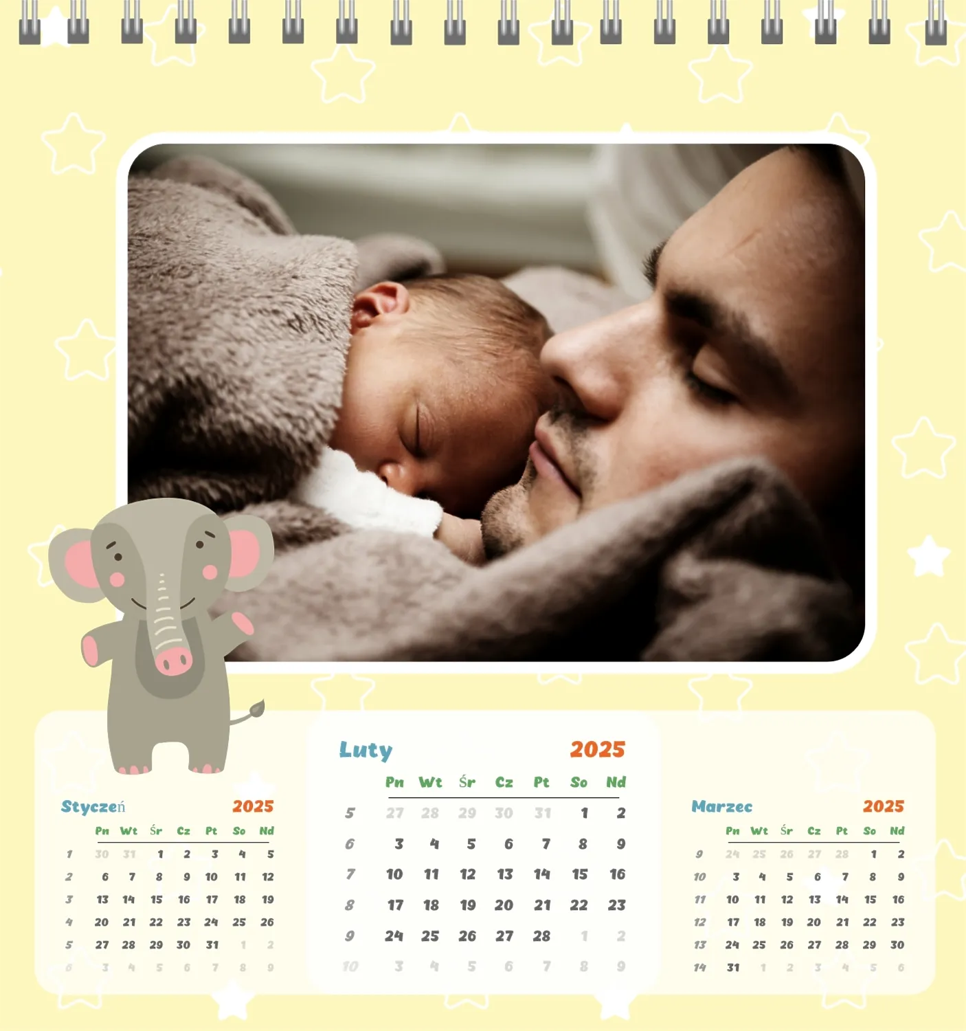 Darmowy szablon kalendarza dla dzieci w domu online na niezapomniane chwile z możliwością edycji w kreatorze kalendarza online.