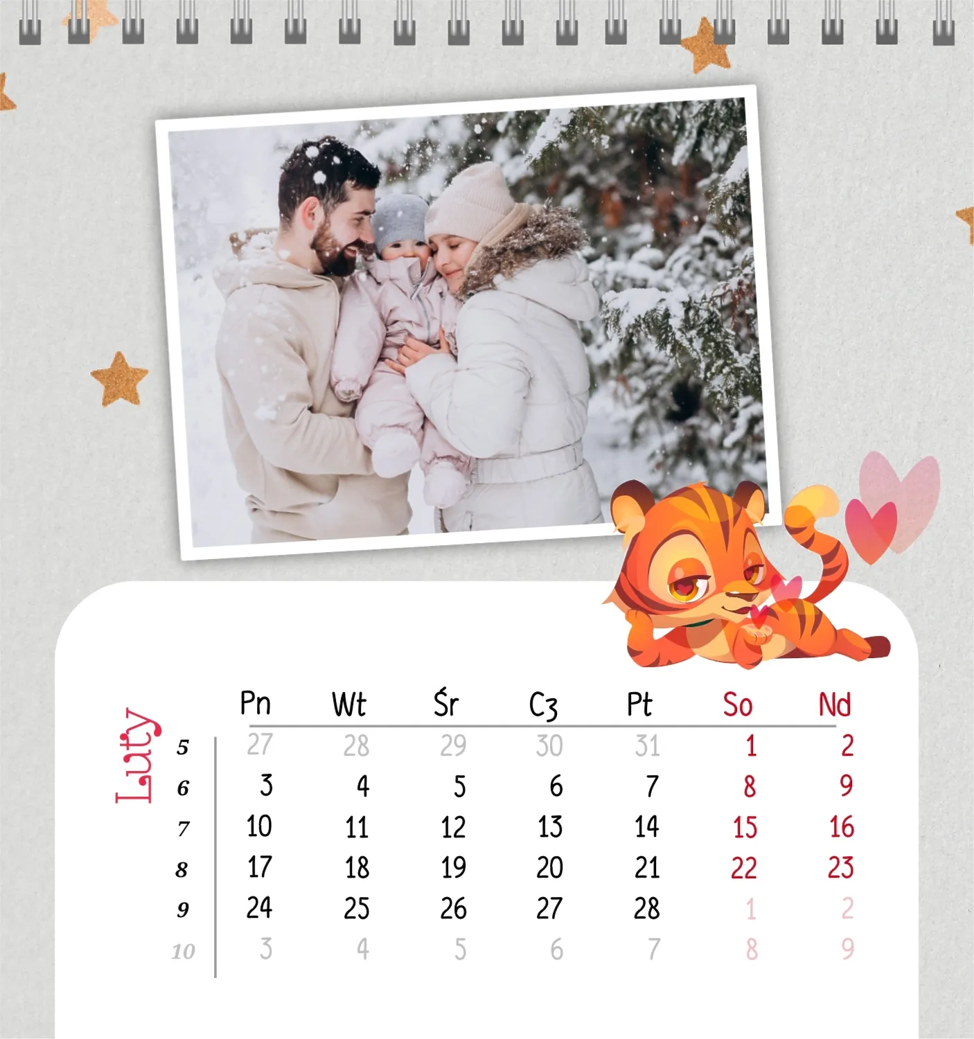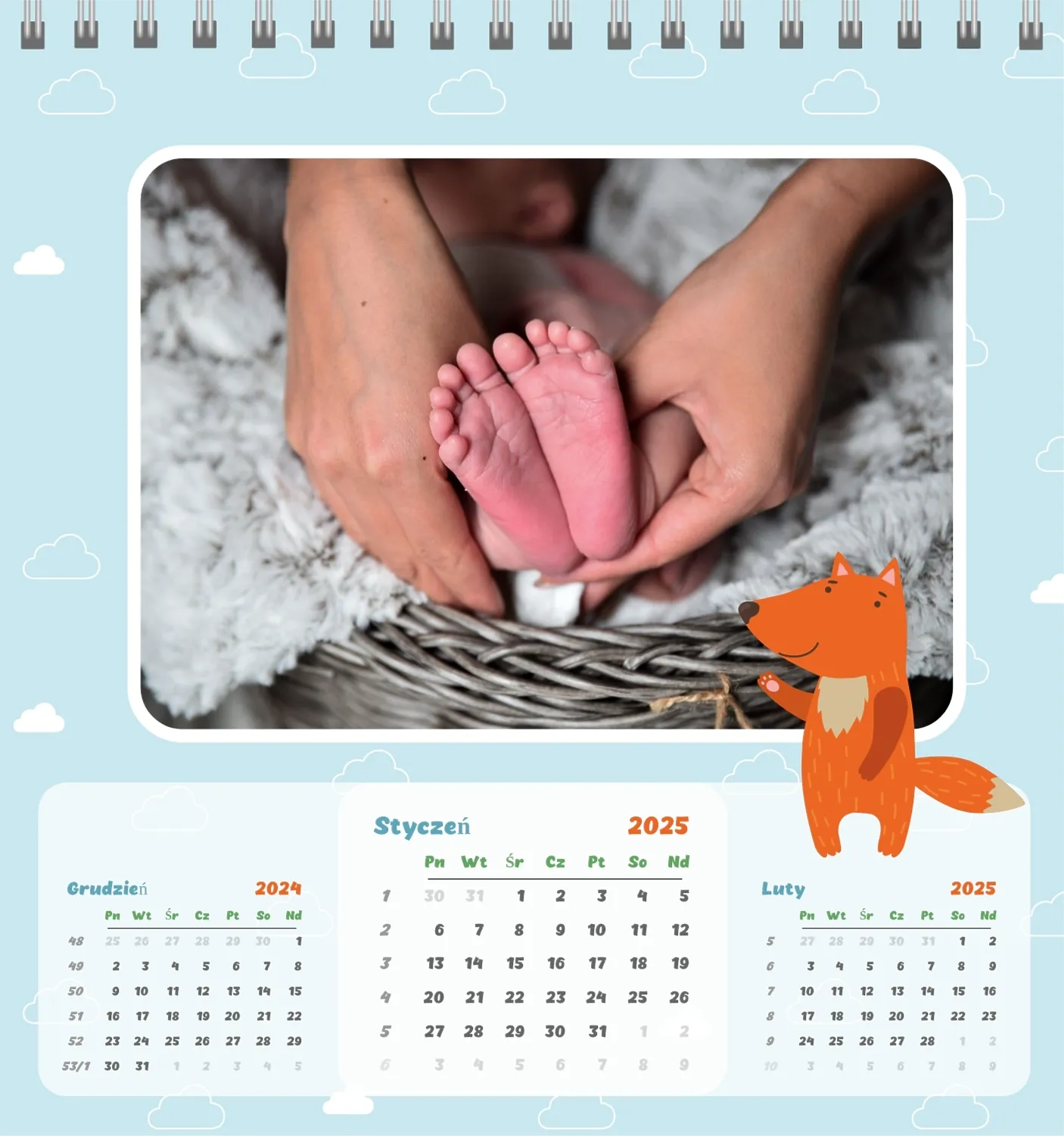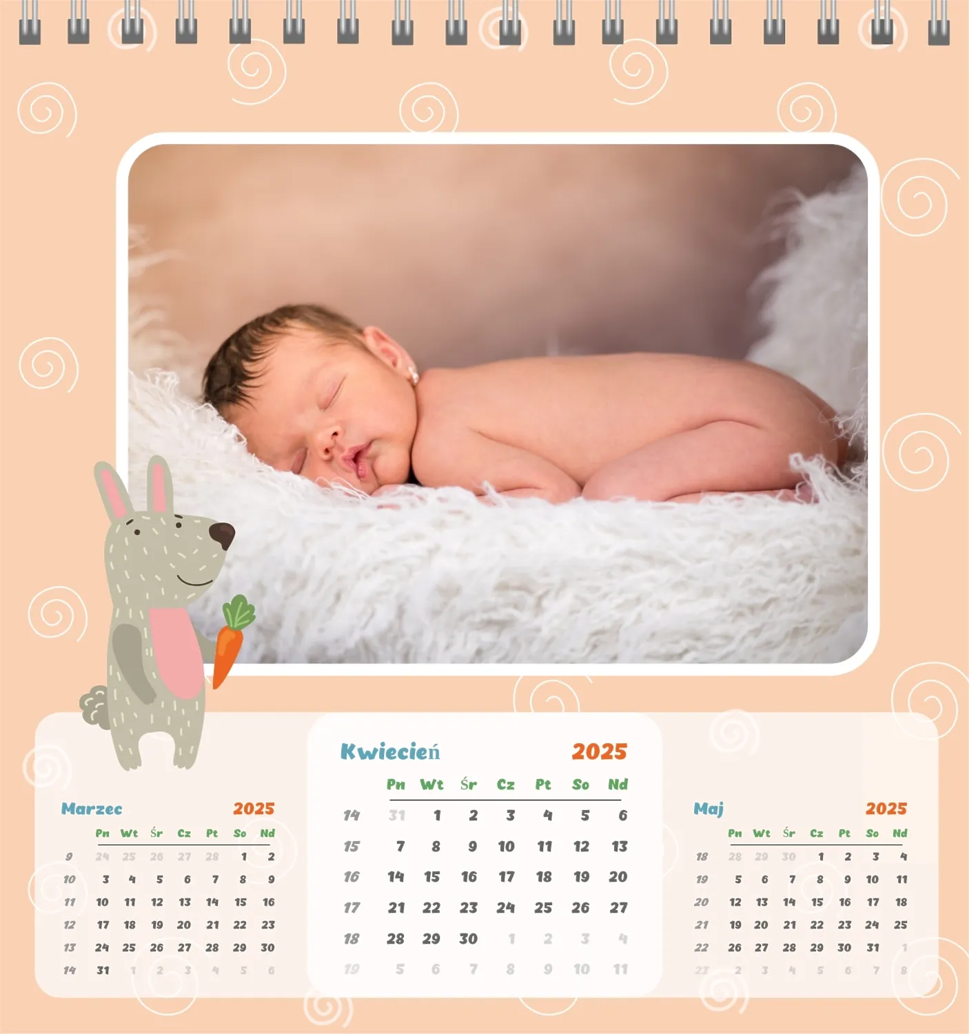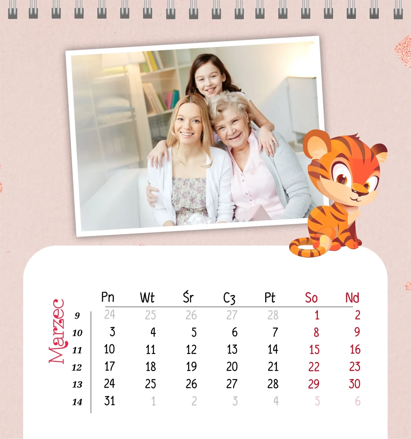 Darmowy szablon kalendarza dla dzieci w domu online na niezapomniane chwile z możliwością edycji w kreatorze kalendarza online.