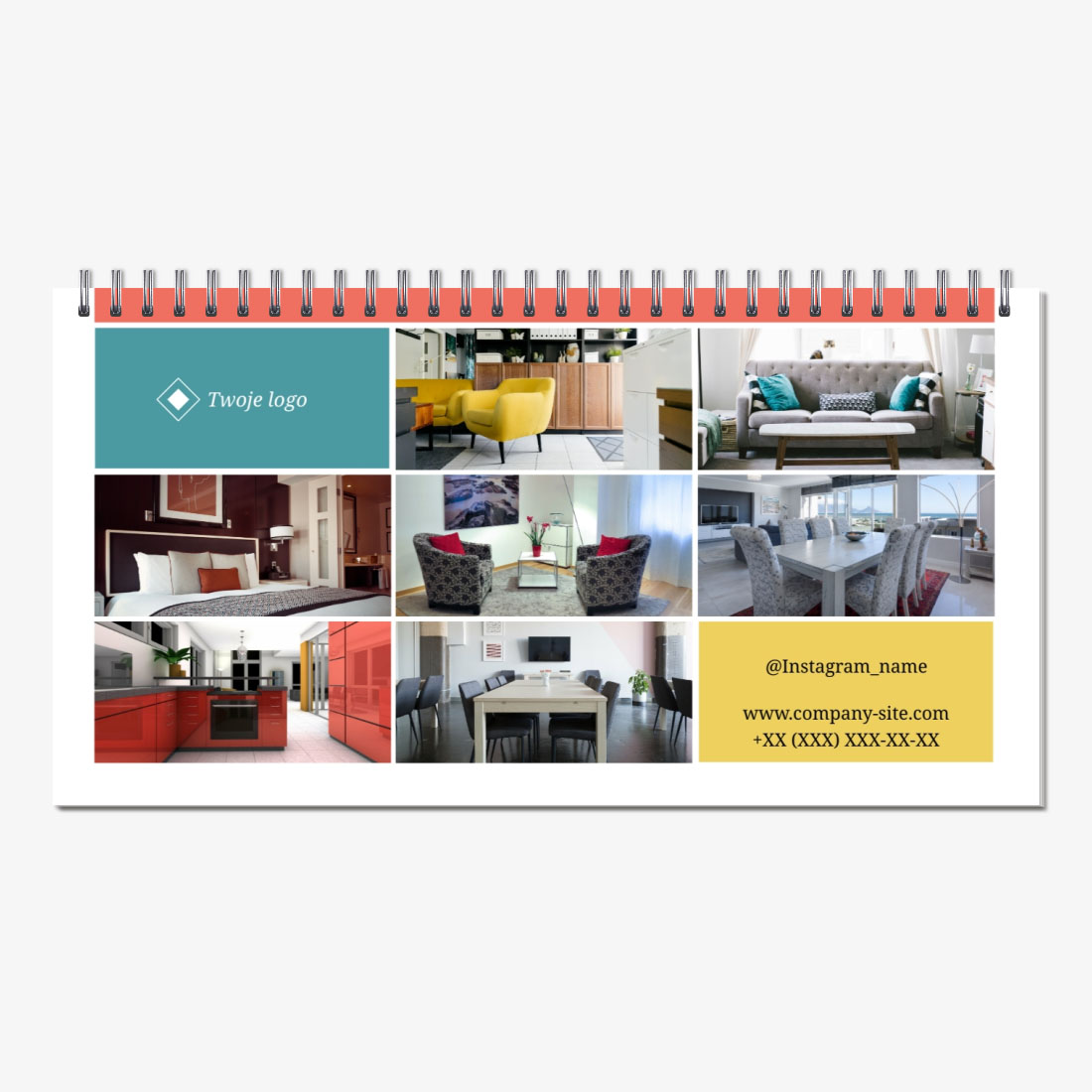 Darmowy szablon kalendarza reklamowego-dom online dla studia fotograficznego, fotografa. Utwórz układ DIY w kreatorze kalendarzy.