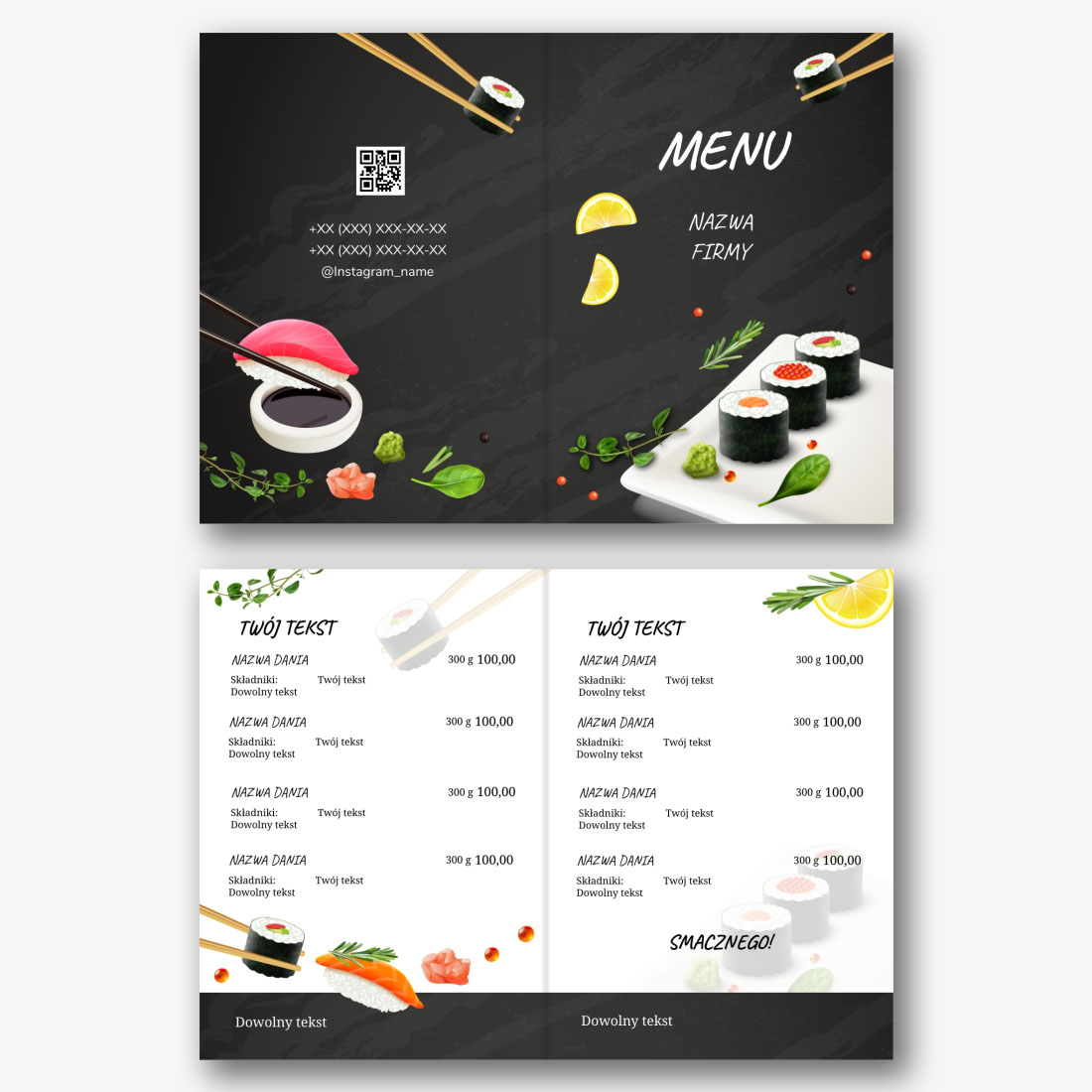 Darmowy szablon menu dla restauracji. Utwórz układ DIY w kreatorze menu online.