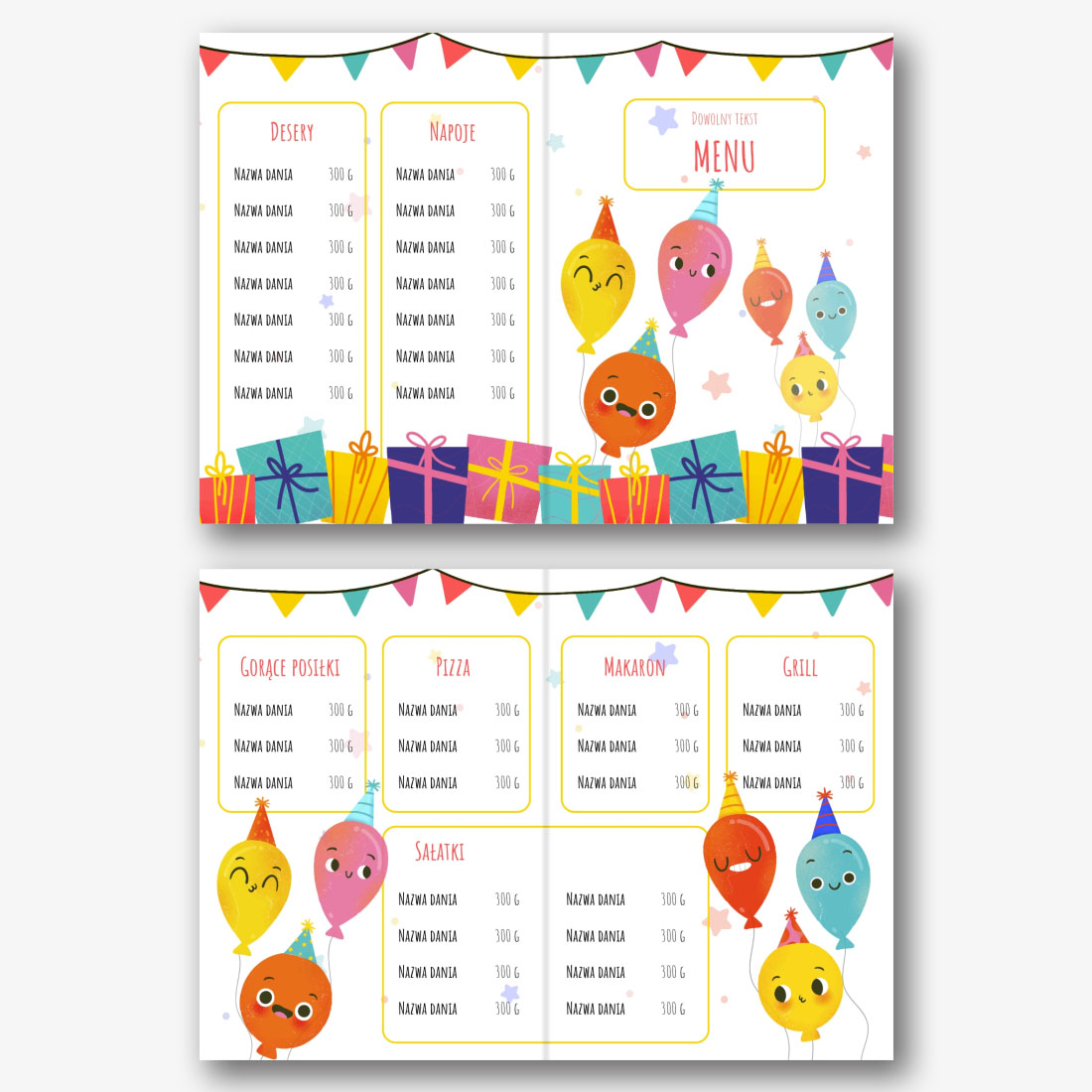 Szablon menu urodzinowego