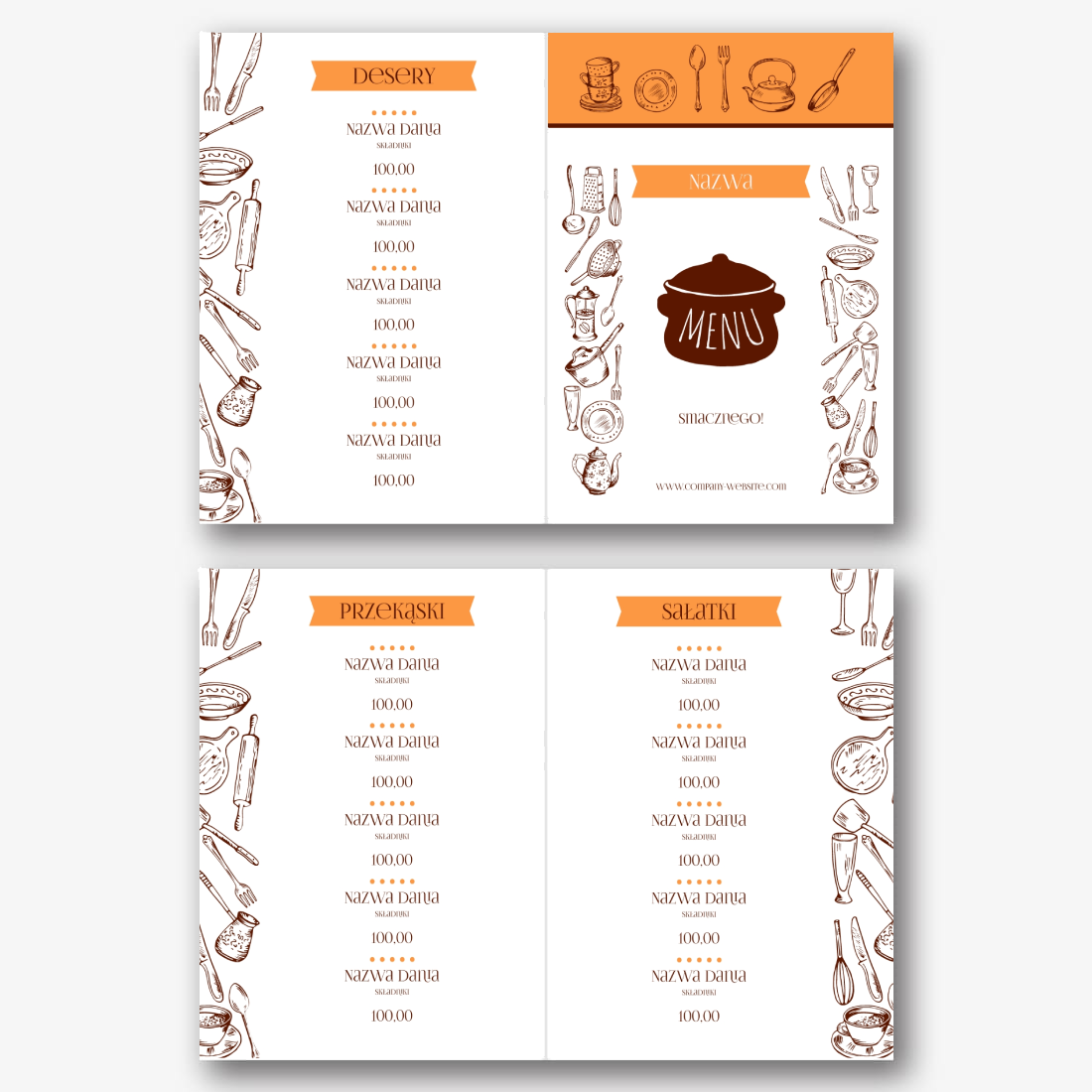 Szablon menu restauracji