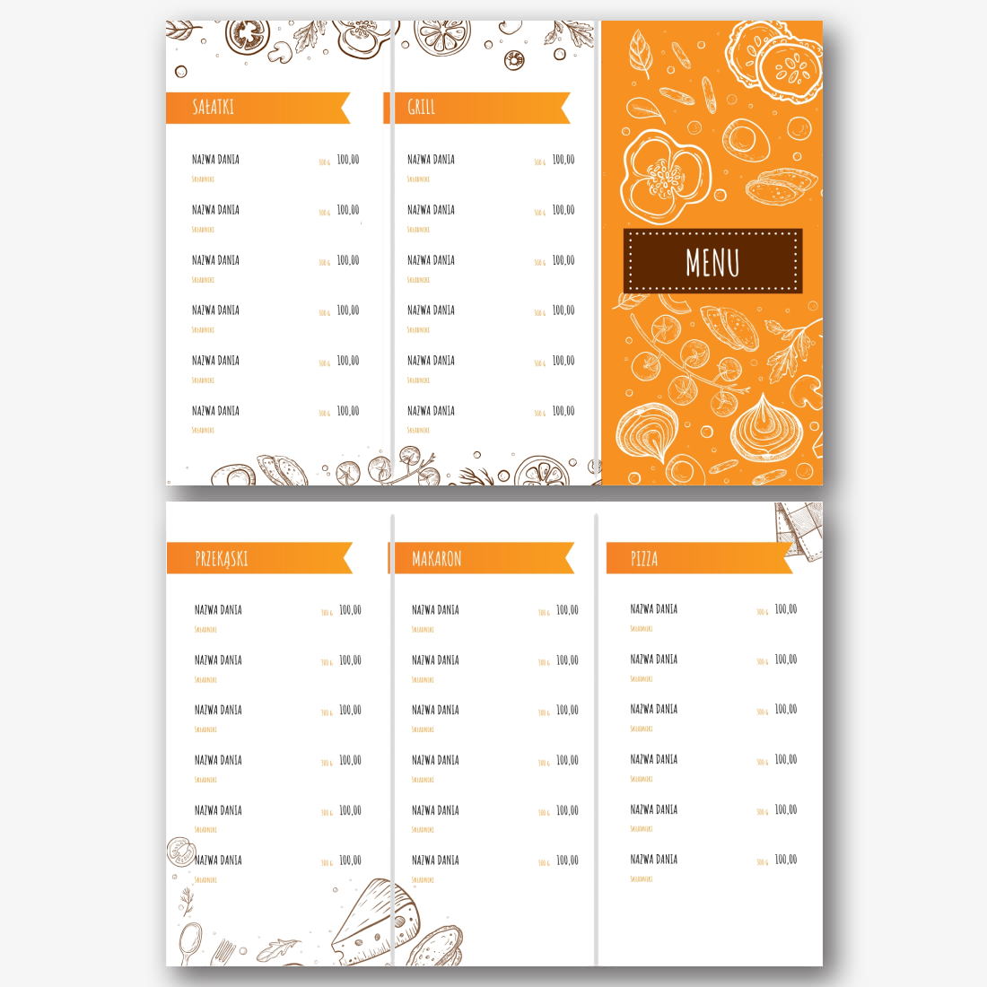 Darmowy szablon menu dla pizzerii, restauracji, Bistro. Utwórz układ DIY w kreatorze menu online.