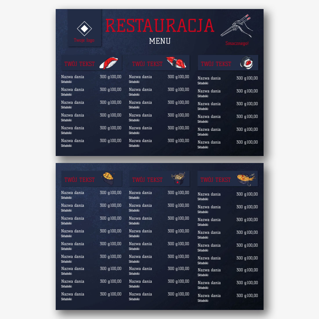 Darmowy szablon menu dla pizzerii, restauracji, Bistro, kręgielni. Utwórz układ DIY w kreatorze menu online.