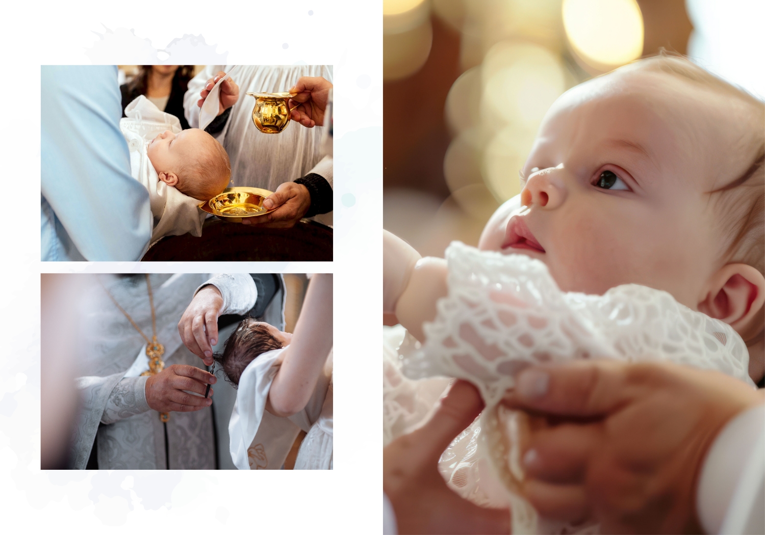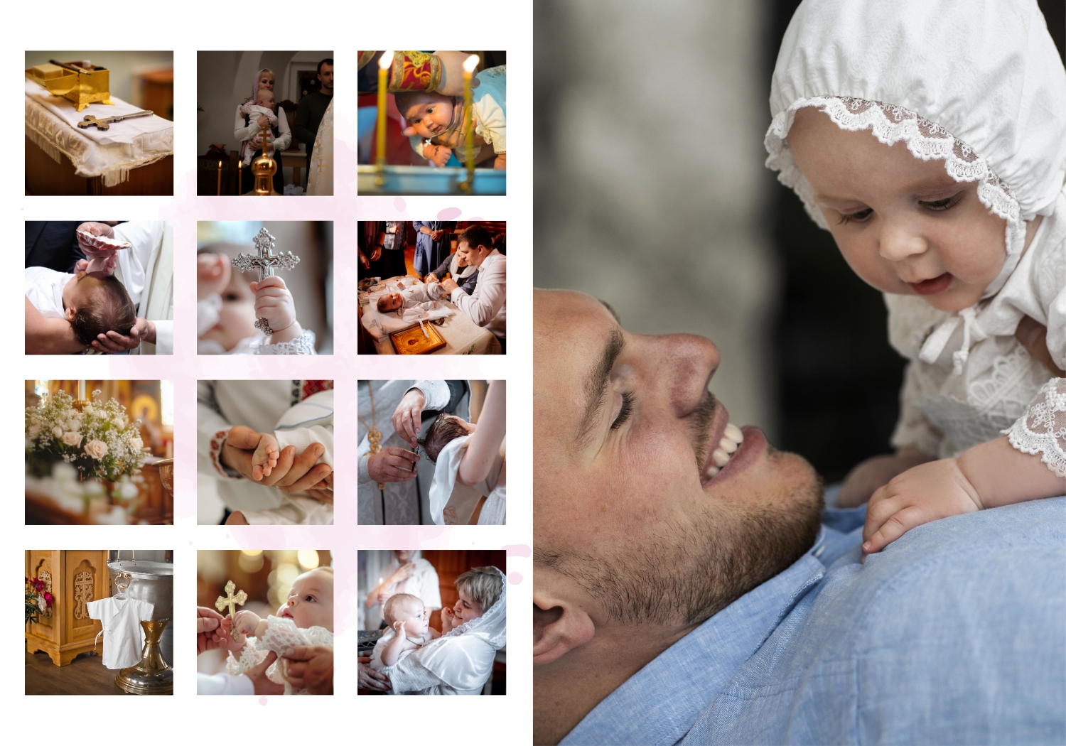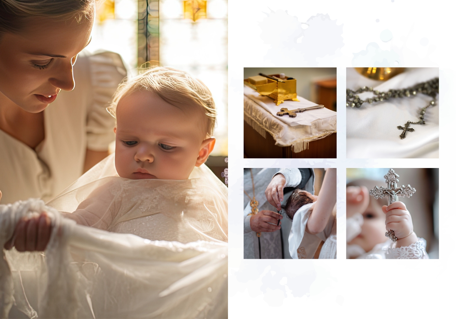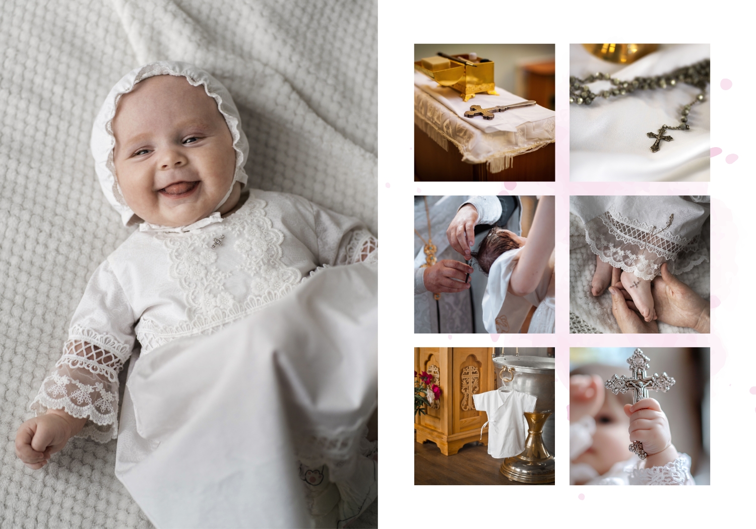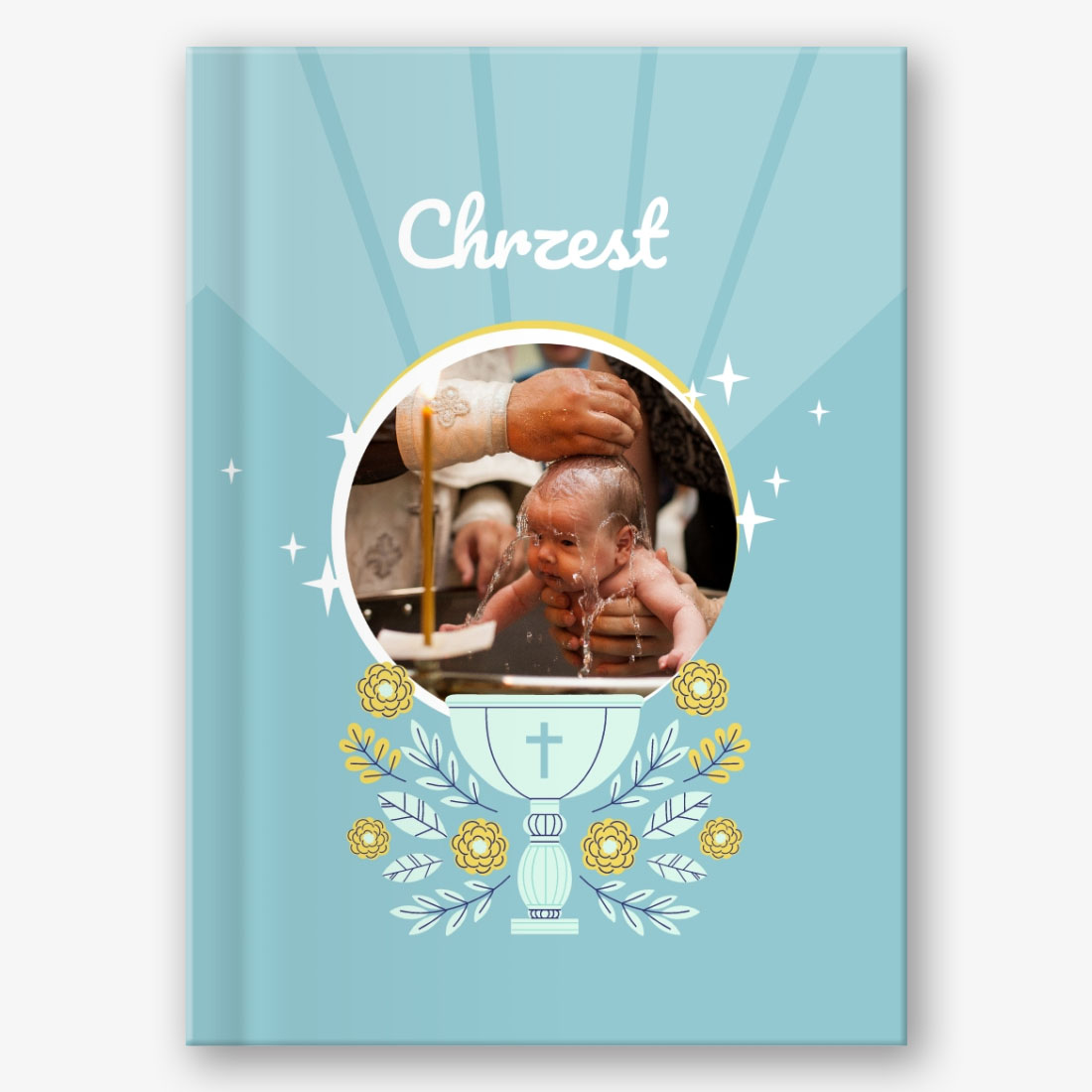 Darmowy szablon fotoksiążki na chrzest dziecka. Utwórz makietę DIY w internetowym kreatorze fotoksiążek.