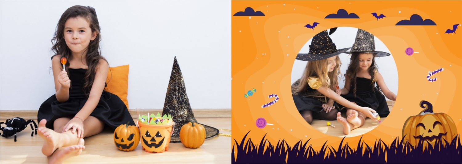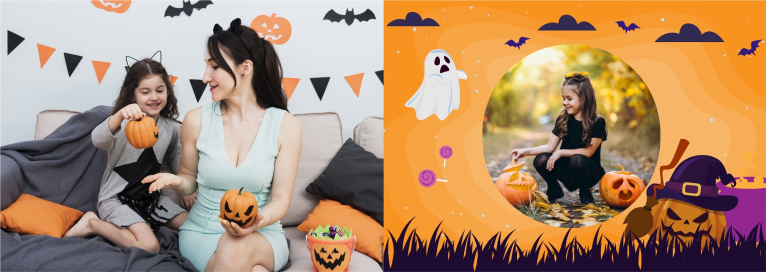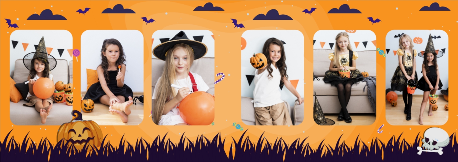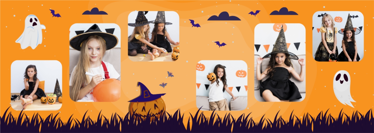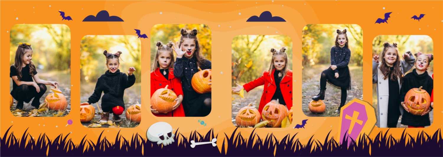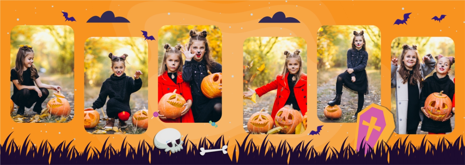 Darmowy szablon fotoksiążki o tematyce Halloween Giant. Utwórz makietę DIY w internetowym kreatorze fotoksiążek.