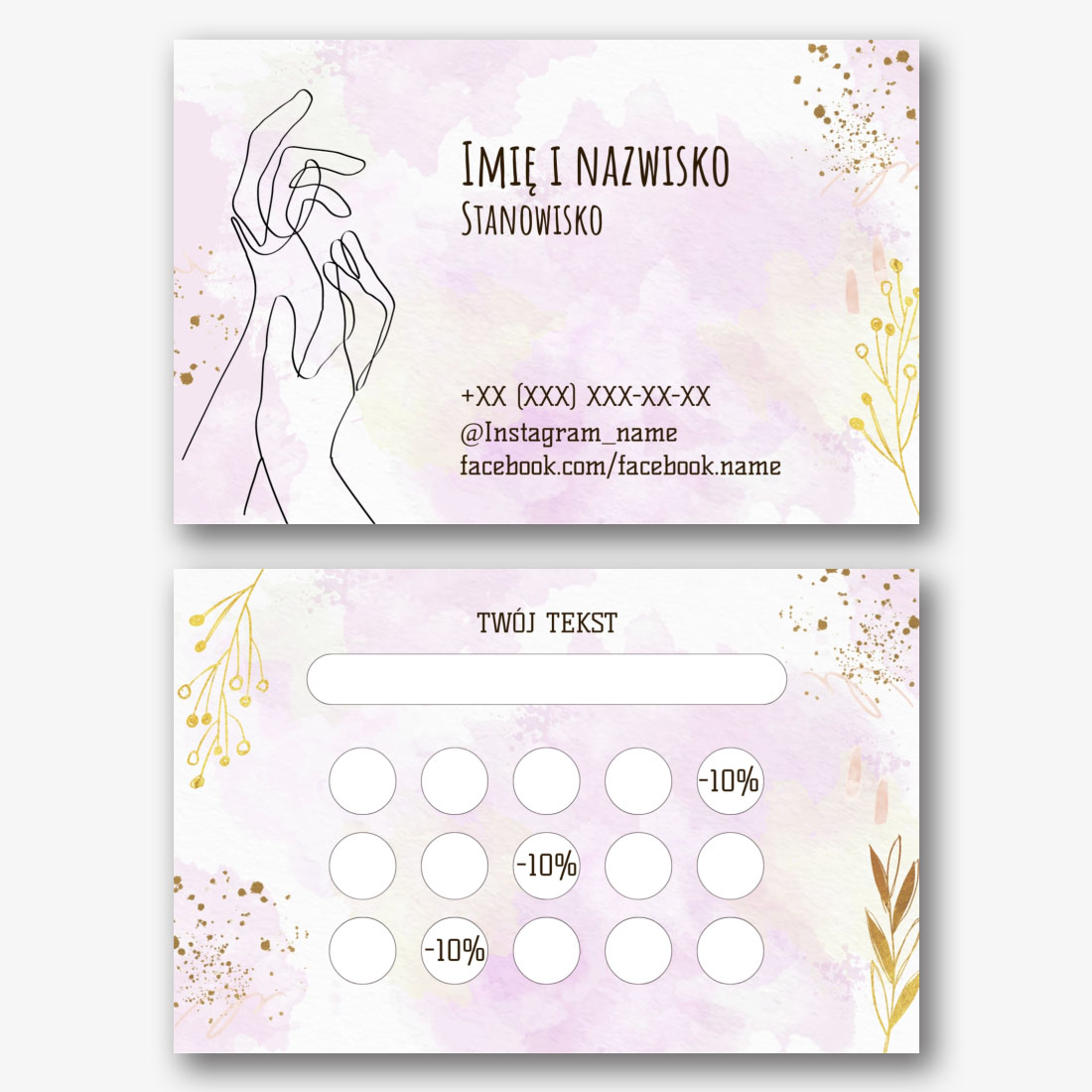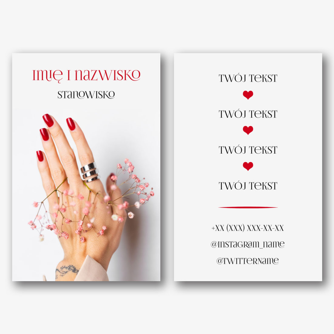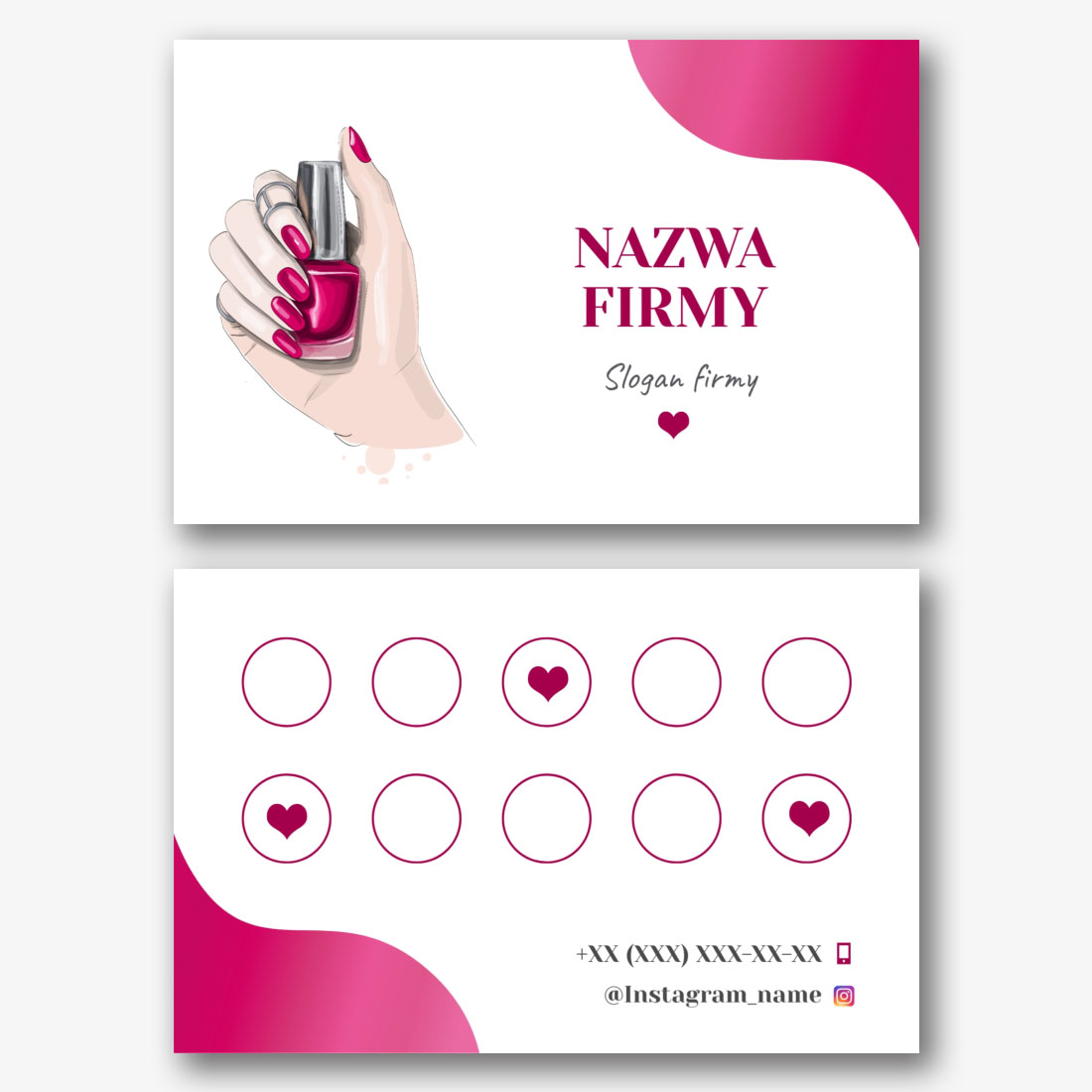 Darmowy szablon nowoczesnej wizytówki Euro manikiurzystki, salonu paznokci, Studia Urody. Utwórz układ wizytówki DIY w kreatorze wizytówek online.