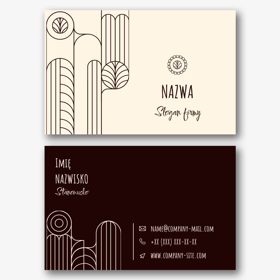 Szablon uniwersalnej wizytówki euro z kolorowym wzorem dla przedsiębiorców, przedstawicieli firm, administratorów. Utwórz układ wizytówki DIY w kreatorze wizytówek online.