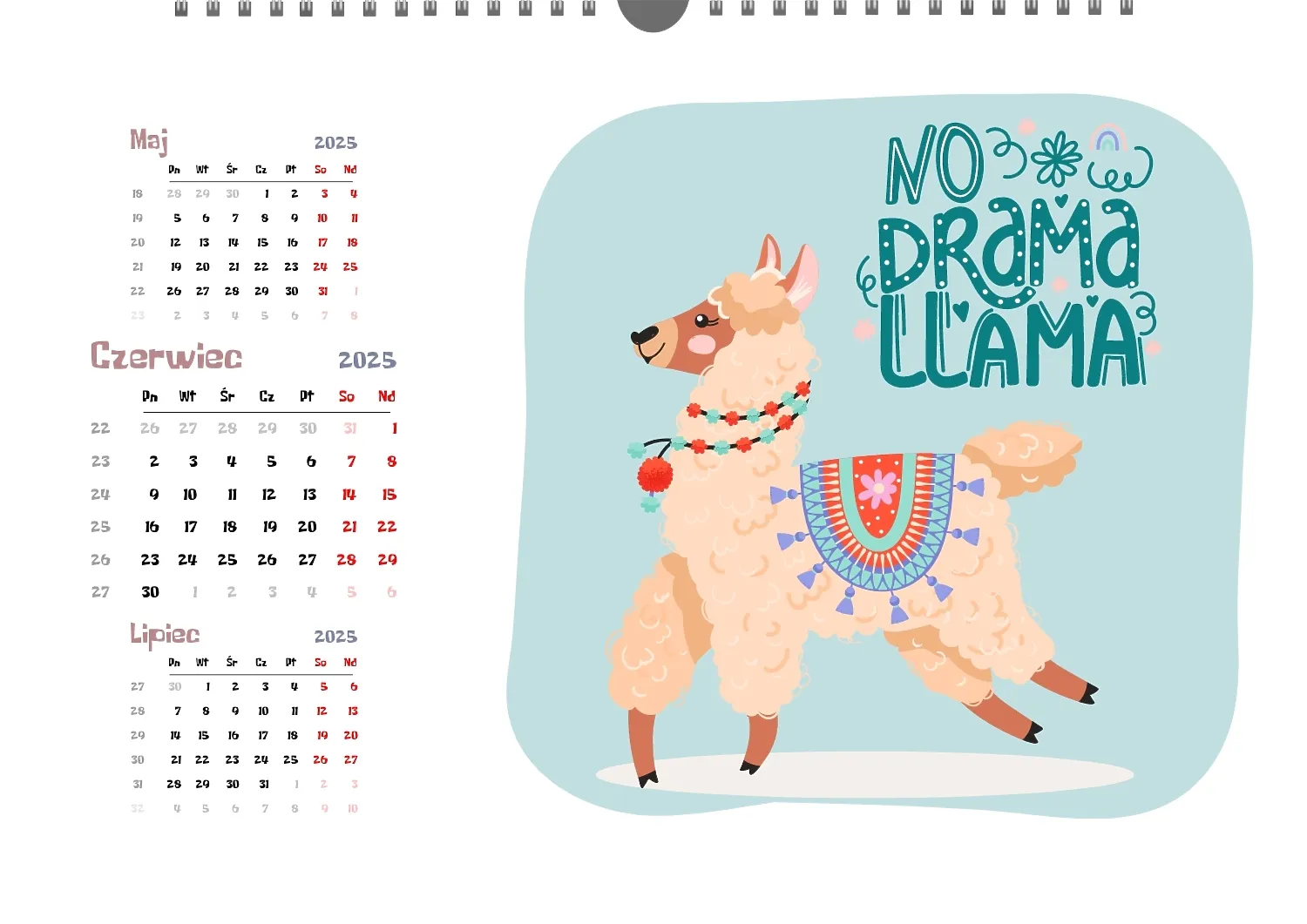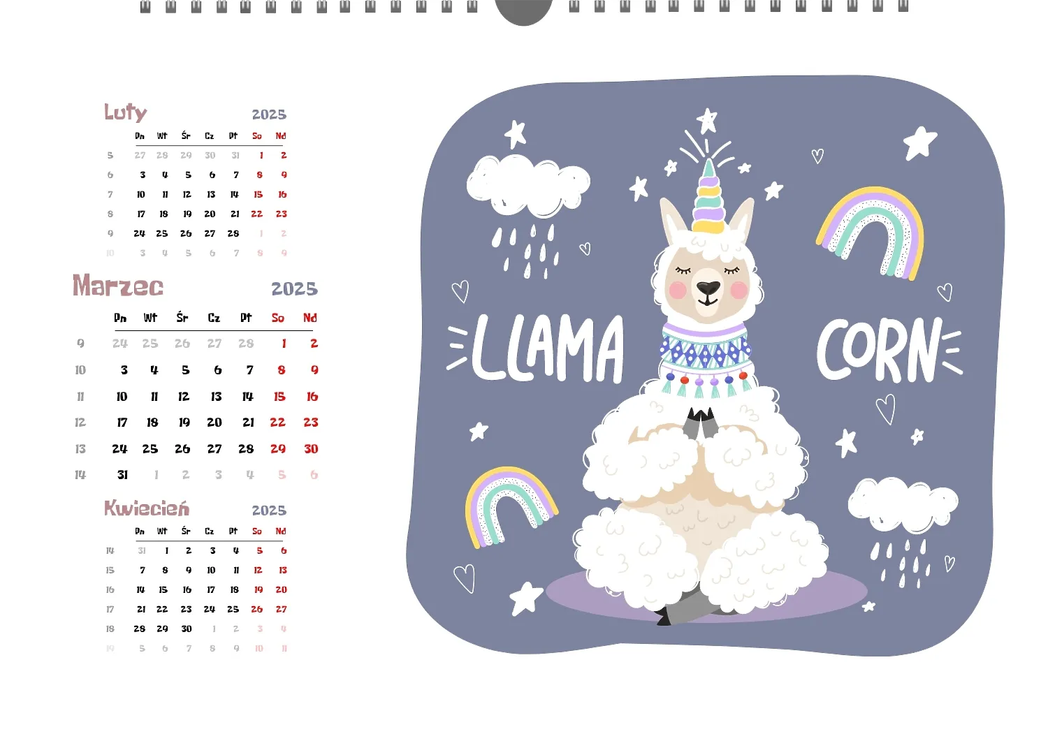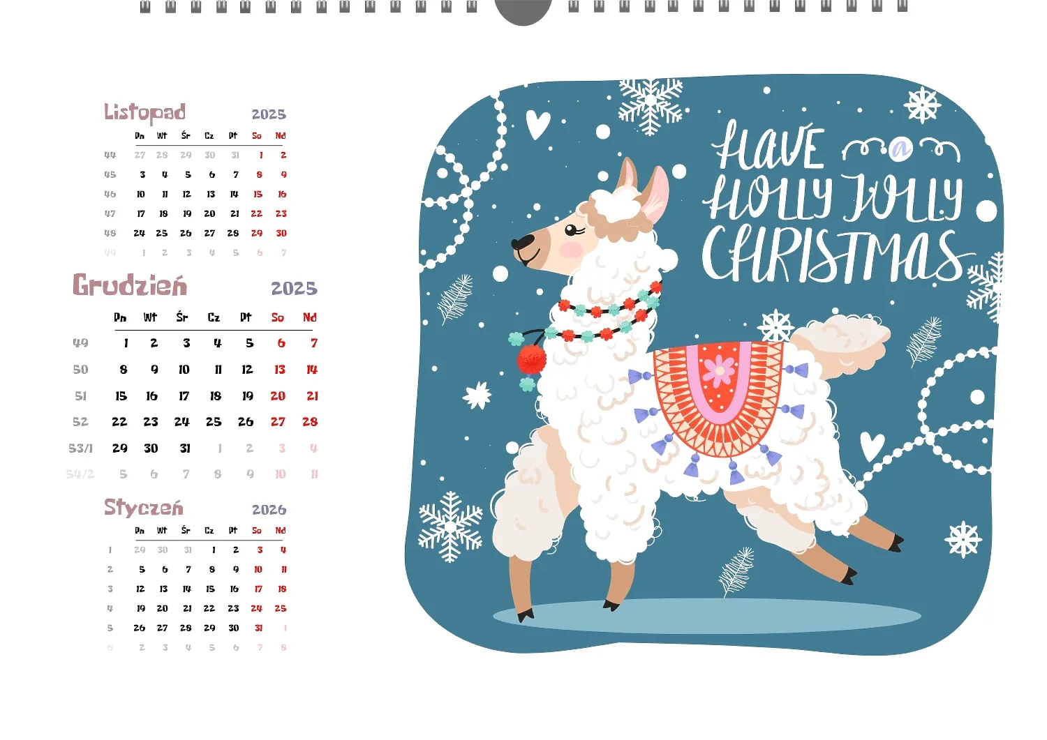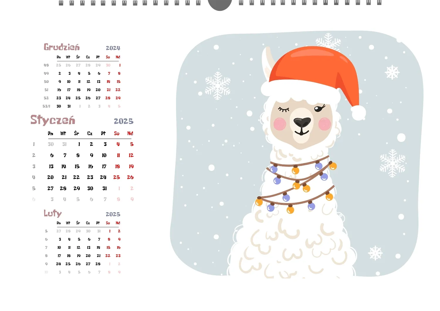 Darmowy szablon kalendarza noworocznego z uroczymi kotami, aby pogratulować znajomym i bliskim. Utwórz układ DIY w kreatorze kalendarzy.