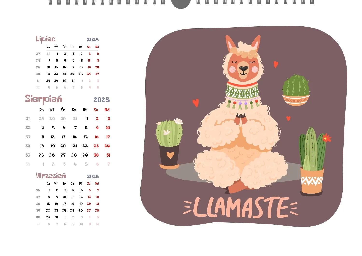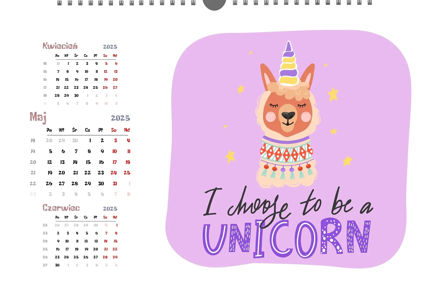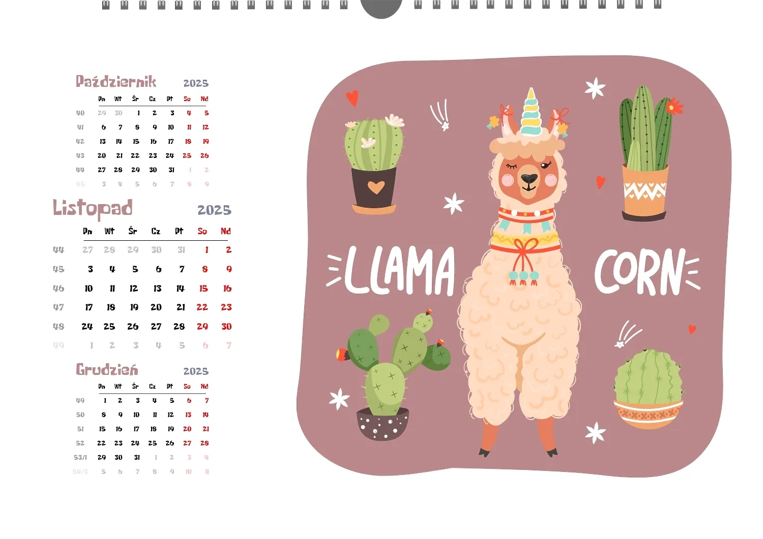 Darmowy szablon kalendarza noworocznego z uroczymi kotami, aby pogratulować znajomym i bliskim. Utwórz układ DIY w kreatorze kalendarzy.
