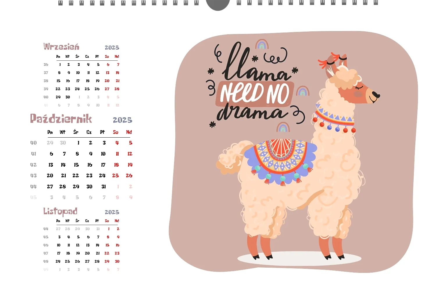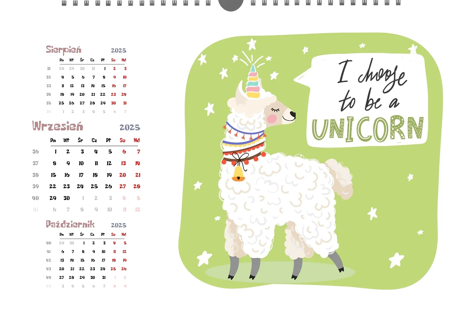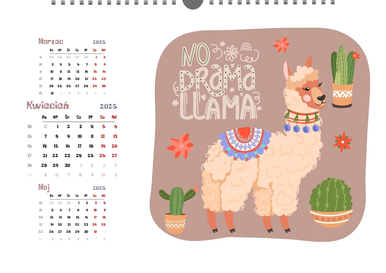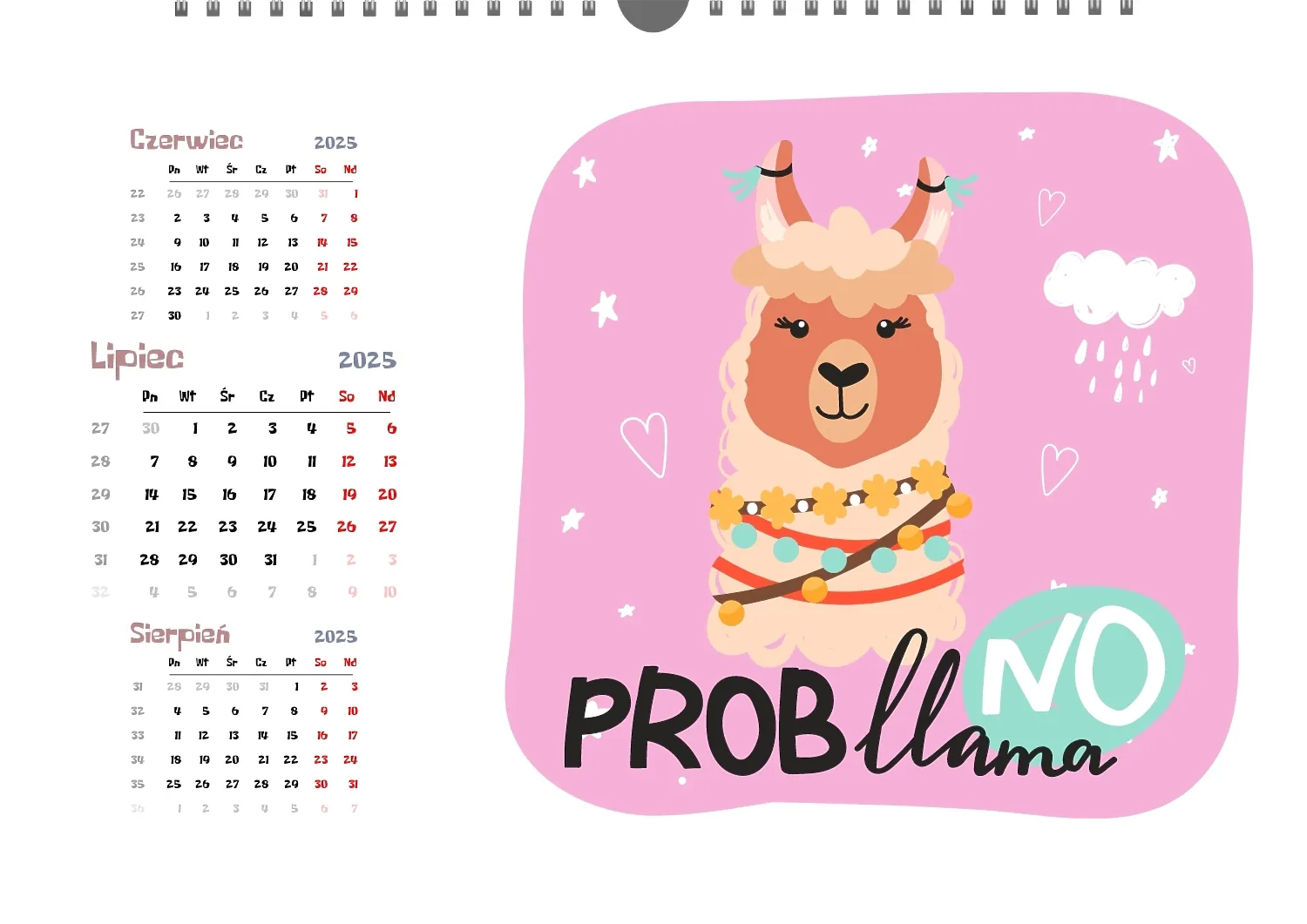 Darmowy szablon kalendarza noworocznego z uroczymi kotami, aby pogratulować znajomym i bliskim. Utwórz układ DIY w kreatorze kalendarzy.