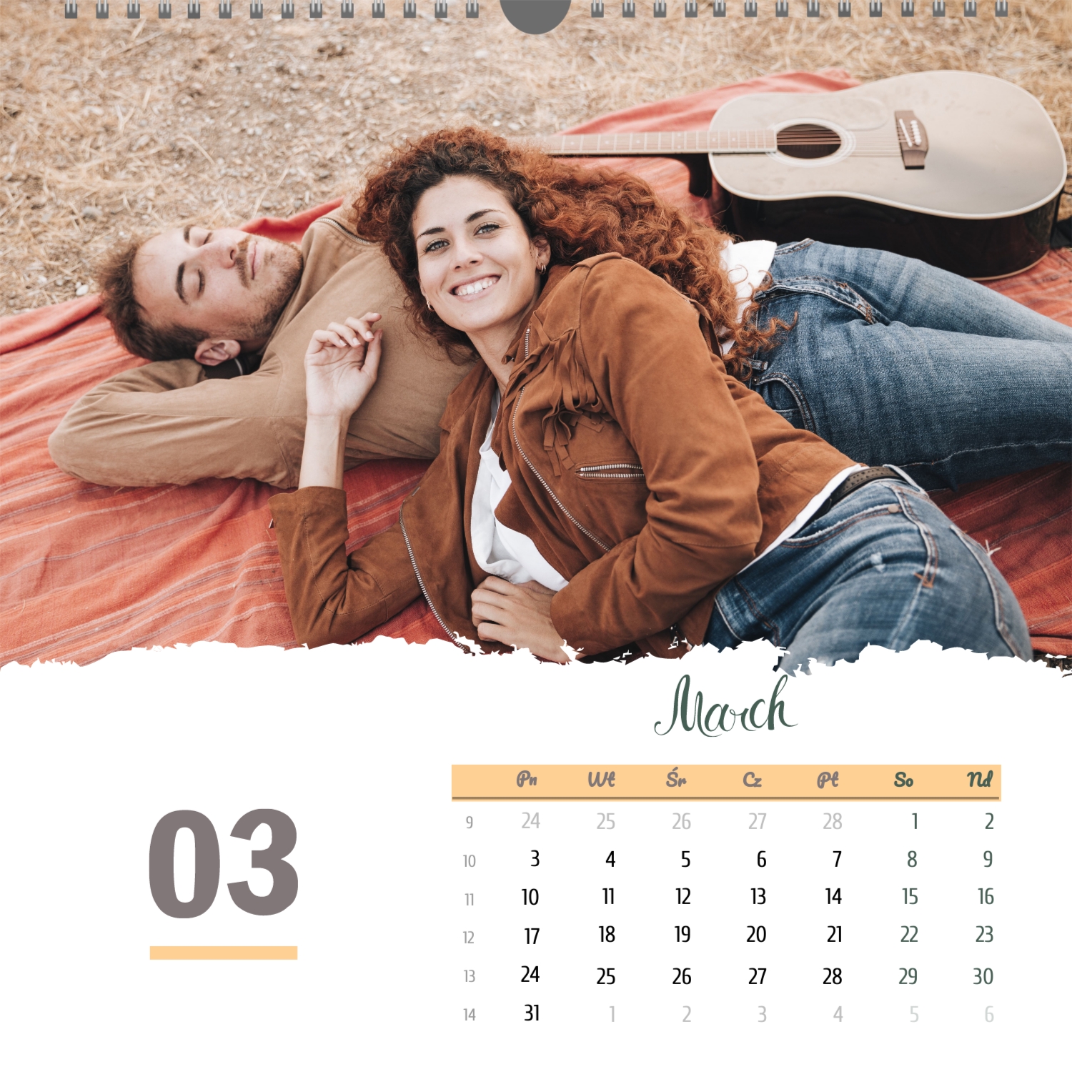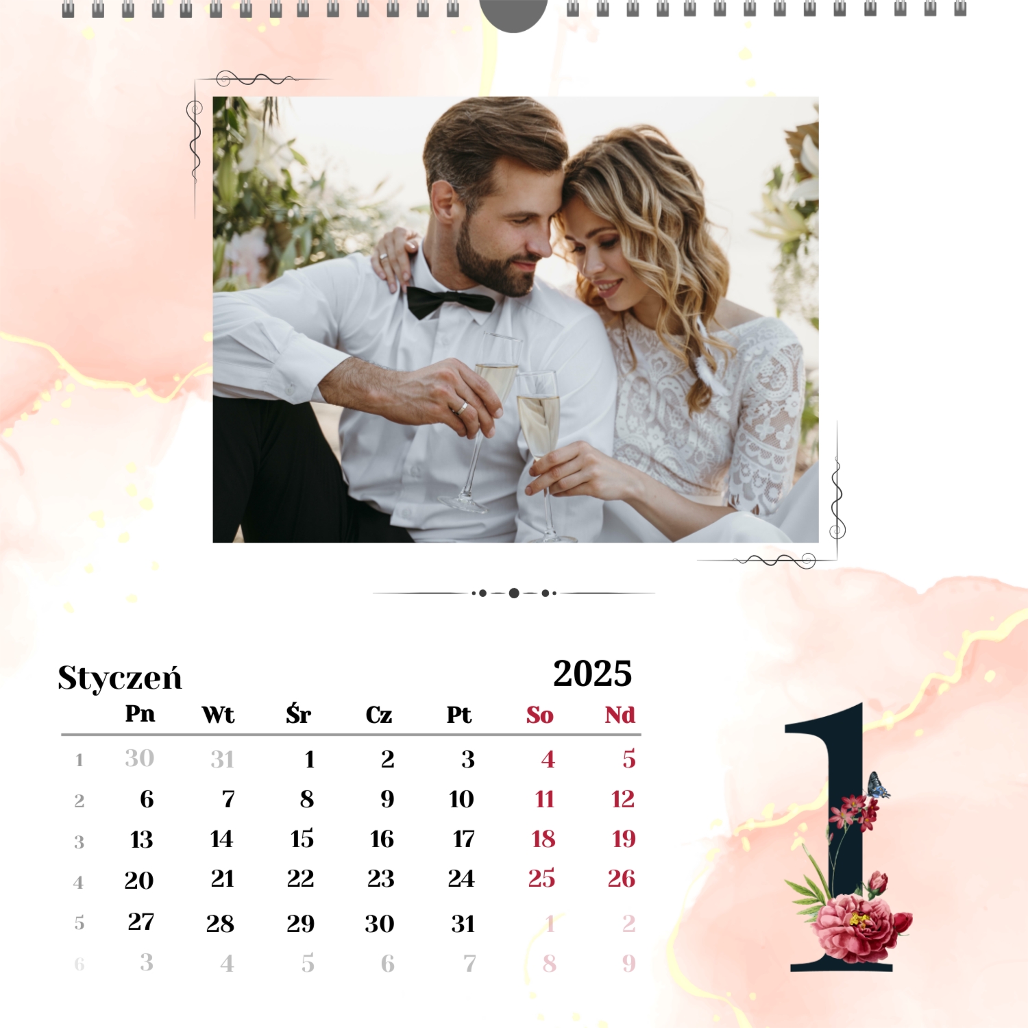 Szablon kalendarza ze zdjęciami ślubnymi
