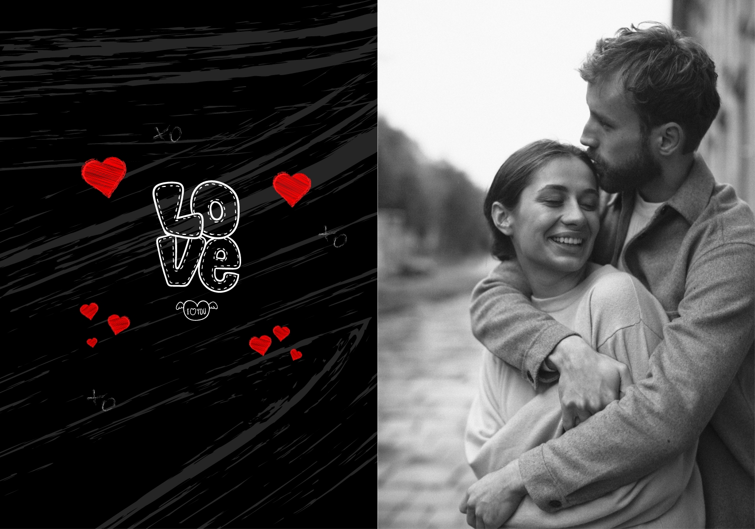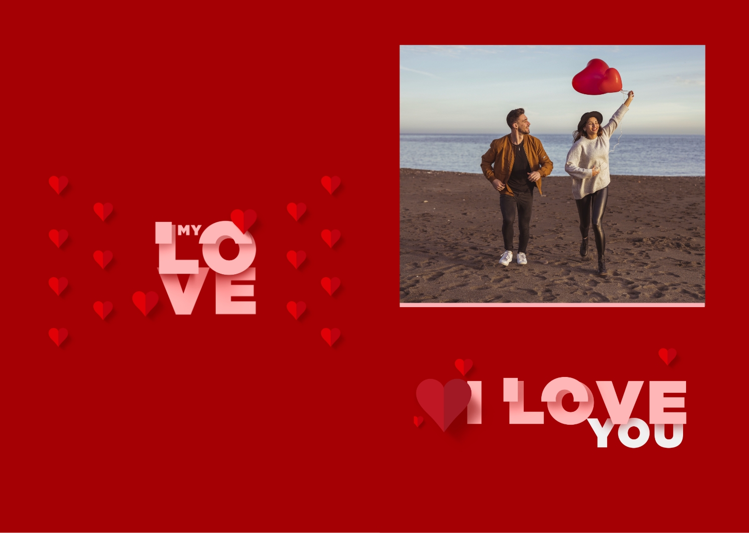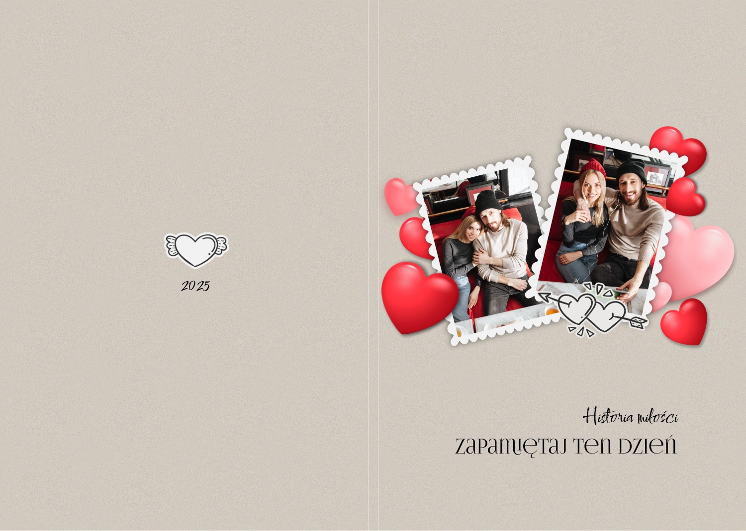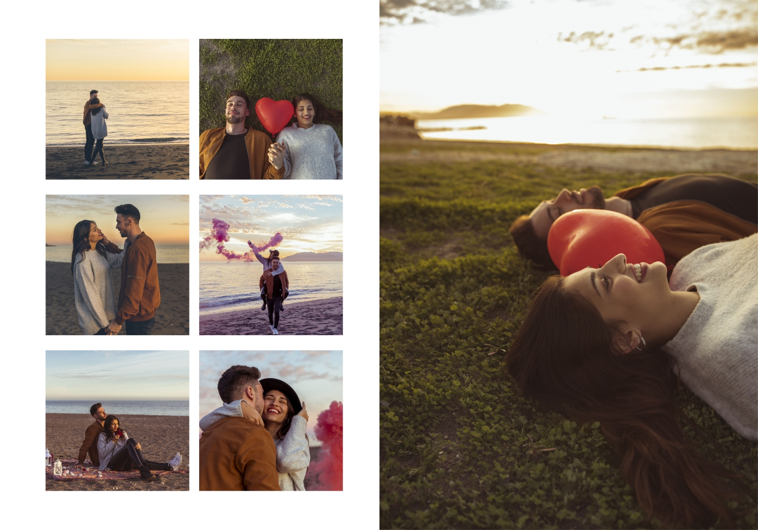 Darmowy szablon fotoksiążki wiosennej love story dla zakochanej pary, nowożeńców. Utwórz makietę DIY w internetowym kreatorze fotoksiążek.