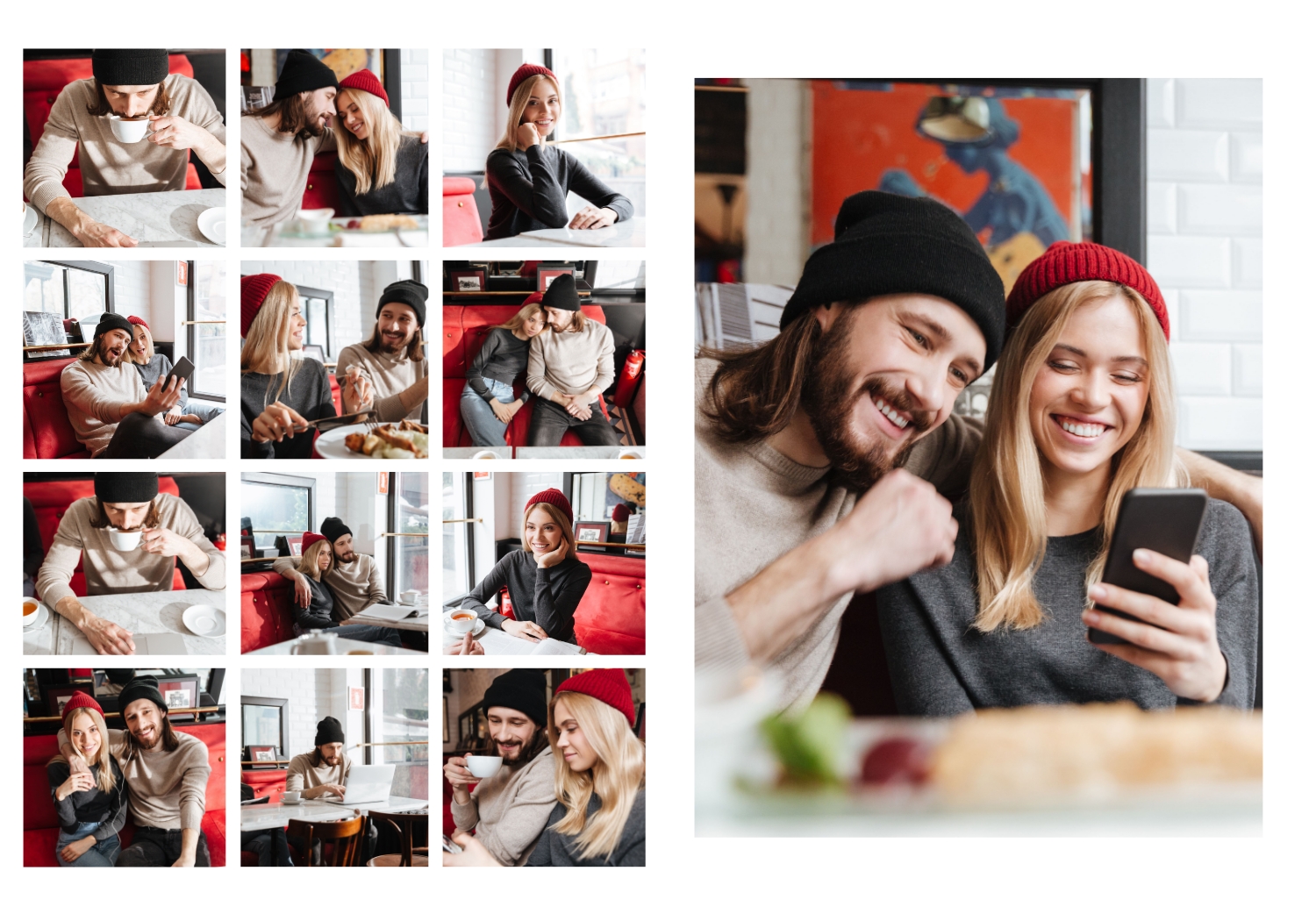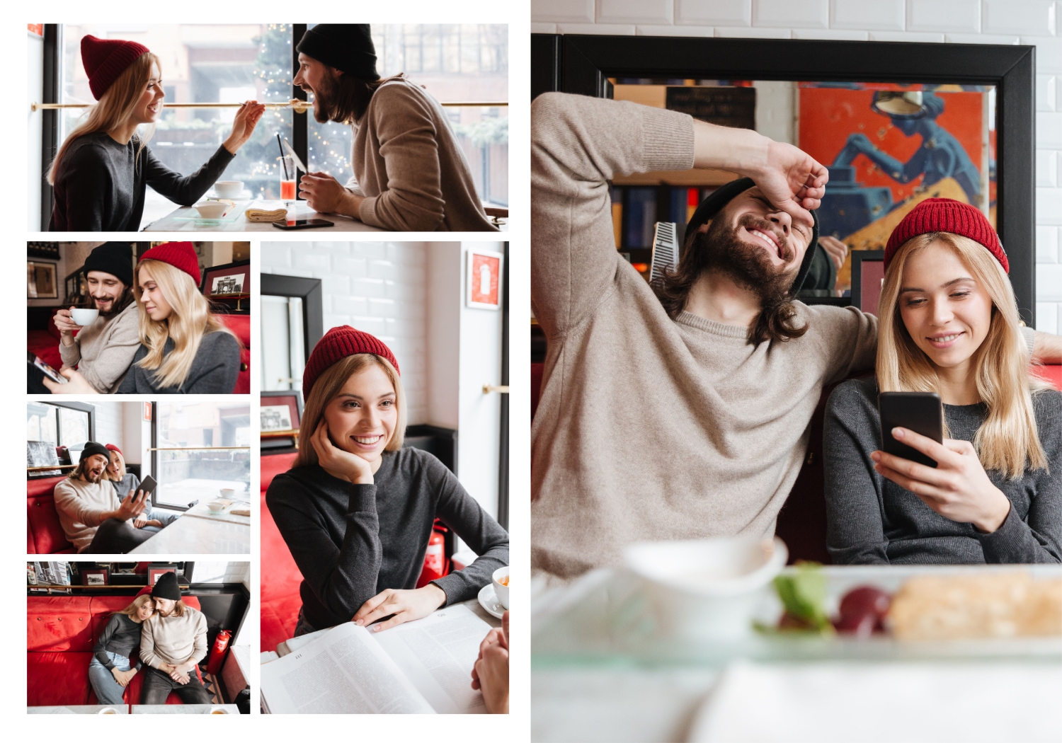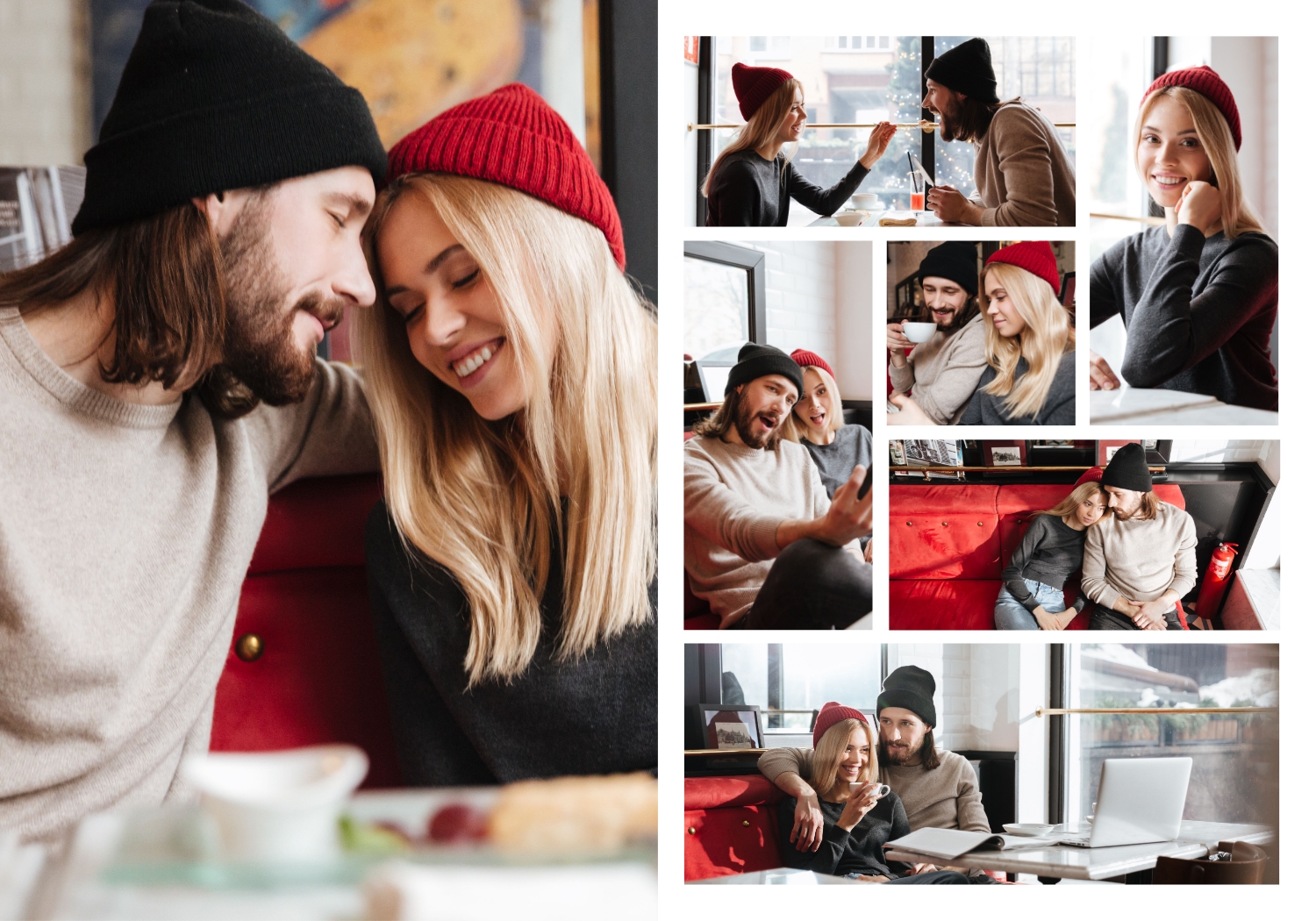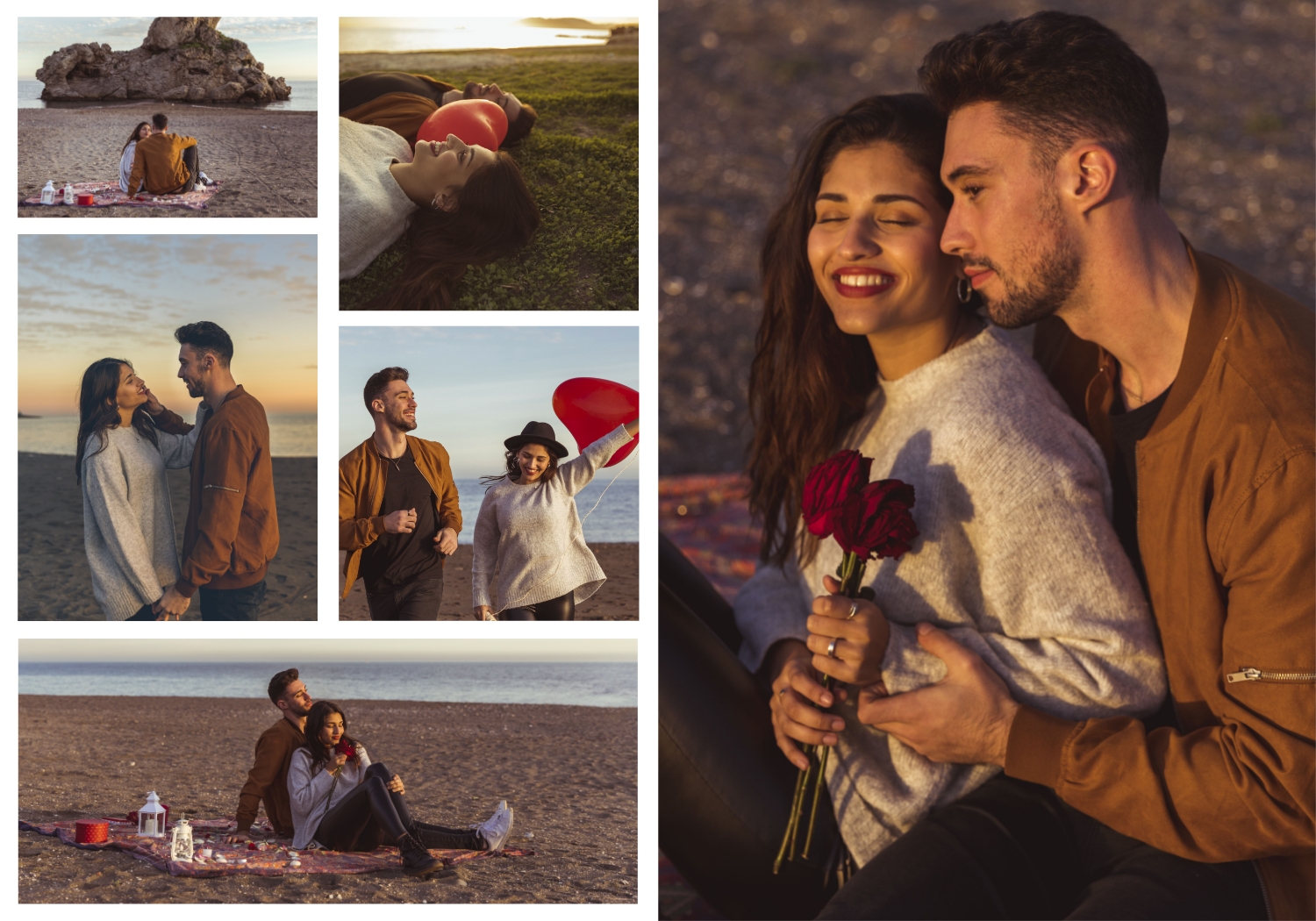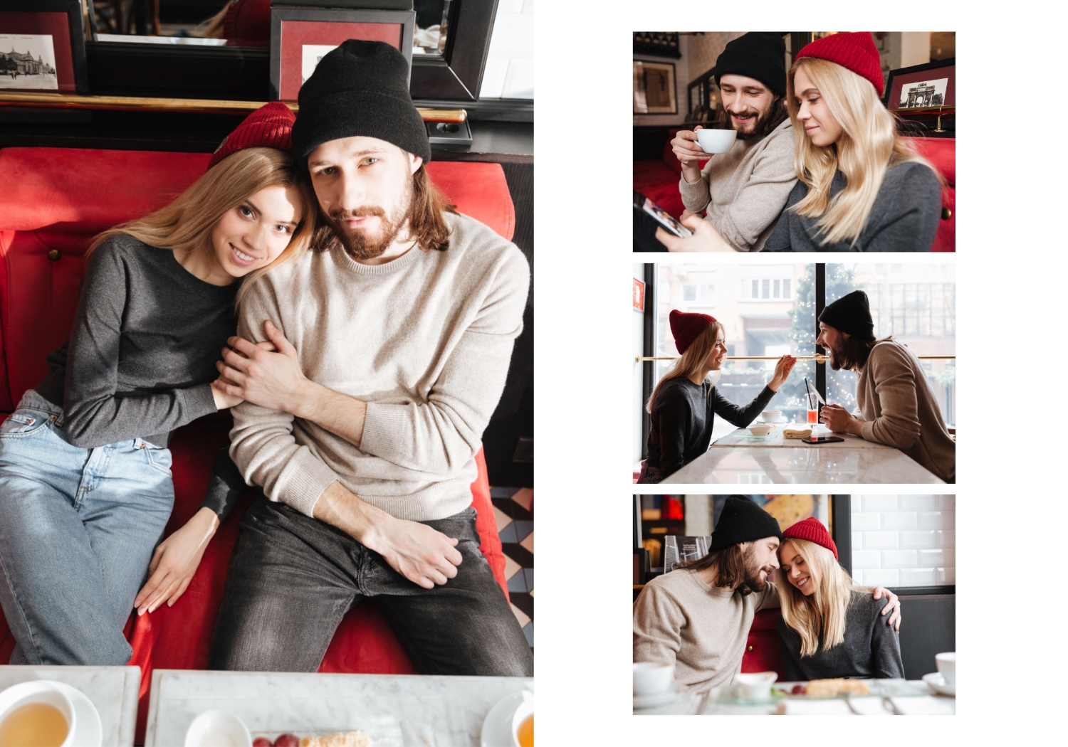 Darmowy szablon fotoksiążki wiosennej love story dla zakochanej pary, nowożeńców. Utwórz makietę DIY w internetowym kreatorze fotoksiążek.