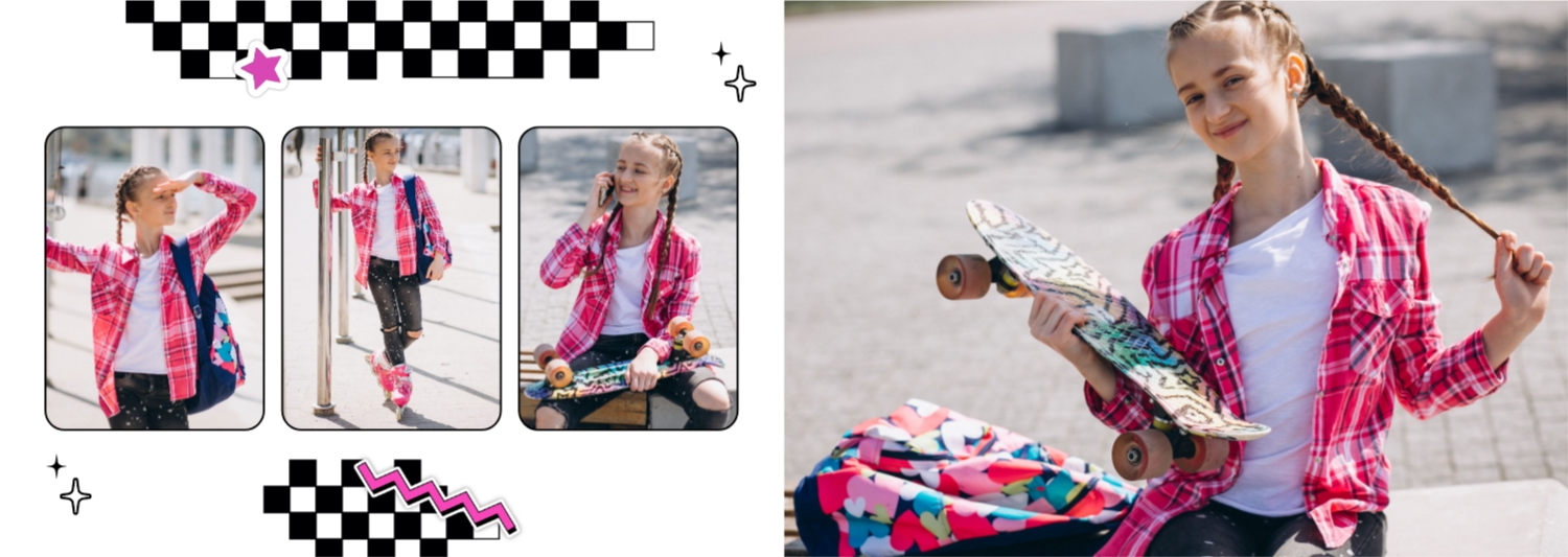 Szablon fotoksiążki najlepsze momenty wędrówki po górach zapewnia niesamowitą okazję do zaprojektowania swojej kolekcji fotograficznej z niezapomnianej wędrówki po górach, biwakowania, a nawet przygody dla dzieci. Każda strona szablonu najlepsze momenty wędrówki w górach odtwarza jeden ze znaczących etapów podróży. Począwszy od przygotowania i pakowania, aż po ostatni moment, zdjęcia świateł obozowych, śniadań na łonie natury, krajobrazów gór i uśmiechów uczestników dadzą Ci możliwość ponownego powrotu do tych chwil. Kreator online umożliwia przesyłanie zdjęć, edycję tekstów i dodawanie osobistych adnotacji. Możesz uporządkować obrazy, aby podkreślić fabułę swojej podróży. Poza tym możesz wybrać różne lokalizacje obrazów, czcionki i inne elementy, aby stworzyć naprawdę wyjątkowy album ze zdjęciami. Korzystając z szablonu najlepsze momenty wędrówki w górach, będziesz w stanie zachować wspomnienia z naturalnych przygód w harmonijny i kreatywny sposób. Stwórz poziomy album ze zdjęciami w twardej oprawie DIY za pomocą kreatora online i podziel się tymi atrakcjami z przyjaciółmi i bliskimi.