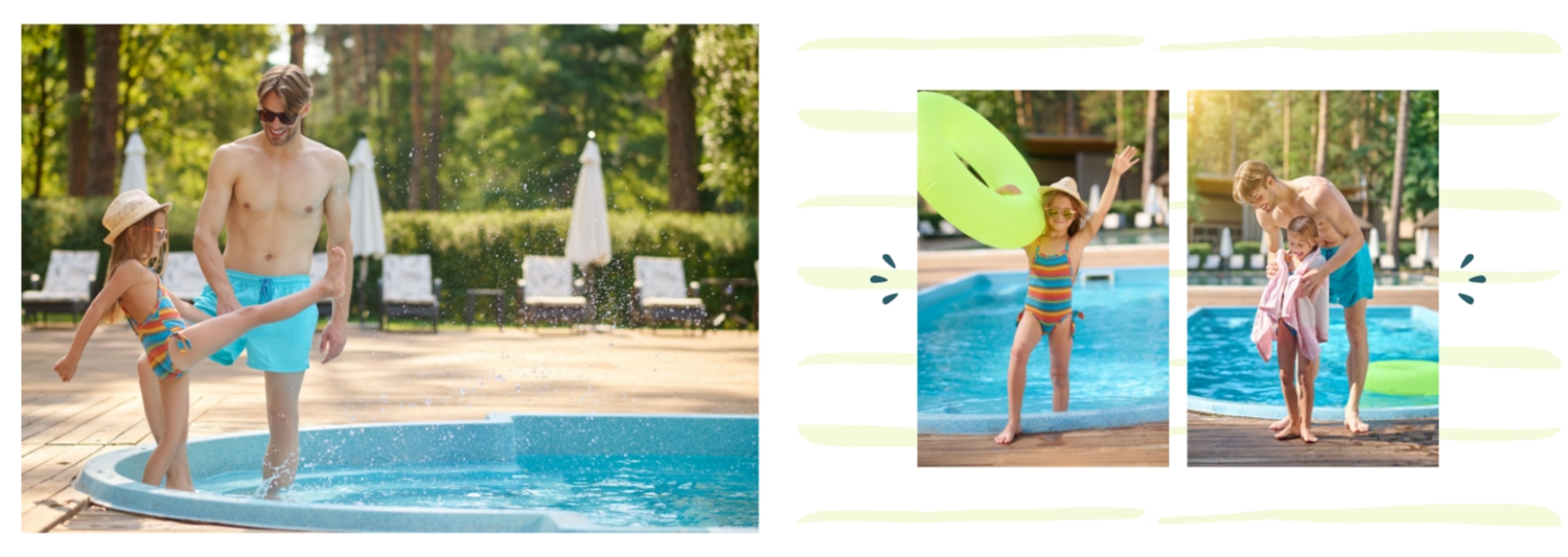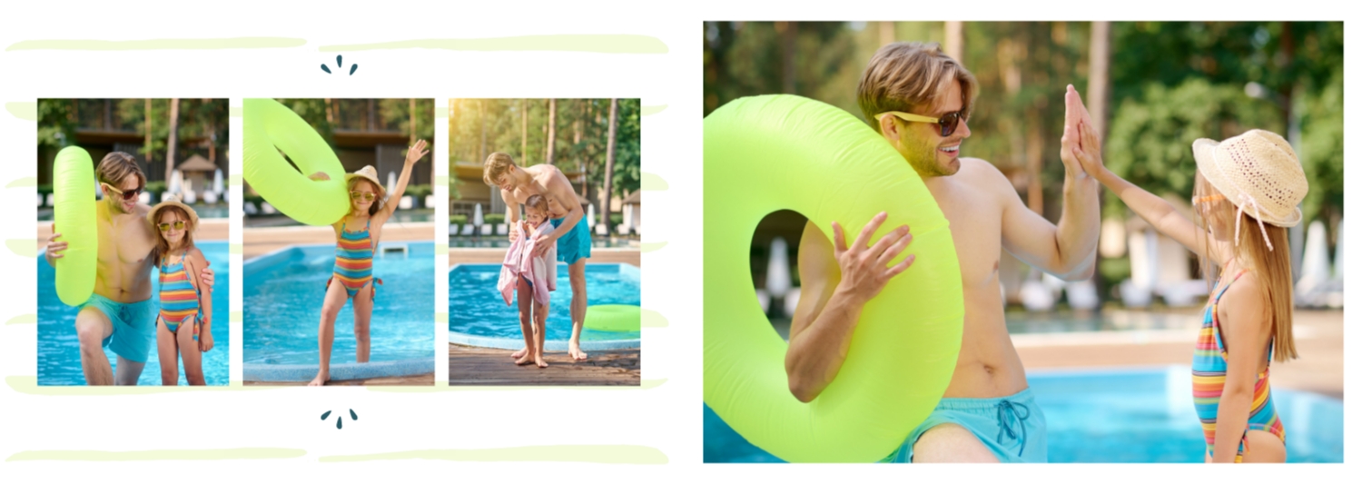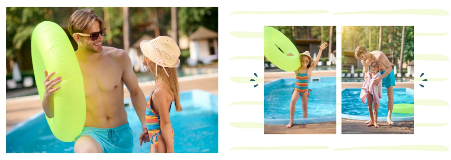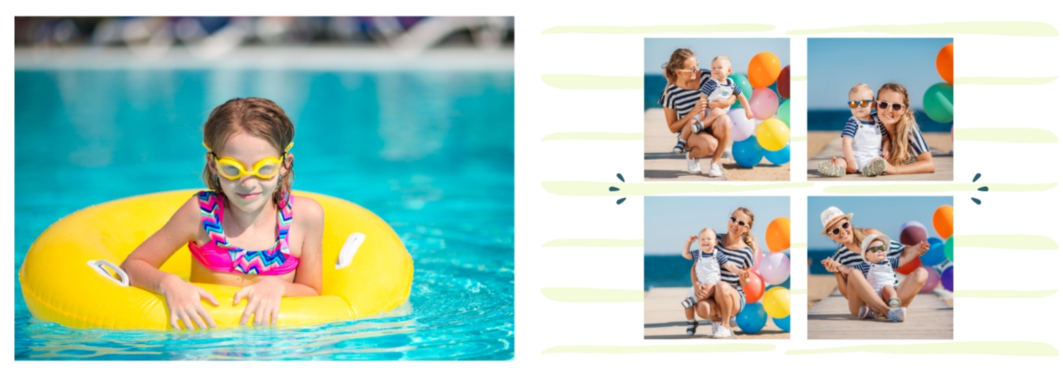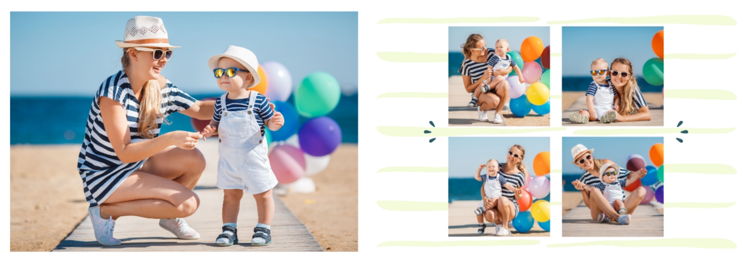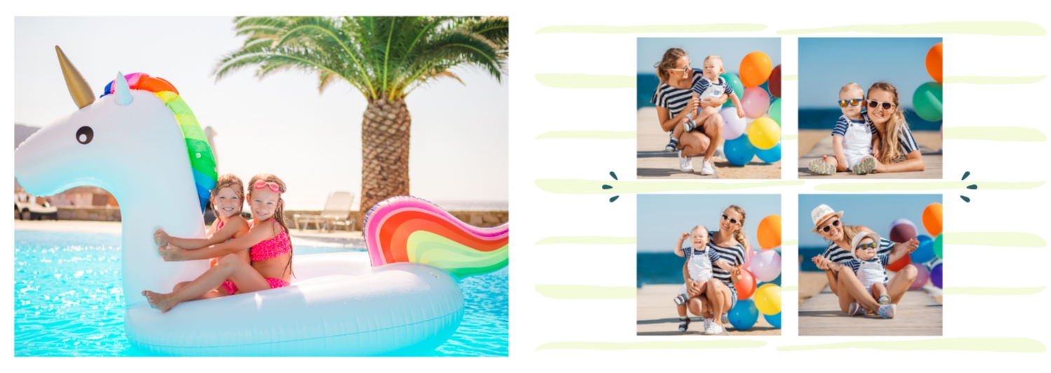 Szablon fotoksiążki pora na przygodę to doskonały wybór do stworzenia unikalnego albumu fotograficznego DIY w naszym kreatorze online. Ten szablon jest idealny dla tych, którzy chcą zachować jasne chwile swoich przygód i wspomnień w jednym stylowym i niepowtarzalnym albumie. Możesz umieszczać zdjęcia i teksty na stronach szablonu za pomocą intuicyjnego kreatora online. Wybierz odpowiedni układ dla każdej strony, edytuj go, zmieniaj układ elementów, zmieniaj rozmiary, dodawaj filtry i efekty - wszystko to pozwoli Ci stworzyć atrakcyjny wizualnie projekt. Korzystanie z szablonu poziomej książki fotograficznej Adventure Time w twardej oprawie w kreatorze online pozwoli Ci stworzyć unikalny album ze zdjęciami DIY, który odzwierciedla twoją indywidualną wizję twoich wspomnień i przygód. To świetna okazja, aby zachować jasne chwile swojego życia i podzielić się nimi z przyjaciółmi i bliskimi.