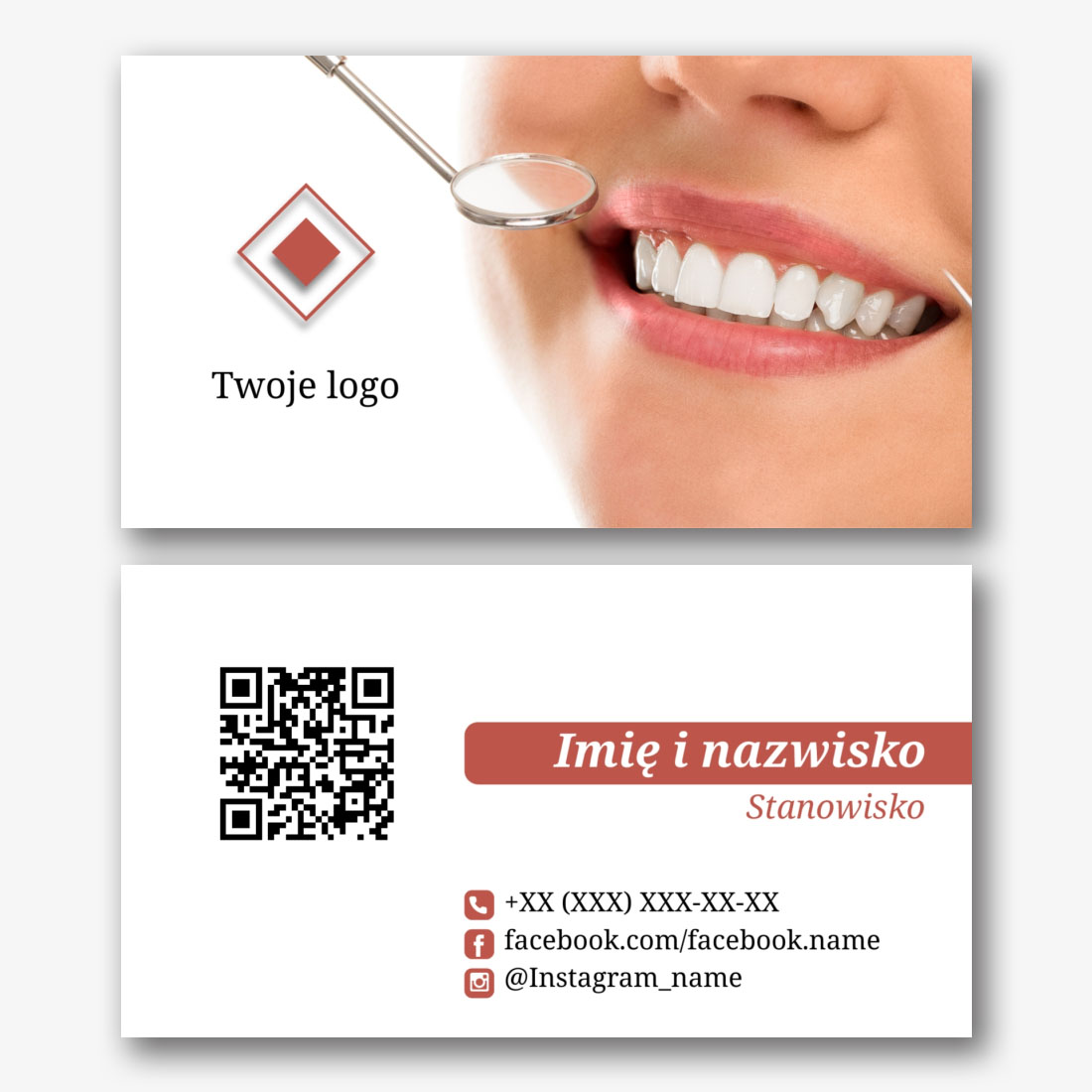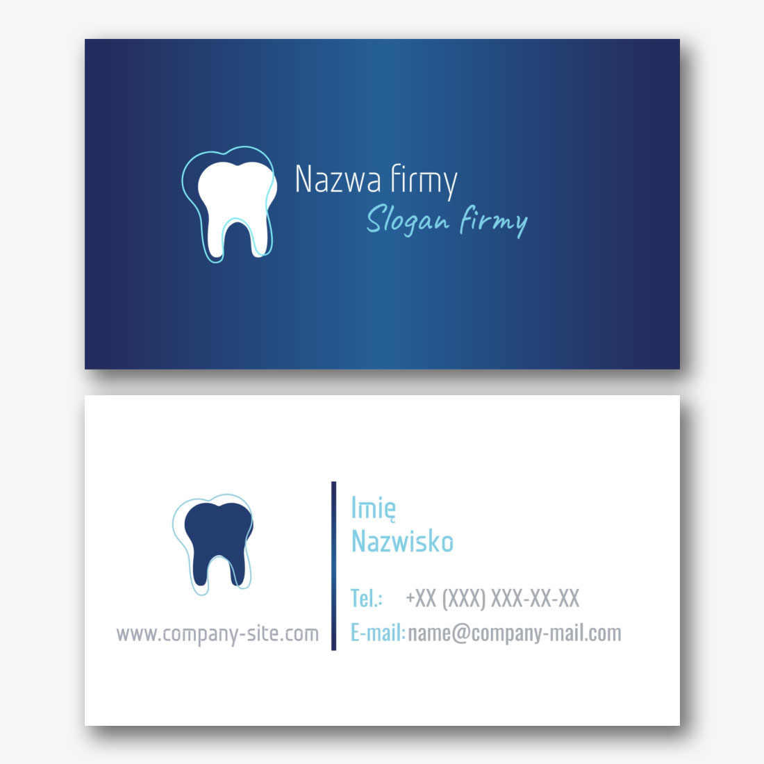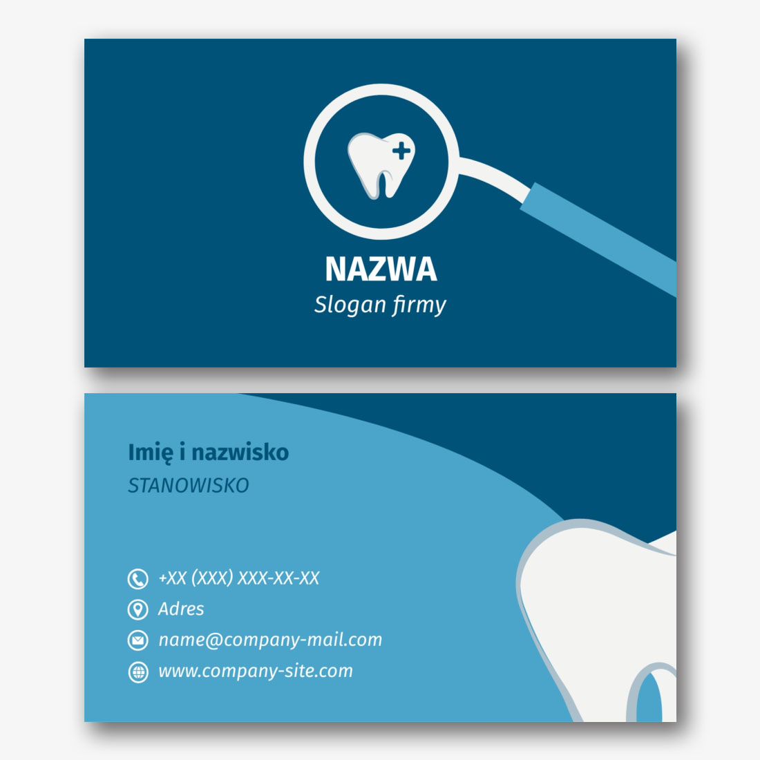 Darmowy szablon klasycznej wizytówki dla dentysty, ortodonty to surowy, nowoczesny design, wykorzystujący biało-turkusową paletę kolorów. Może to być świetny wybór dla tych, którzy chcą zrobić dobre wrażenie na swoich pacjentach. Niebieskawo-zielone elementy na białym tle tworzą uczucie świeżości i czystości, co może odzwierciedlać profesjonalizm i dbałość o zdrowie pacjentów. Ogólnie rzecz biorąc, ten szablon wizytówki jest atrakcyjny i pouczający sposób, aby zaprezentować swoją klinikę lub usługi dentystyczne i przyciągnąć nowych pacjentów.