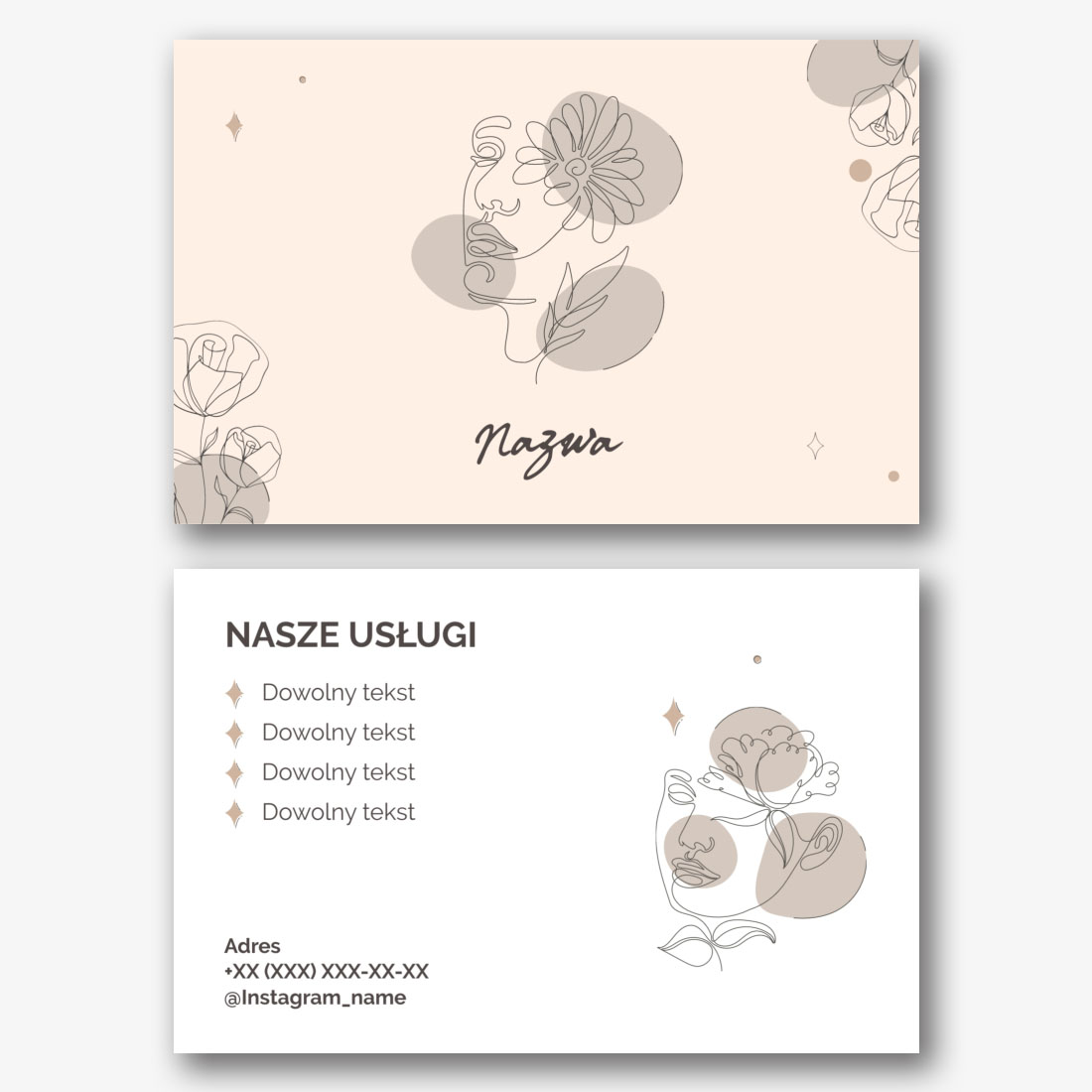 Szablon Eurowizji dla studia urody, mistrza urody i kosmetyczki wyróżnia się zwięzłością, delikatnością i ciekawym designem. Jest idealny dla profesjonalistów kosmetycznych, którzy chcą się wyróżnić i stworzyć niezapomniany wygląd. Kolorystyka tego szablonu koncentruje się na delikatnych odcieniach, które tworzą atmosferę relaksu i elegancji, łącząc się z obrazami kobiecości i piękna. Projekt wizytówki jest zwięzły i koncentruje się na Kluczowych informacjach. Górna część wizytówki może zawierać logo lub nazwę studia, a dolna część zawiera dane kontaktowe i informacje o oferowanych usługach. Pomaga stworzyć zrozumiałą strukturę i ułatwia postrzeganie informacji. Korzystając z naszego kreatora online, możesz łatwo dostosować ten szablon wizytówki do swoich potrzeb. Prześlij swoje logo, Dodaj swoje dane kontaktowe, wybierz odpowiednie kolory i czcionki. W ten sposób stworzysz wyjątkową wizytówkę euro, która odzwierciedla twój profesjonalizm i styl Twojego studia urody.