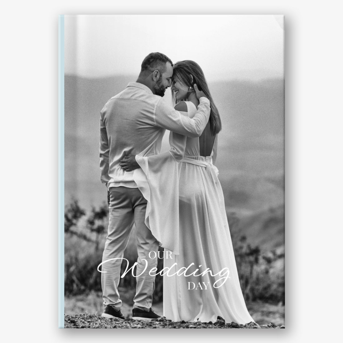 Darmowy szablon fotoksiążki ślubnej na niezapomniane chwile malachitowy portret rocznicowy. Utwórz makietę DIY w internetowym kreatorze fotoksiążek.