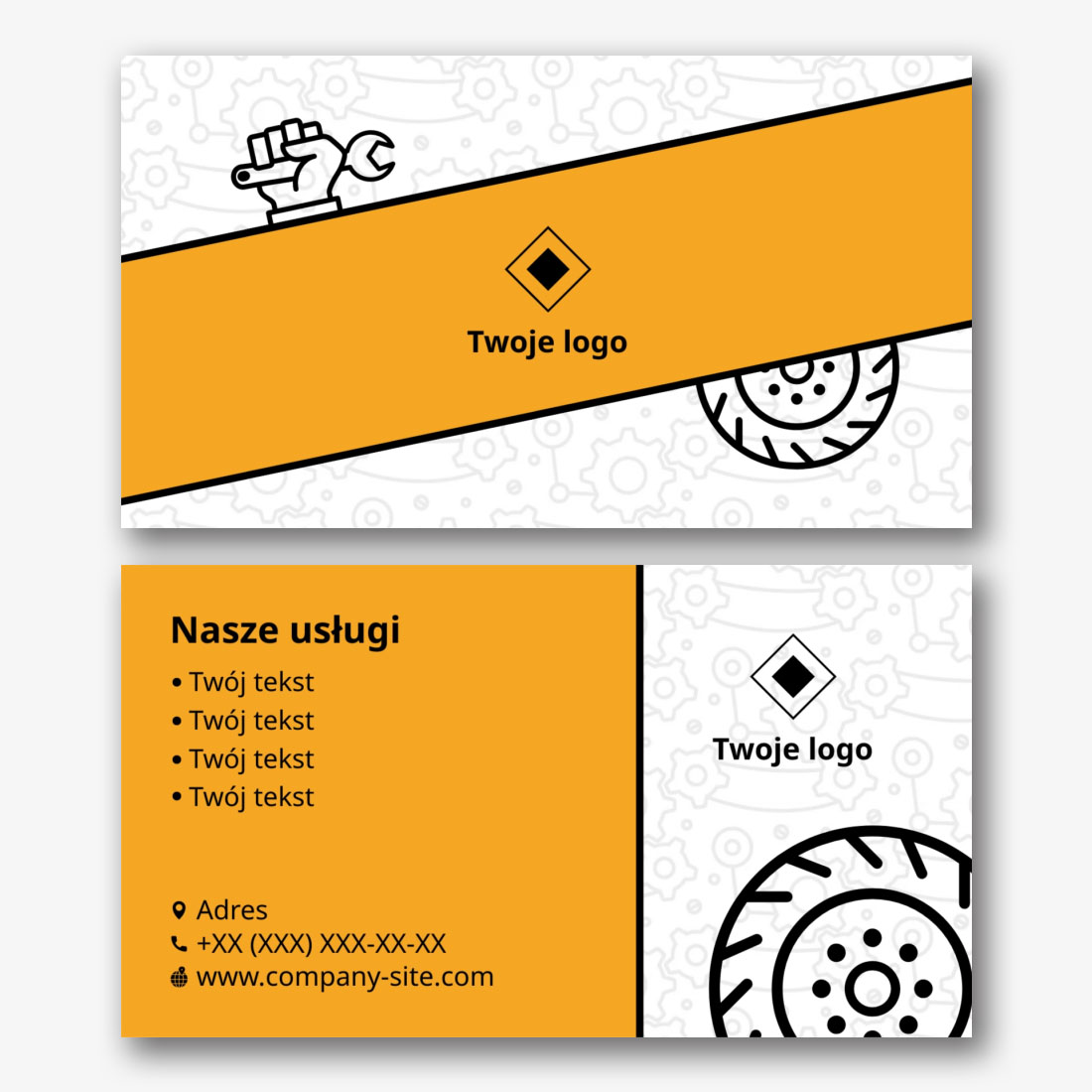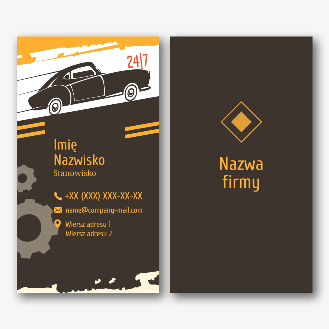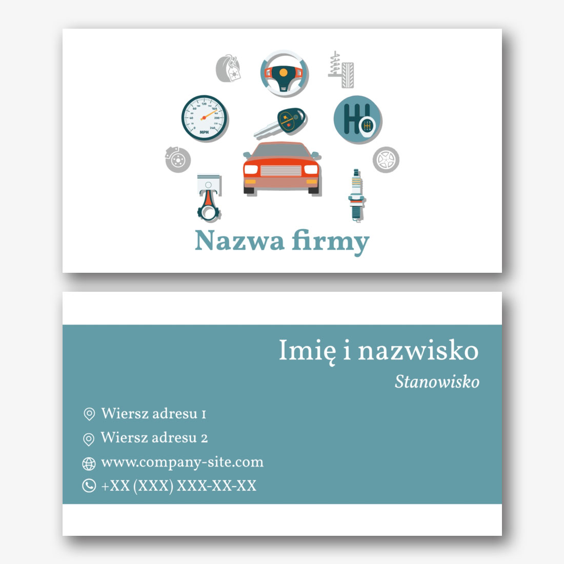 Darmowy szablon wizytówki dla sklepu samochodowego, STACJI OBSŁUGI, kierownika sklepu samochodowego. Utwórz układ DIY w kreatorze wizytówek.