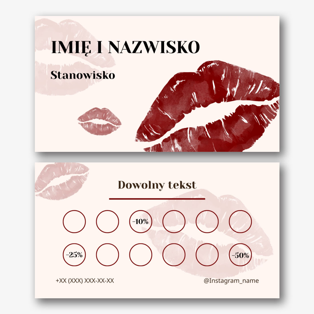 Darmowy szablon wizytówki dla wizażystki, salonu kosmetycznego. Utwórz układ wizytówki DIY w kreatorze wizytówek.