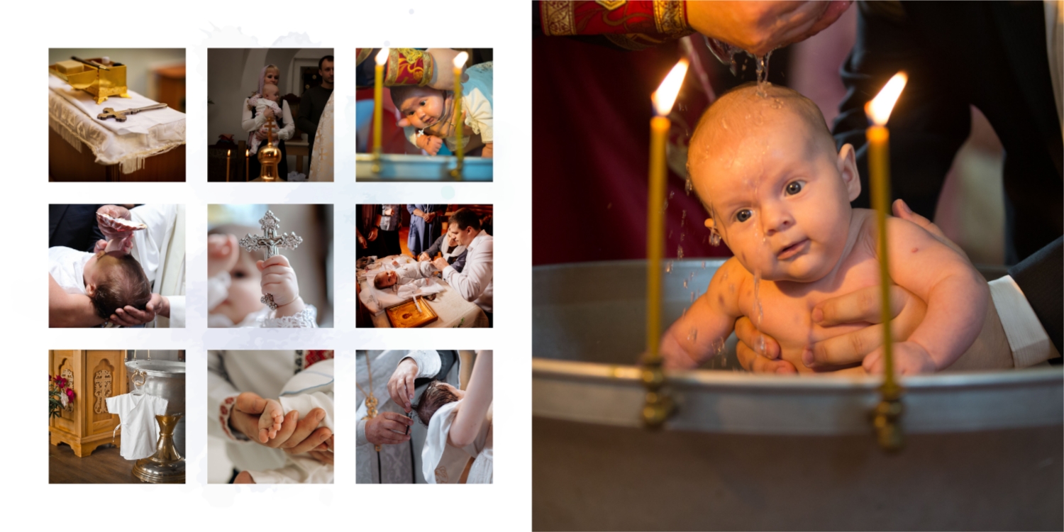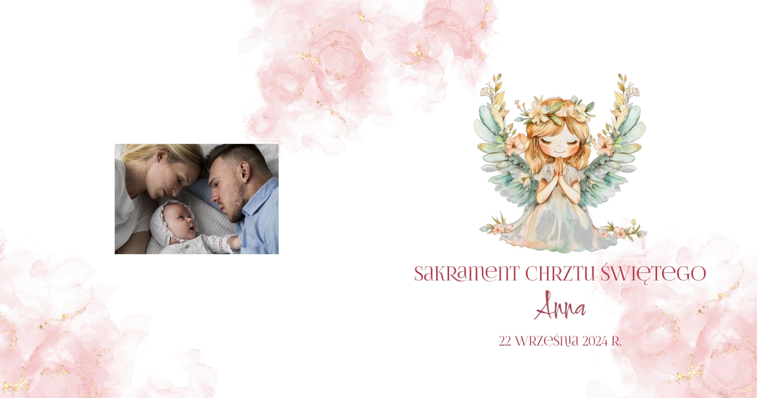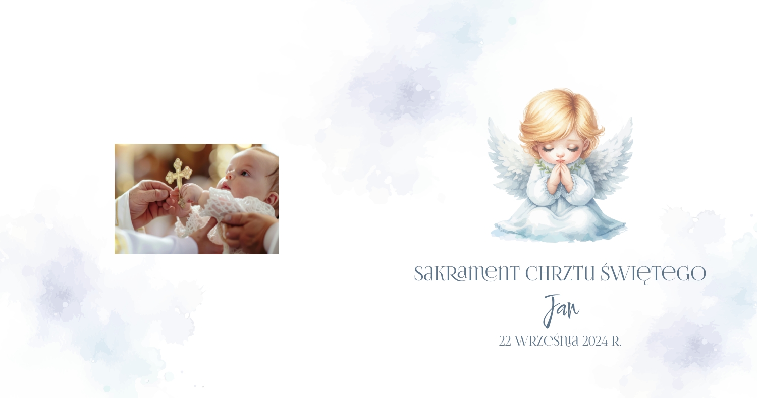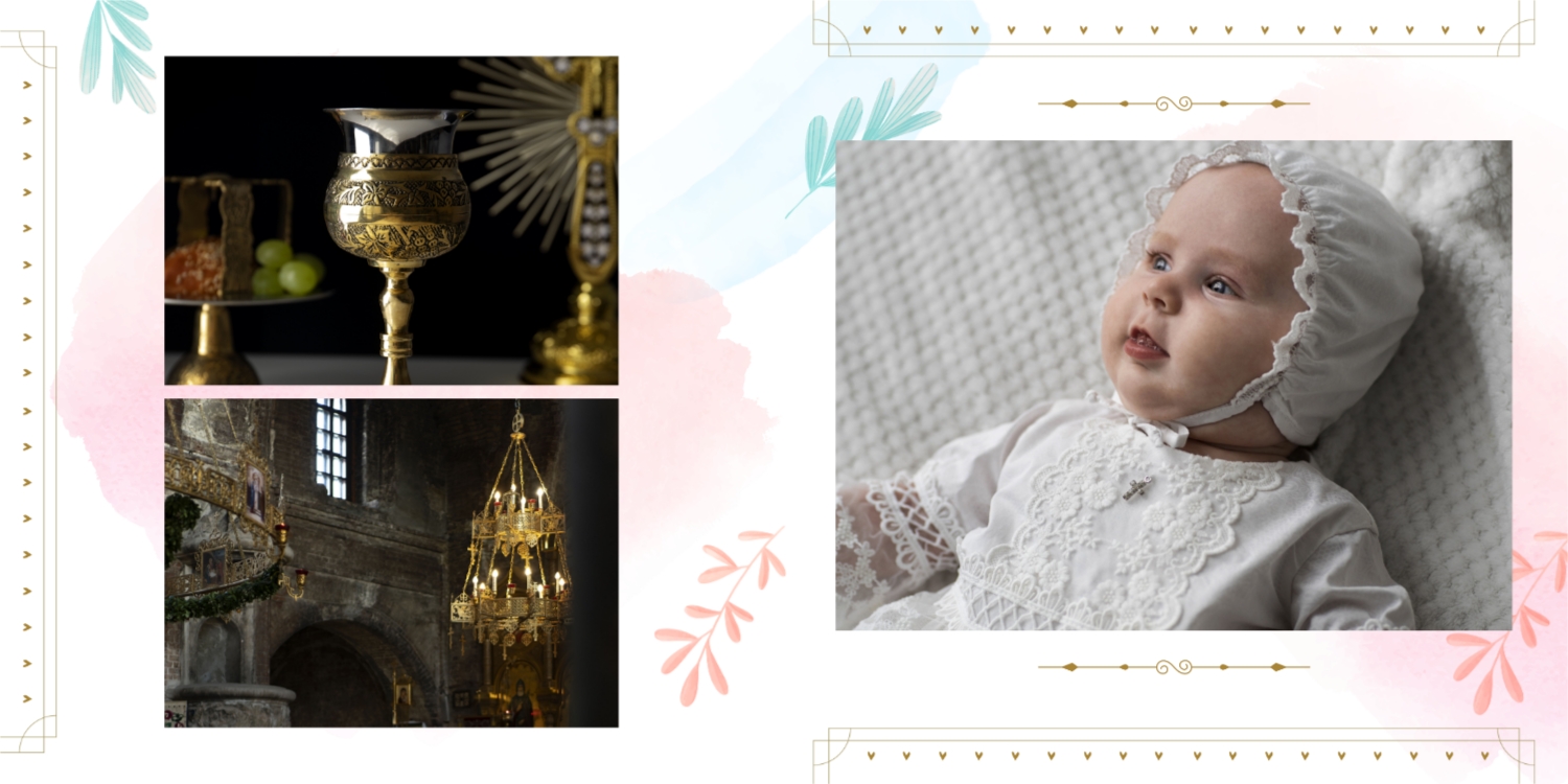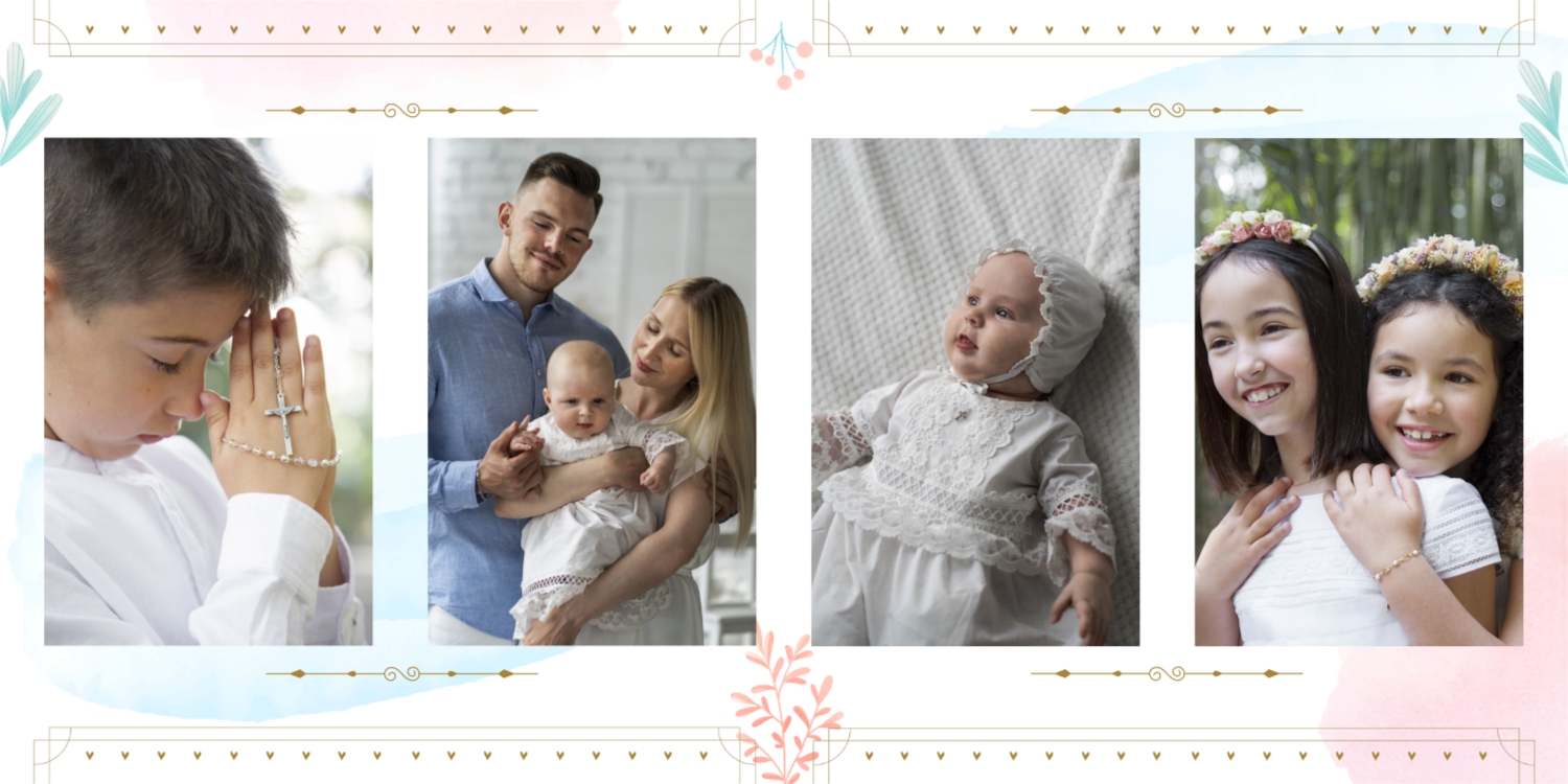 Darmowy szablon fotoksiążki ze wspomnieniami chrztu dziecka. Utwórz makietę DIY w internetowym kreatorze fotoksiążek.